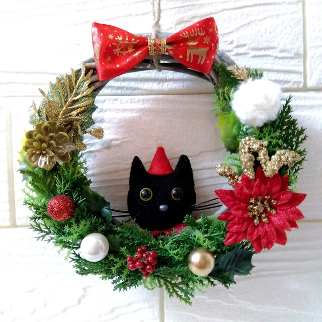 xmas クリスマスリース 黒ネコ