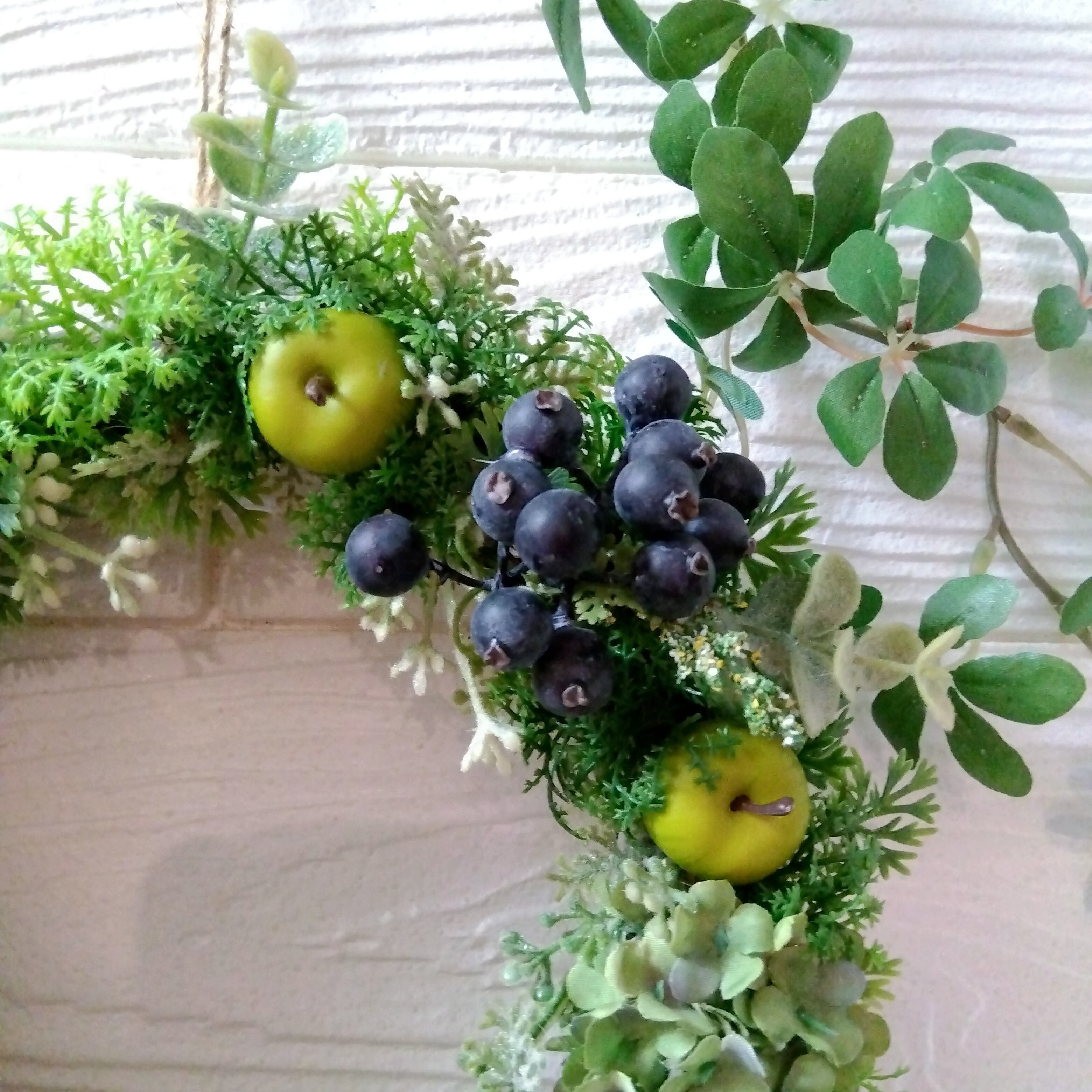 インテリア ギフト プレゼント 新築祝い 引っ越し祝い 結婚 結婚式 結婚祝い お誕生日 リース 造花 アーティシャルフラワー 誕生日 リンゴ 記念日 フラワーリース フラワーギフト アップル グリーンリース 夏 サマーリース グリーンリース 父の日