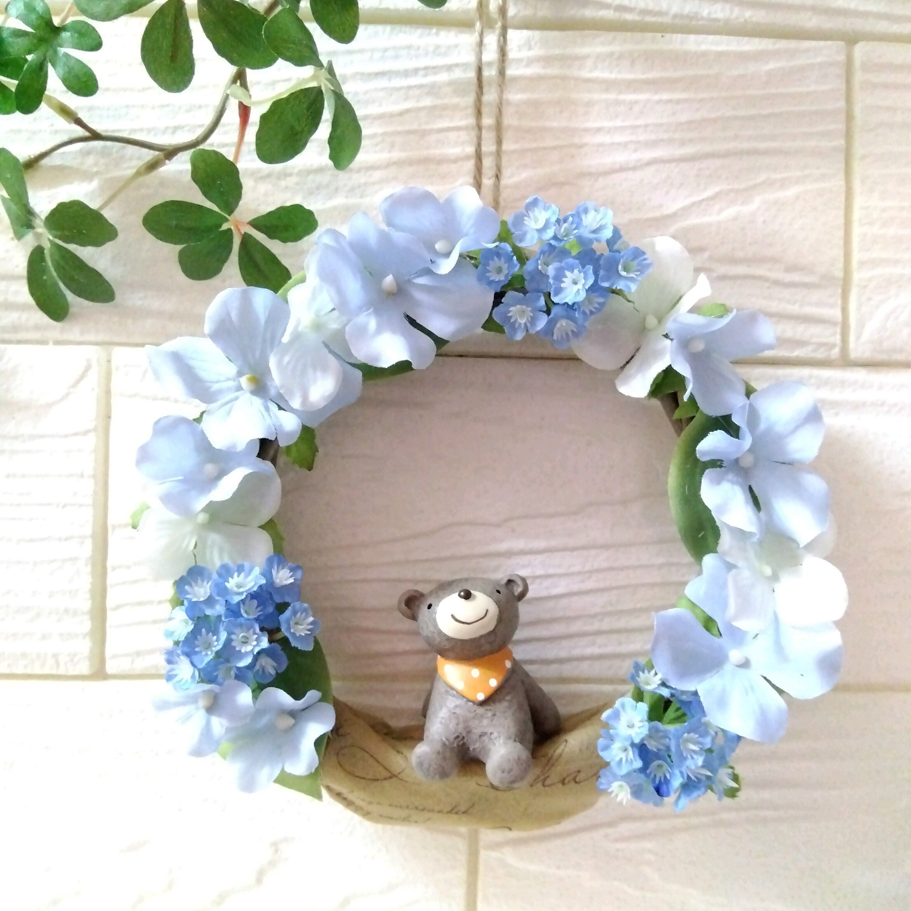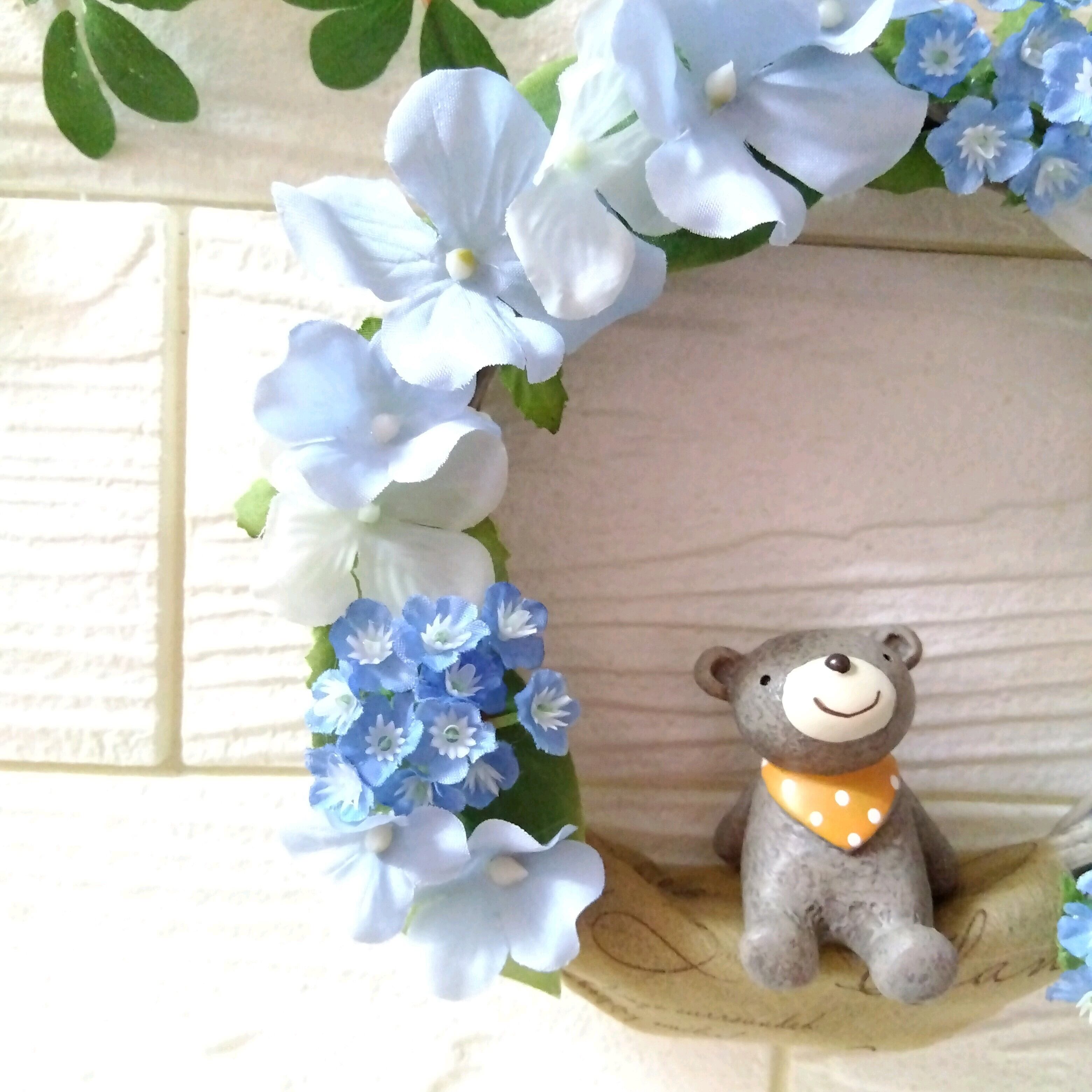 夏 夏色 リース インテリア ギフト プレゼント サマー ブルーリース 記念日 誕生日 結婚 結婚祝い 新築祝い 開店祝い 退職 ウエディング 祝い クマ くま 熊 敬老の日 父の日 紫陽花 アジサイ あじさい 祝い
