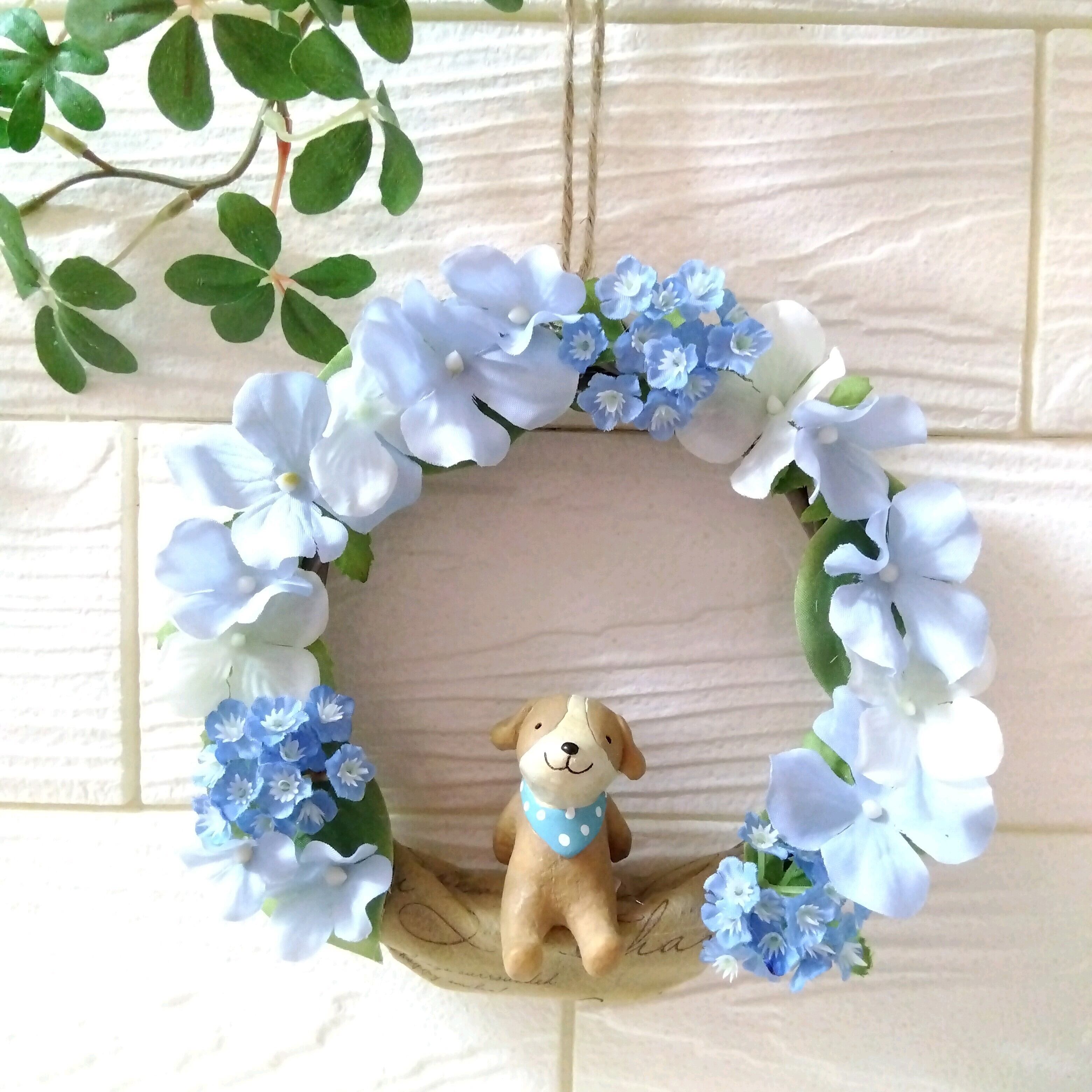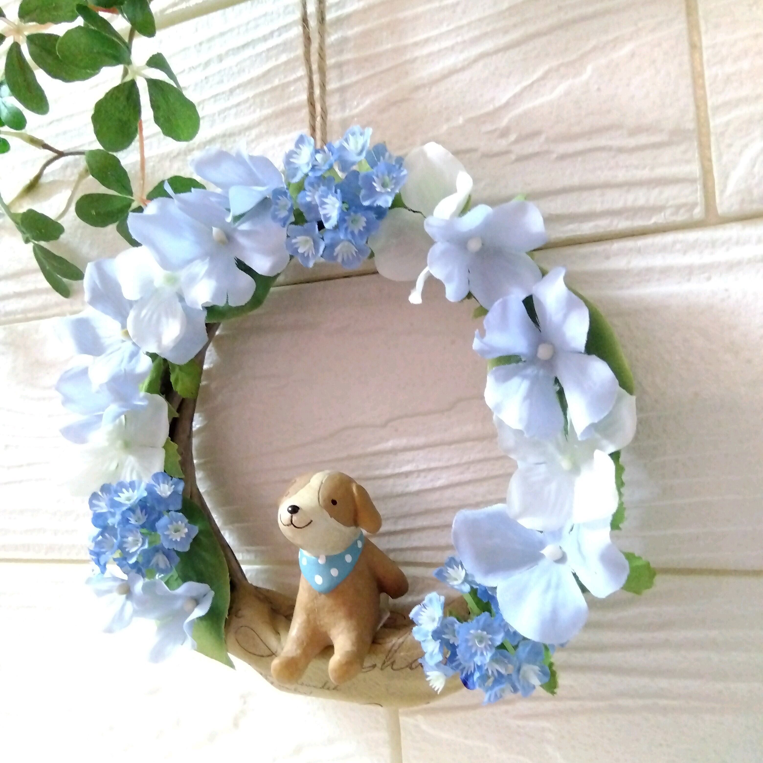 夏 夏色 リース インテリア ギフト プレゼント サマー ブルーリース 記念日 誕生日 結婚 結婚祝い 新築祝い 開店祝い 退職 ウエディング 祝い 敬老の日 父の日 紫陽花 アジサイ あじさい イヌ いぬ 犬 ドッグ