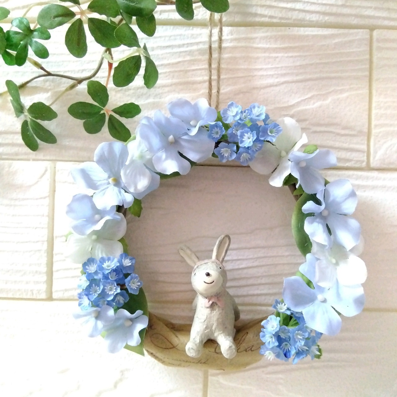 マスコット付きリース 紫陽花 ウサギ
