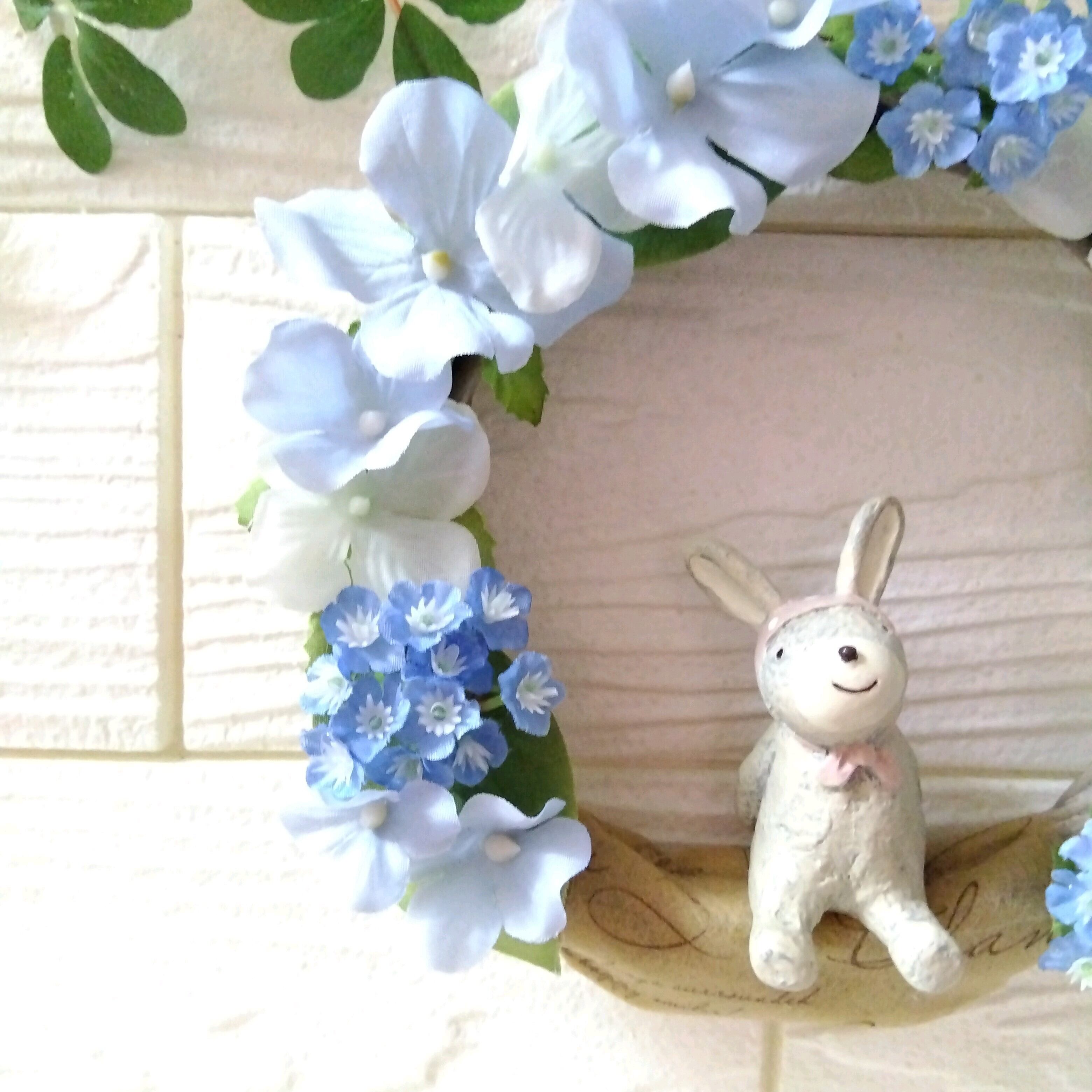 夏 夏色 リース インテリア ギフト プレゼント サマー ブルーリース 記念日 誕生日 結婚 結婚祝い 新築祝い 開店祝い 退職 ウエディング 祝い 敬老の日 父の日 紫陽花 アジサイ あじさい ウサギ うさぎ 兎 ラビット