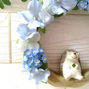 マスコット付きリース 紫陽花 ハリネズミ
