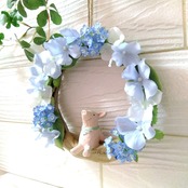 マスコット付きリース 紫陽花 ブタ