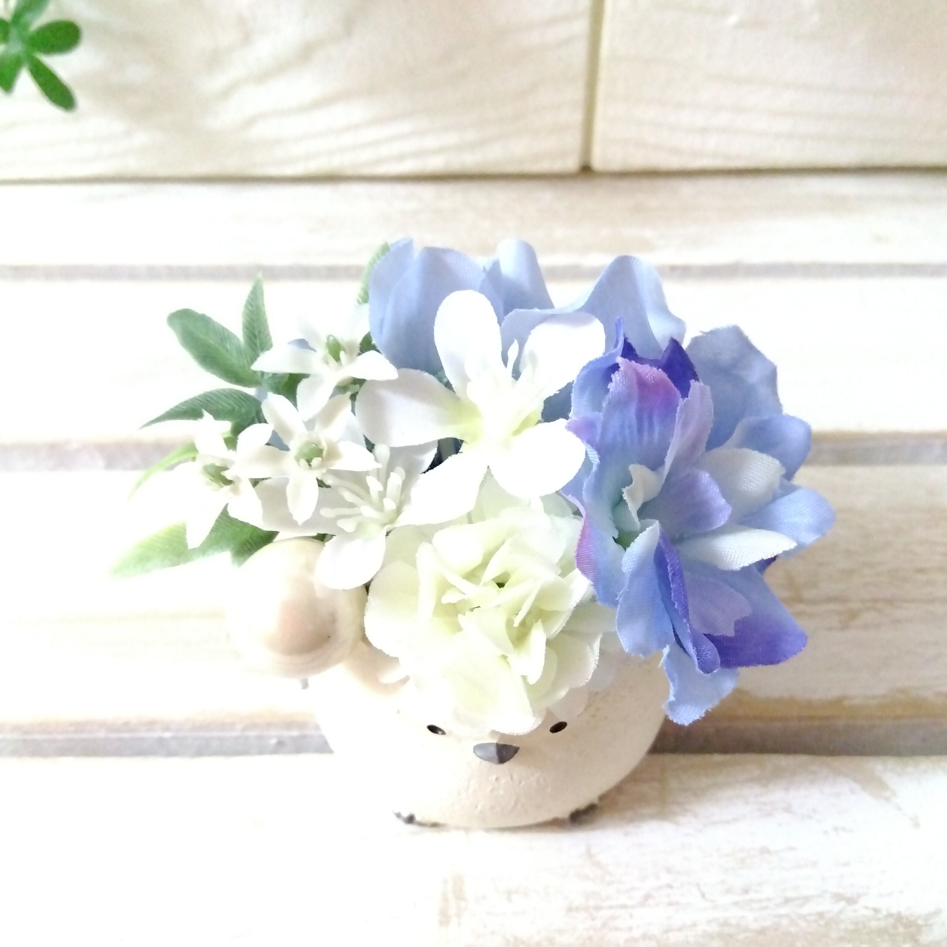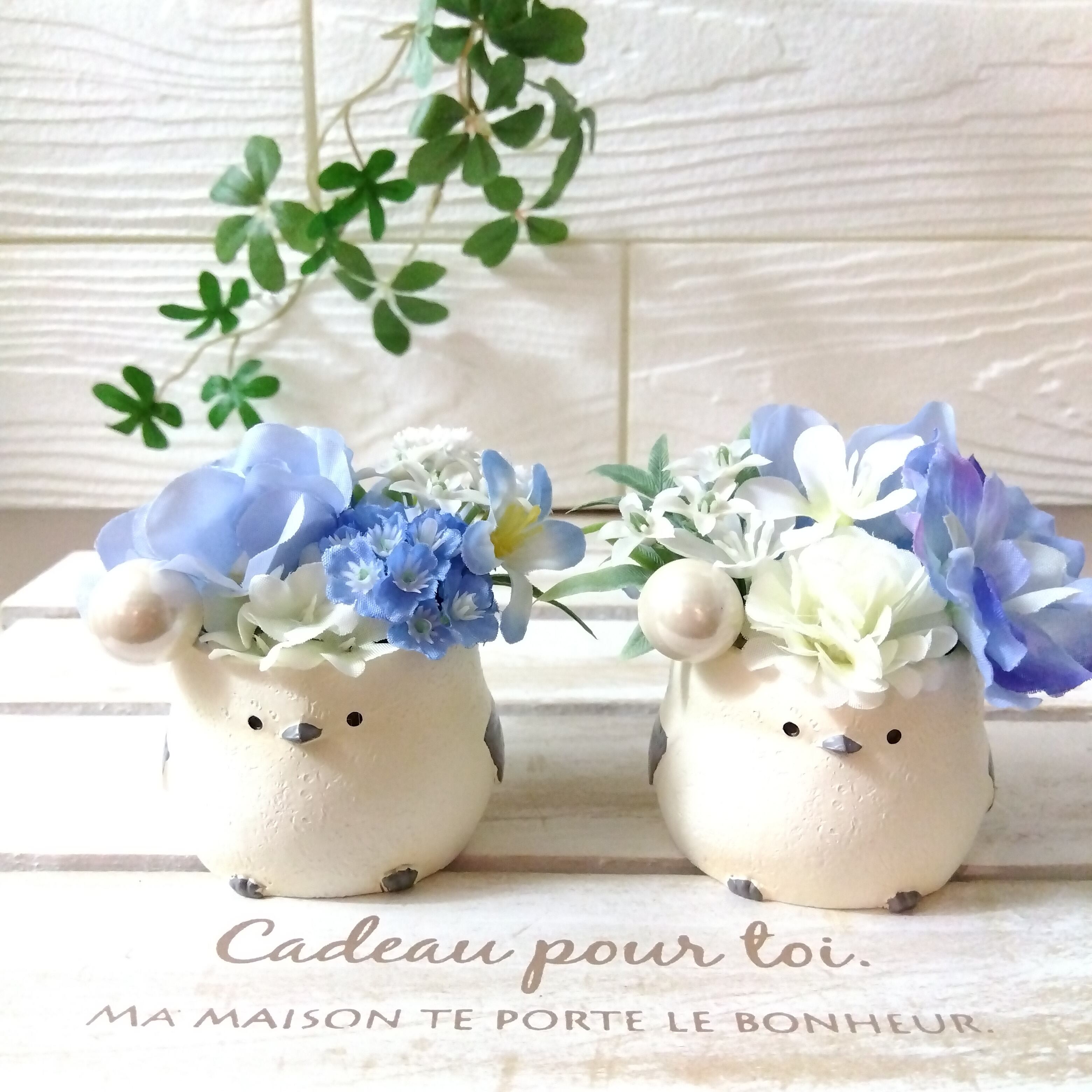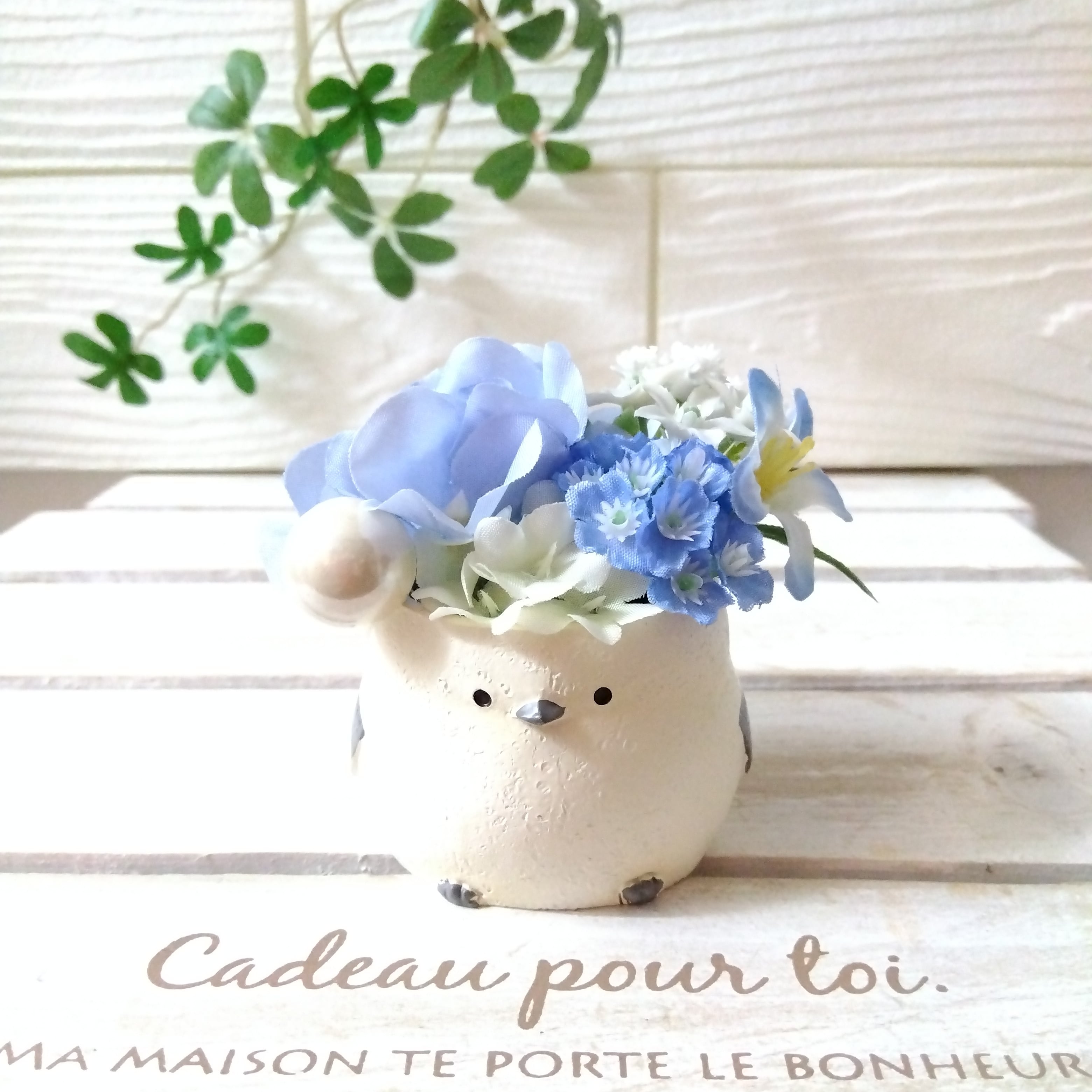 フラワーアレンジ インテリア シマエナガ 紫陽花 デルフィニューム ブルーホワイト