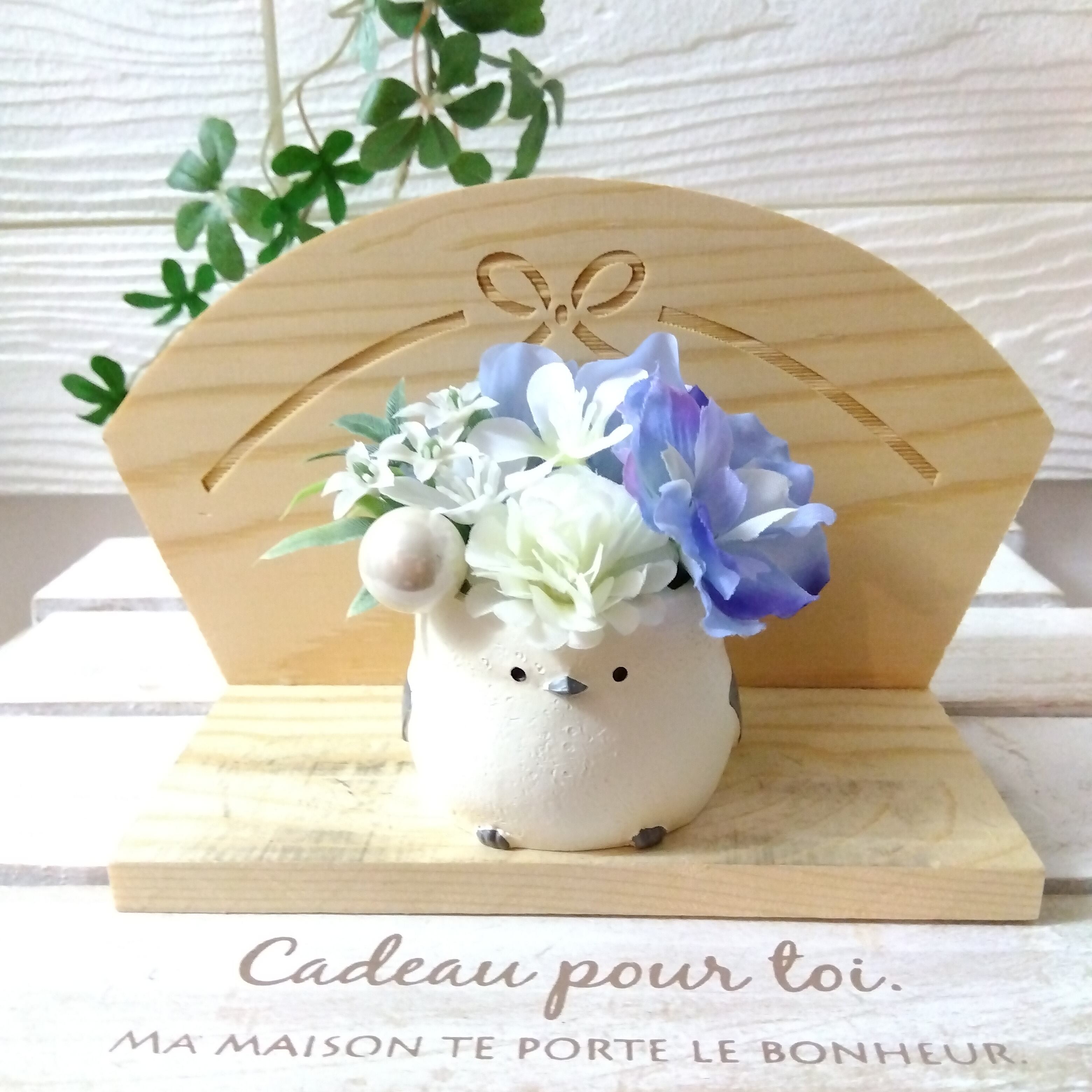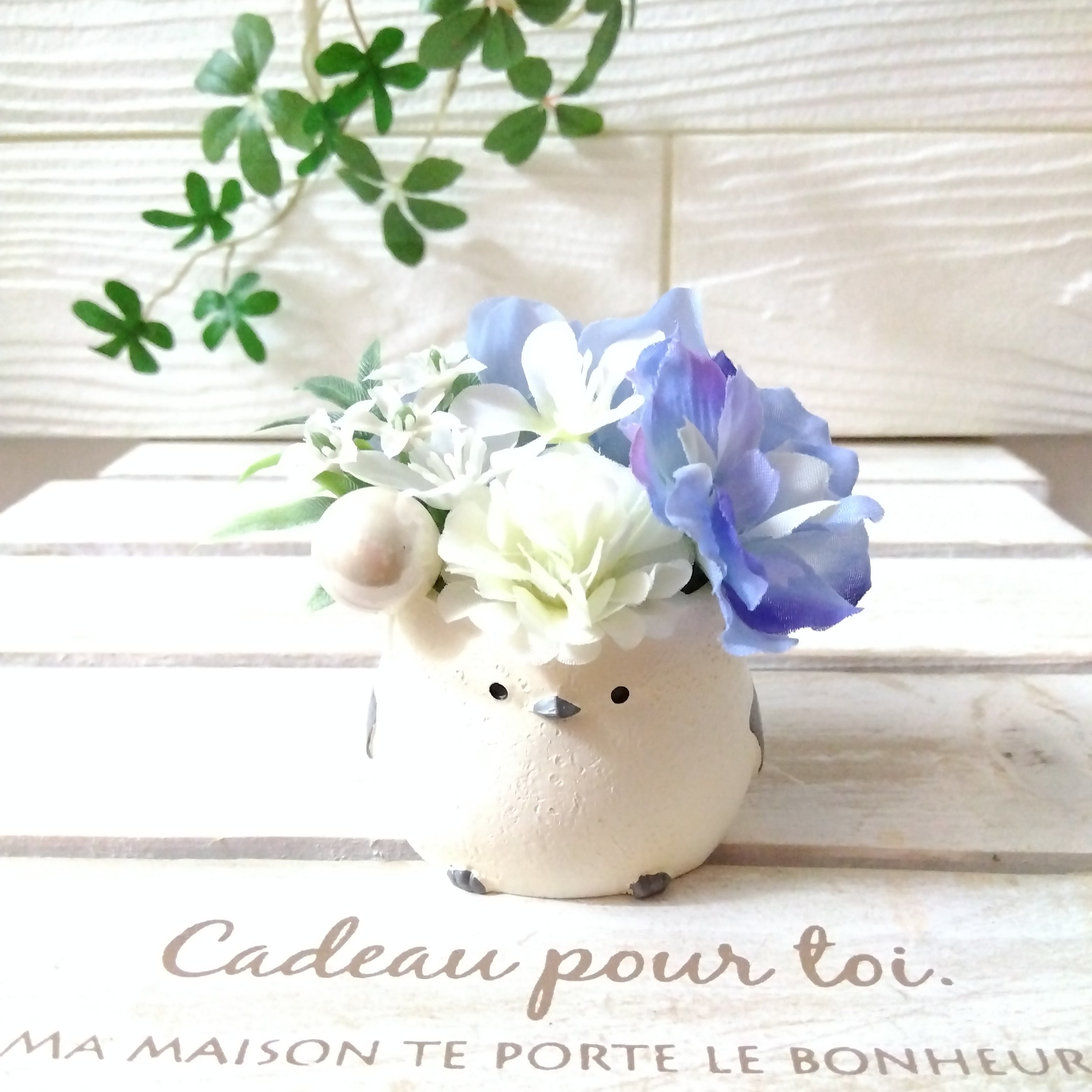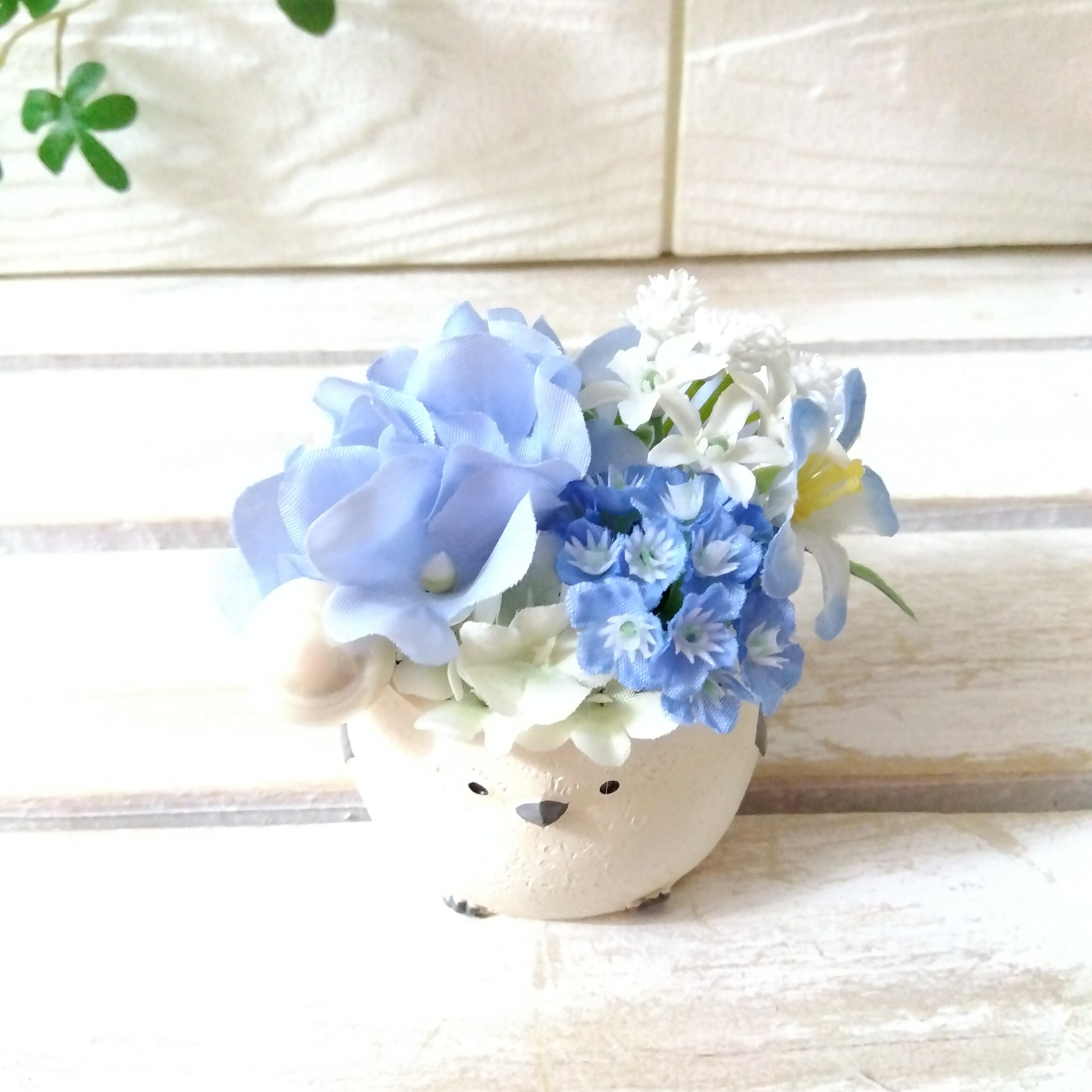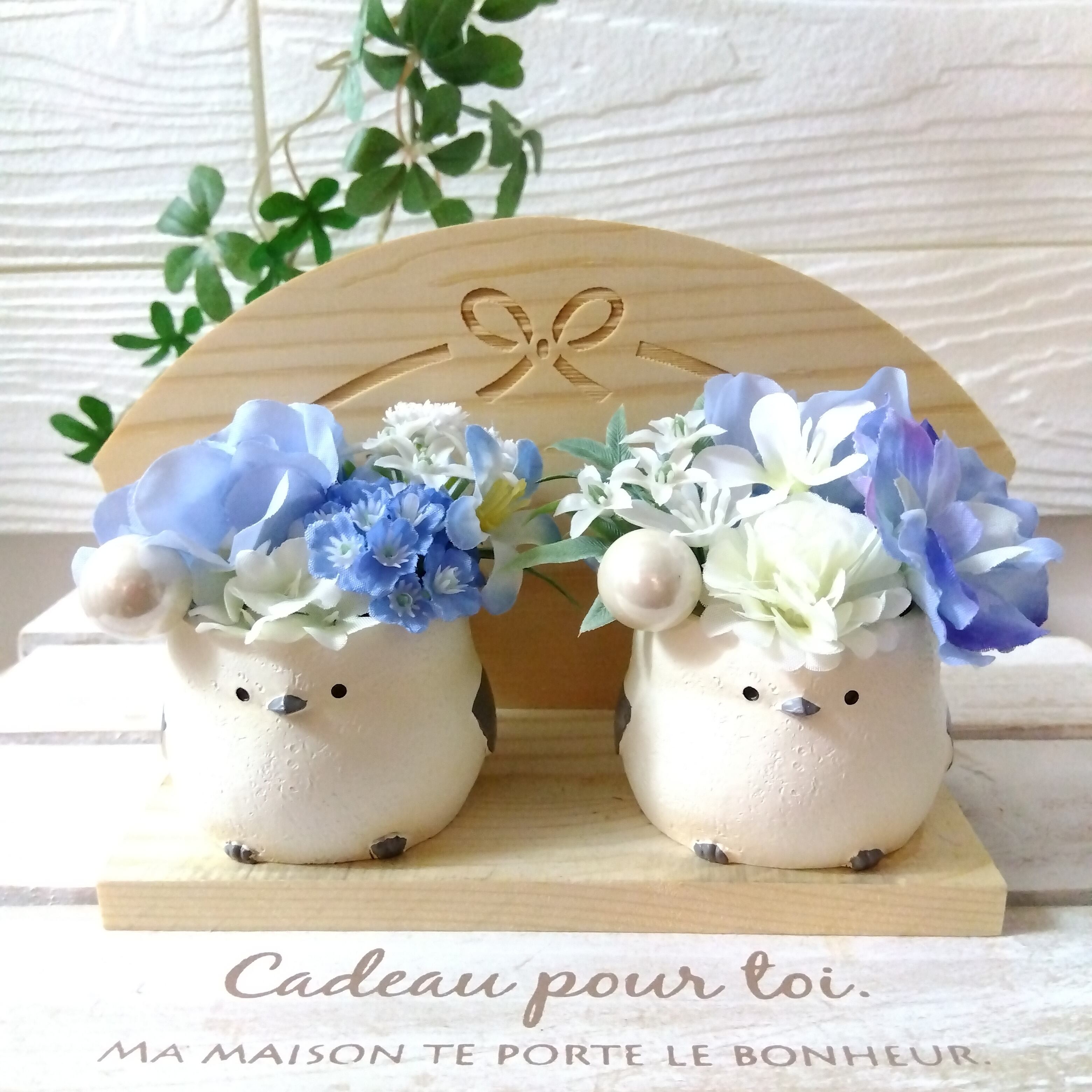 フラワーアレンジ インテリア シマエナガ 紫陽花 デルフィニューム ブルーホワイト