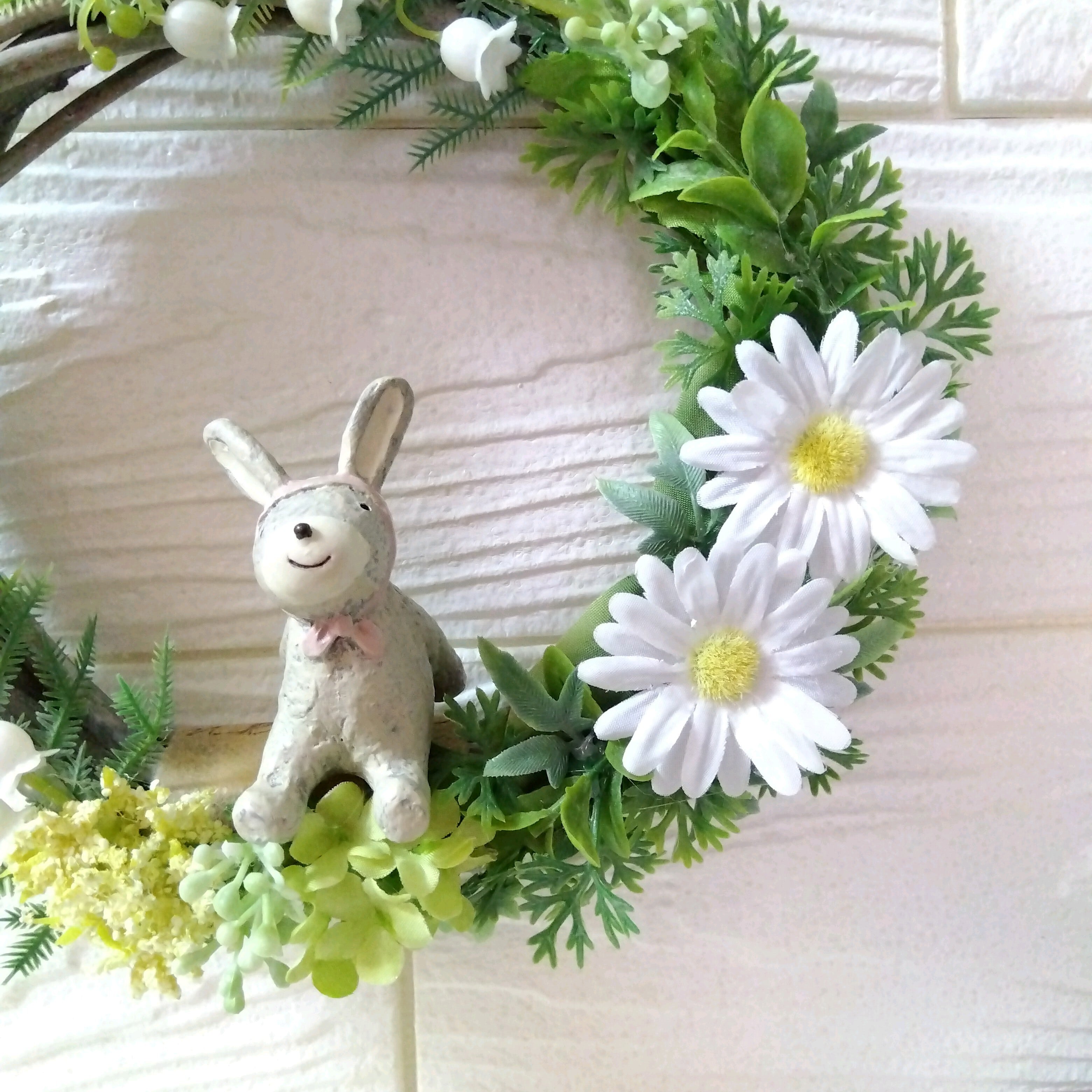 夏 夏色 リース インテリア ギフト プレゼント サマー グリーンリース 記念日 誕生日 結婚 結婚祝い 新築祝い 開店祝い 退職 ウエディング 祝い 敬老の日 父の日 スズラン すずらん デイジー マーガレット スノーボール 祝い 母の日 ウサギ うさぎ 兎 ラビット
