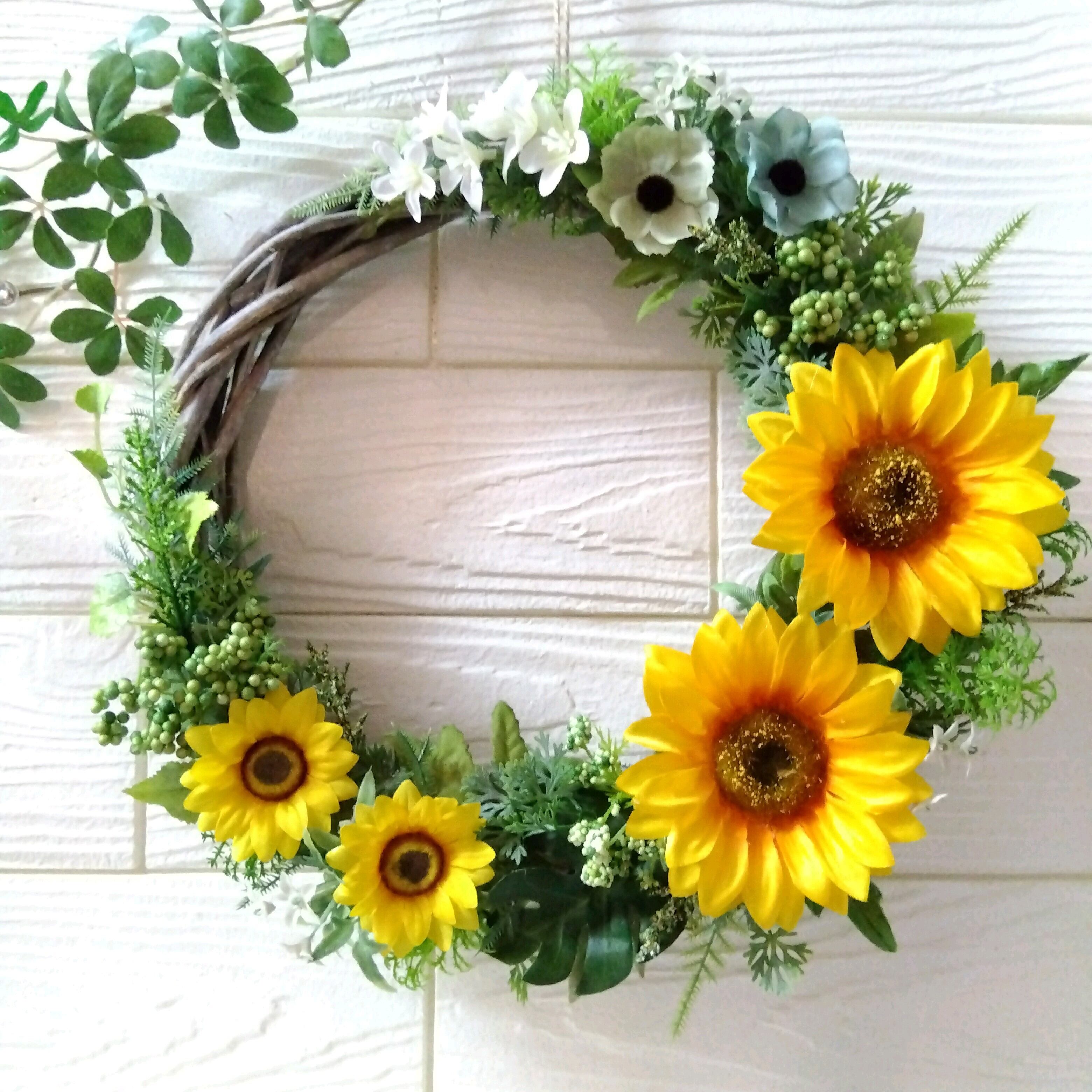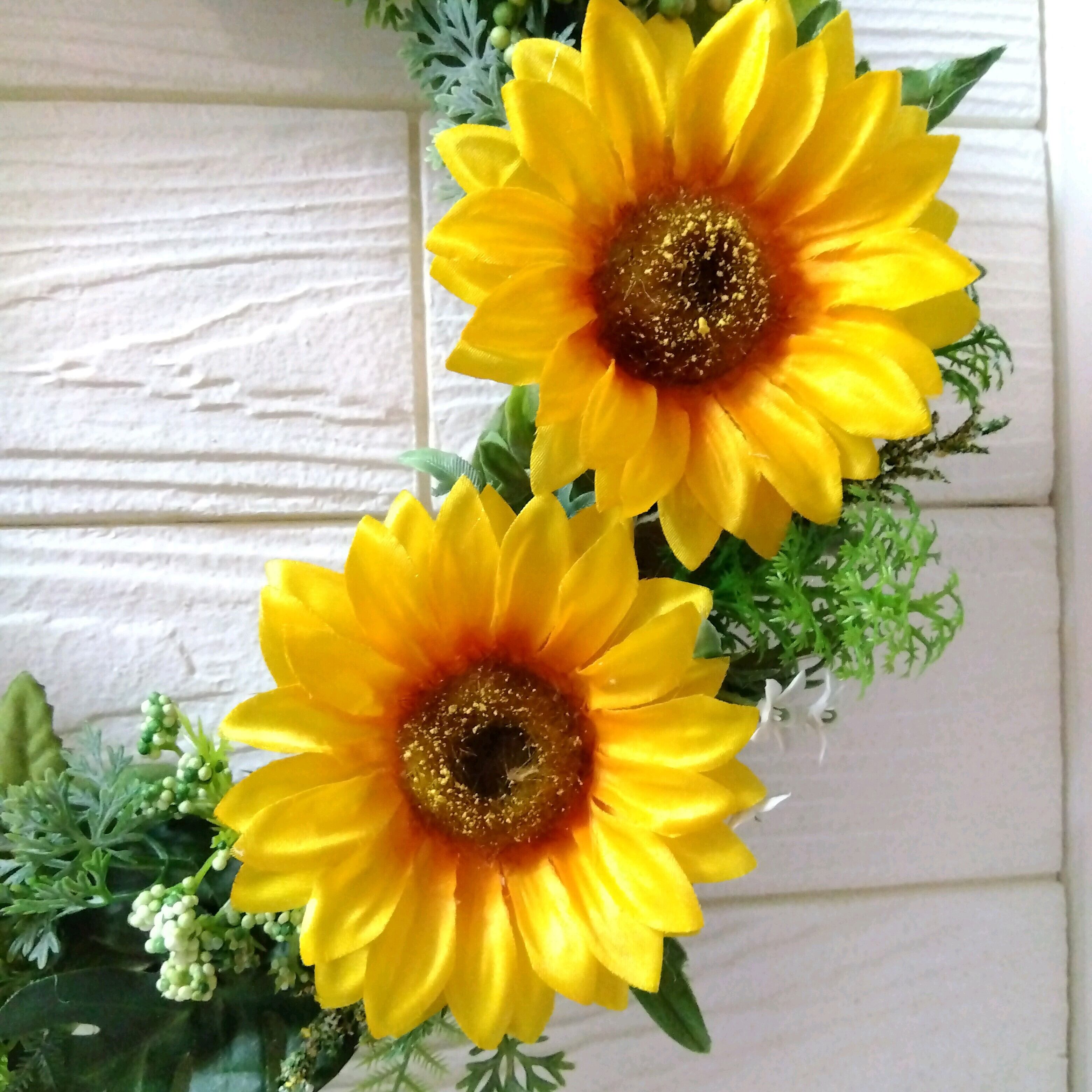 造花(アーティフィシャルフラワー)でできた向日葵の大きめリースです!