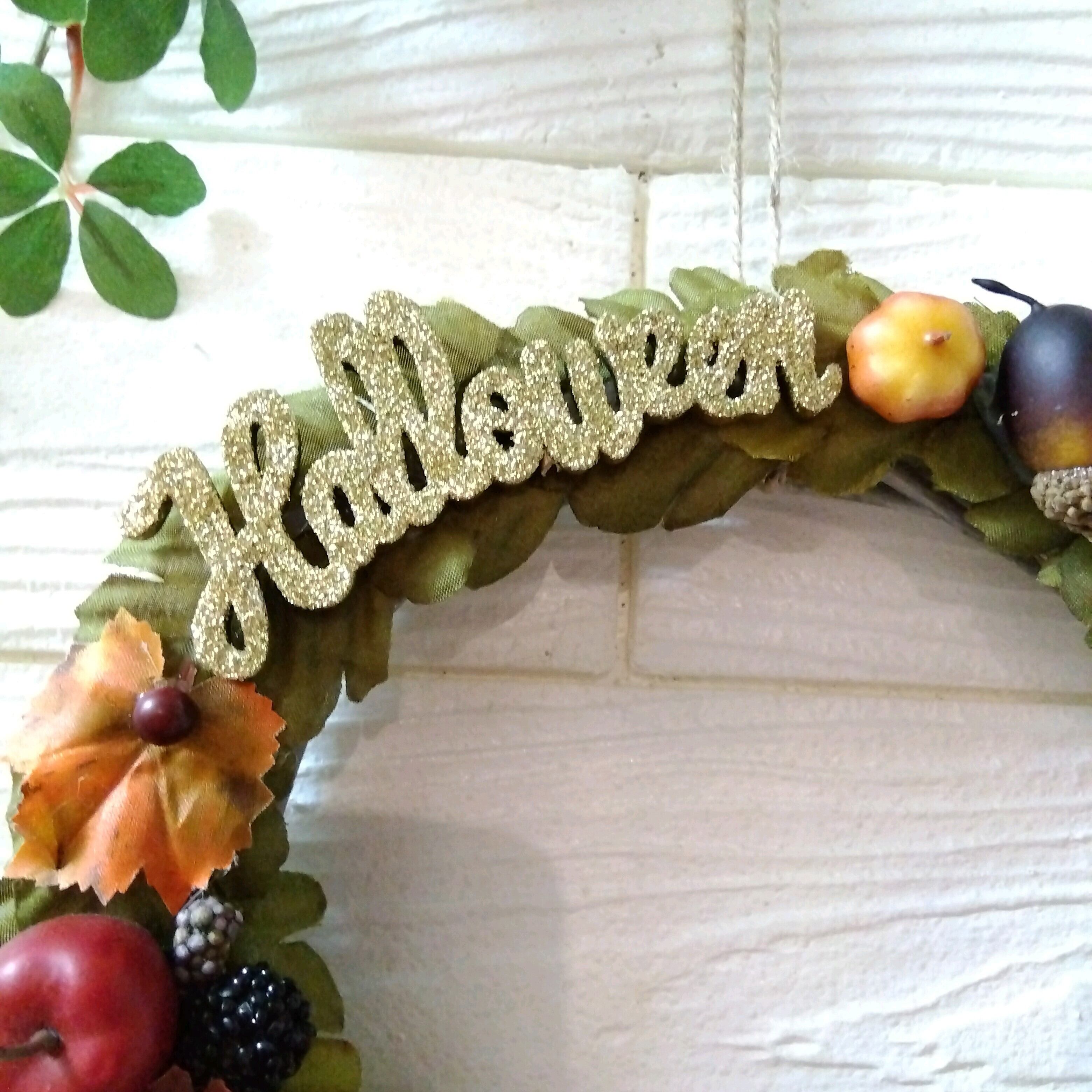 かわいいかぼちゃ魔女、どんぐり、ラズベリー、リンゴやお花がギュッと詰ったハロウィンインテリアです(*^^*)