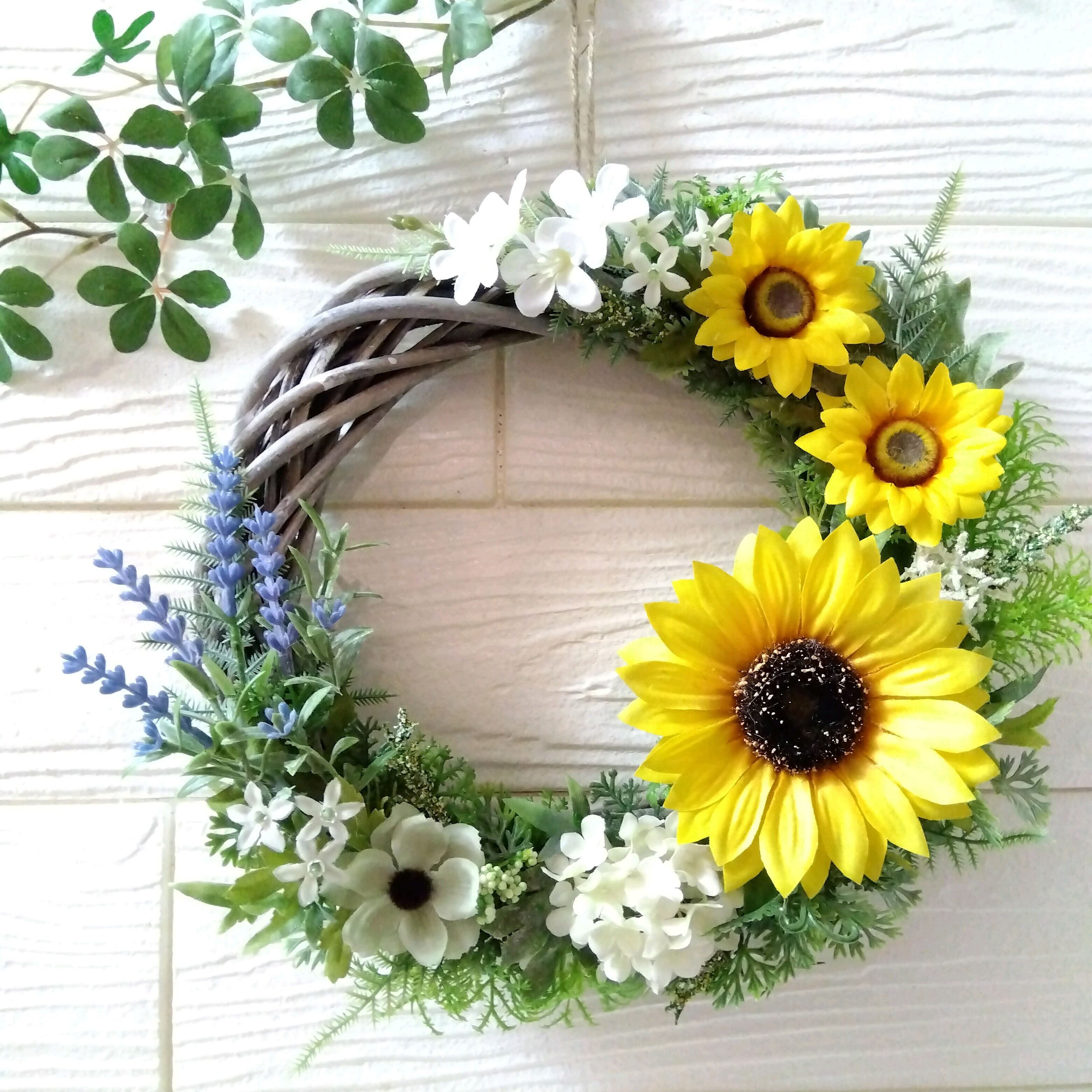ひまわり ひまわりリース 父の日 プレゼント 誕生日 新築祝い 開店祝い 結婚式 ウエディング リース ギフト グリーン アーティシャルフラワー 出産祝い 結婚祝い 還暦 退職 インテリア 敬老の日 サマー サマーリース 夏 夏リース 向日葵 ヒマワリ ラベンダー スノーボール