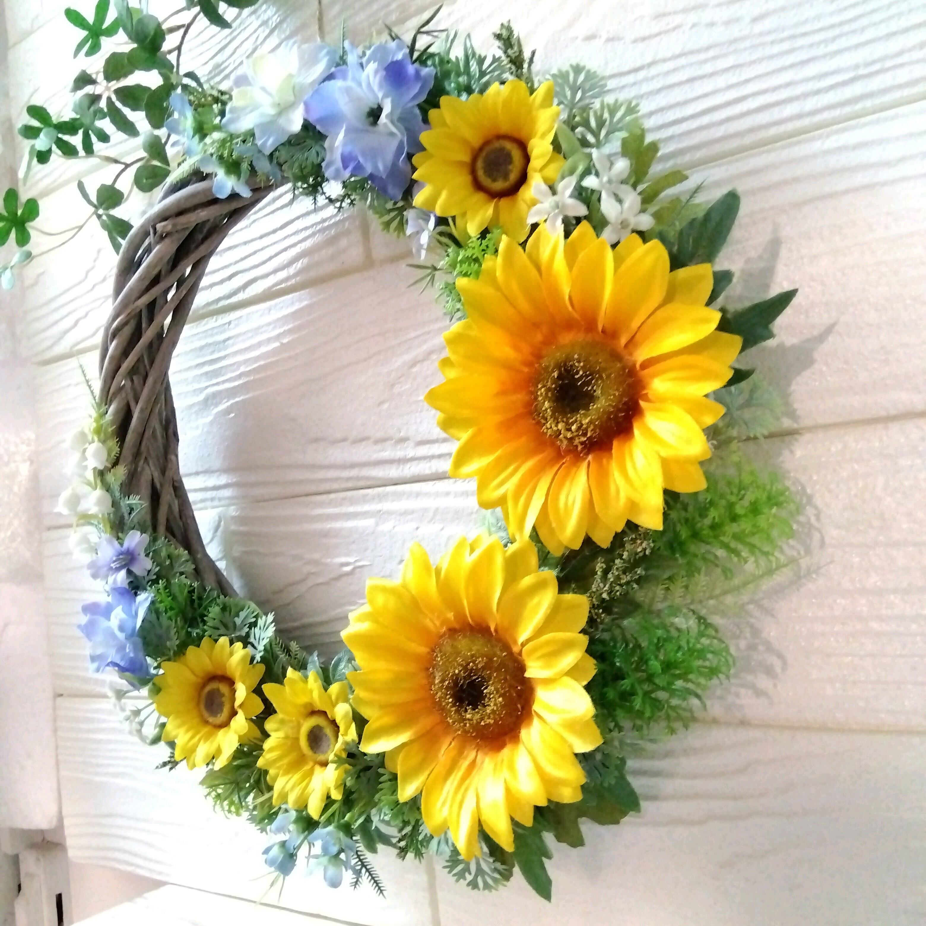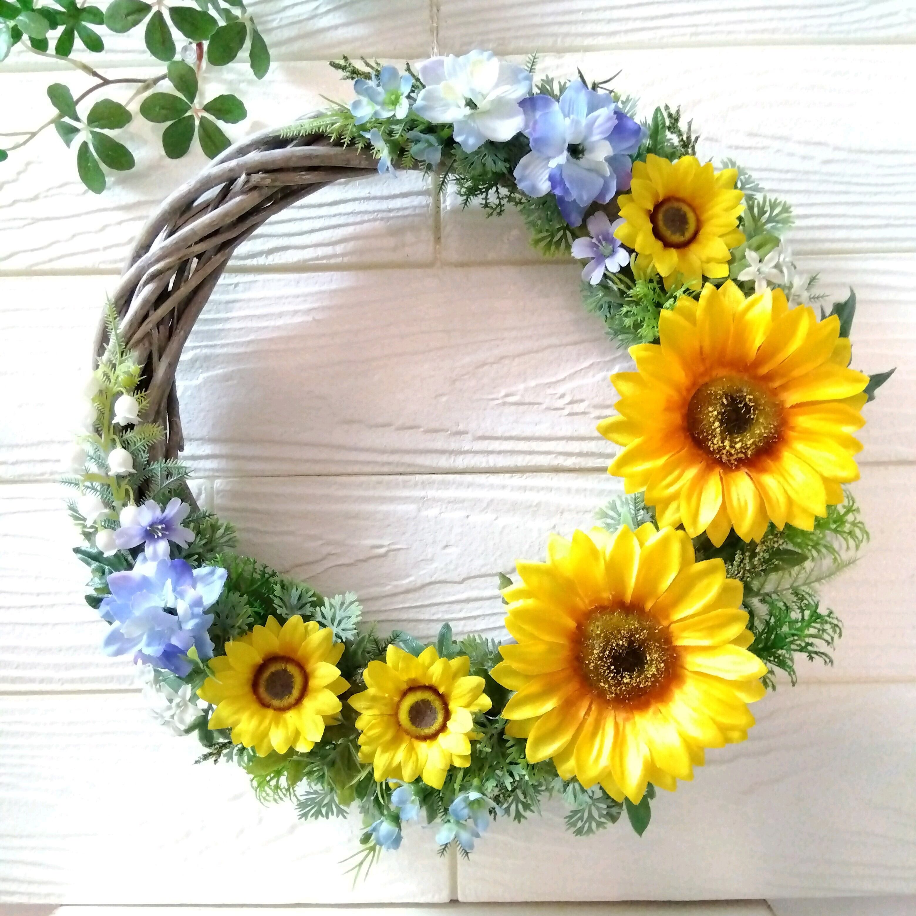 インテリア リース フラワー ひまわり 向日葵 ヒマワリ スズラン デルフィニューム ウエディング プレゼント ドアリース 引っ越し祝い 開店祝い 誕生日 インテリア 敬老の日 新築祝い 贈呈品 結婚式 結婚祝い 開店祝い 出産祝い お祝い 祝い 送別品 退職 グリーン 夏 花束 サマーリース