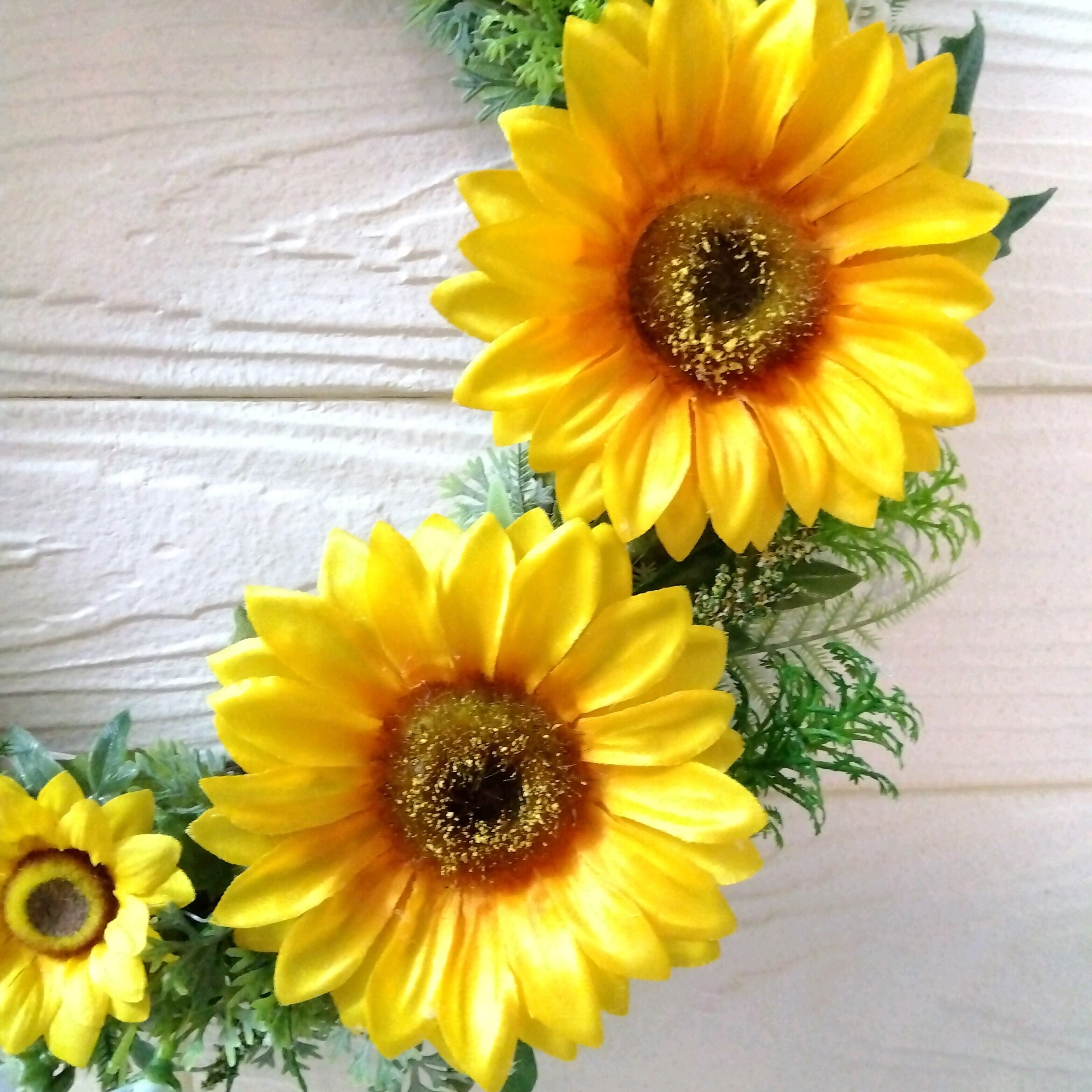 造花(アーティフィシャルフラワー)でできた向日葵の大きめリースです!
