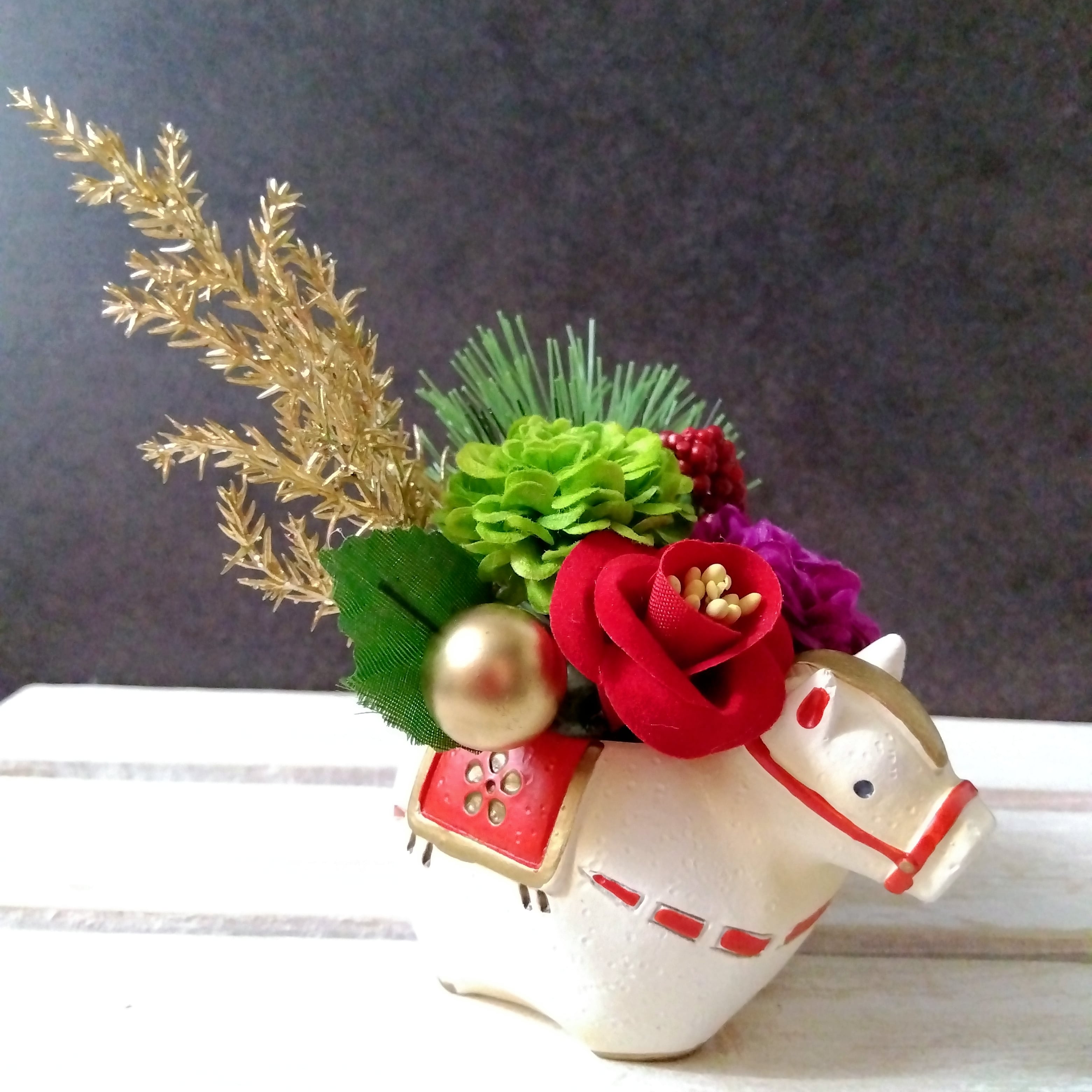 干支 馬 午年 午 ウマ うま 白馬 2026年 新年 新春 お正月 お正月飾り 正月 正月飾り フラワーアレンジ お正月アレンジ 正月インテリア インテリア 置物 迎春 花 飾り 誕生日 出産祝い 新築祝い