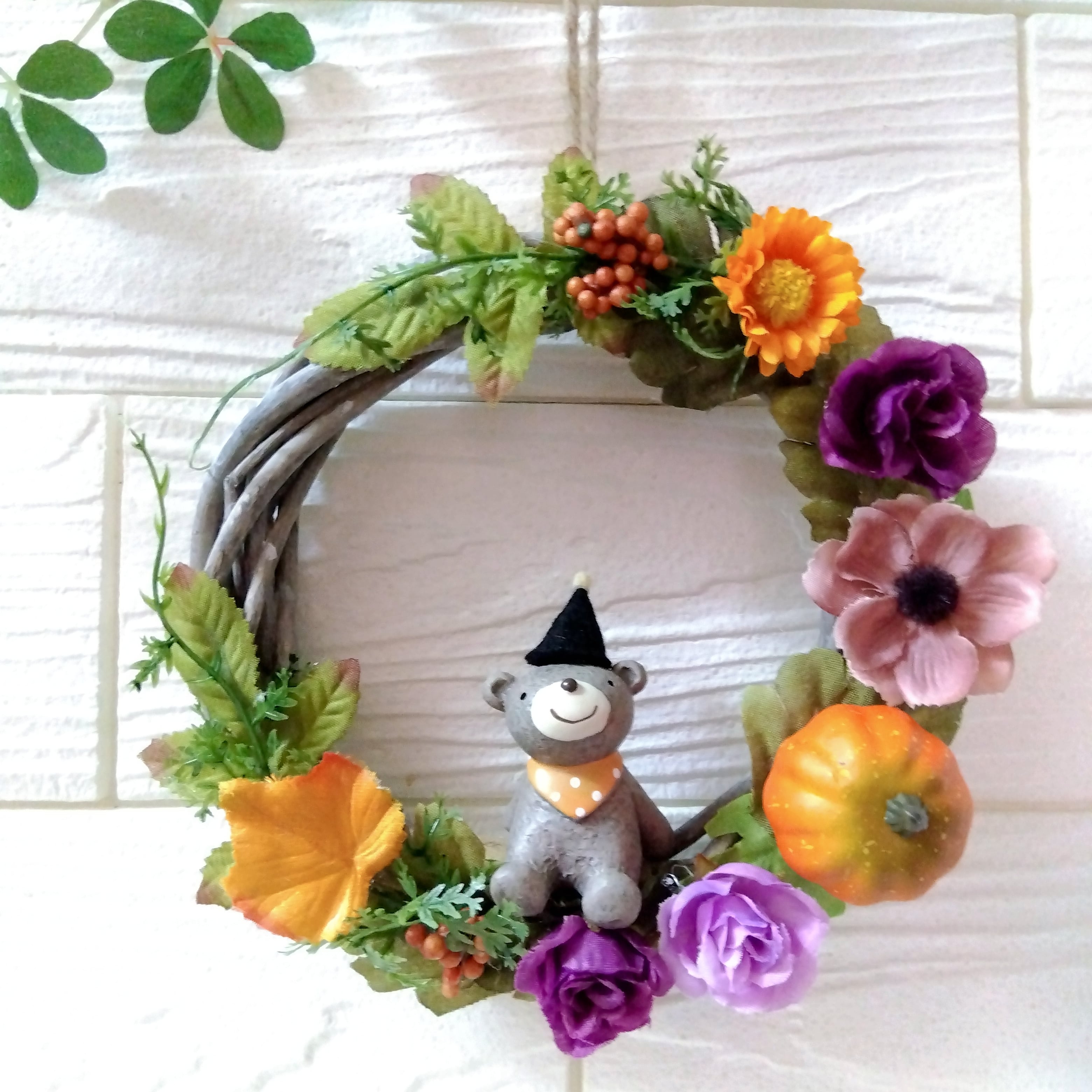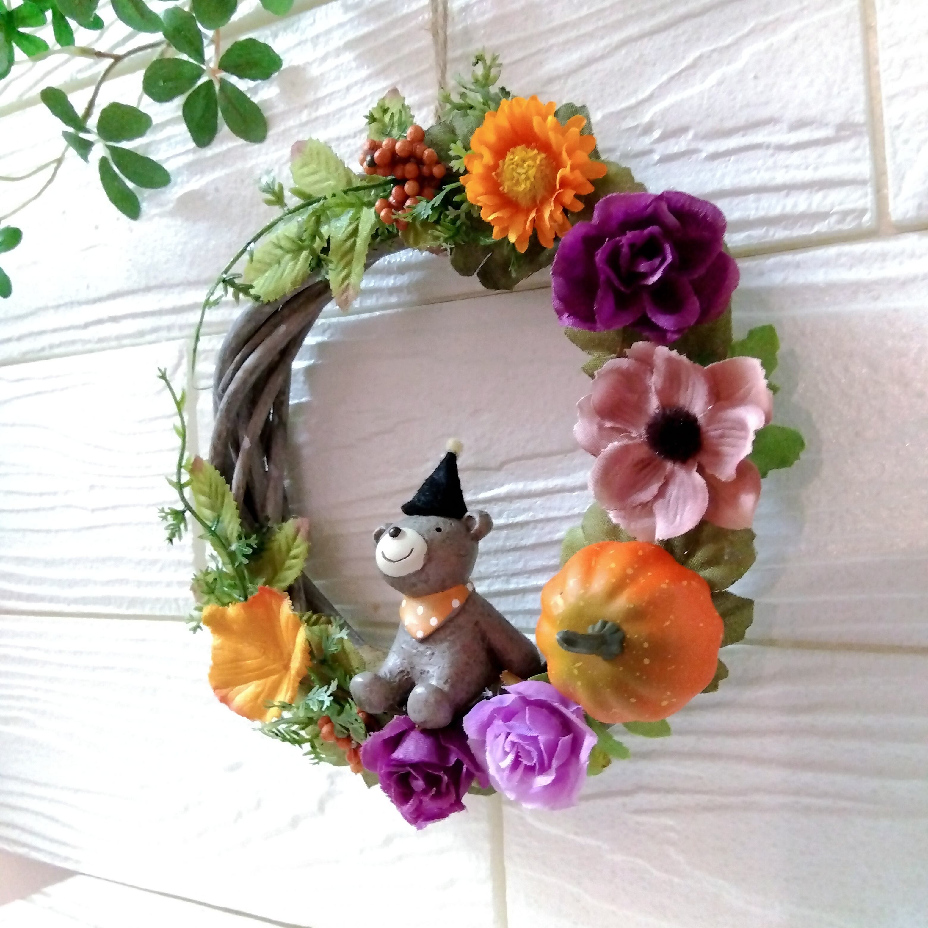 ハロウィンインテリア オータムリース 秋リース クマ くま 熊 ベア