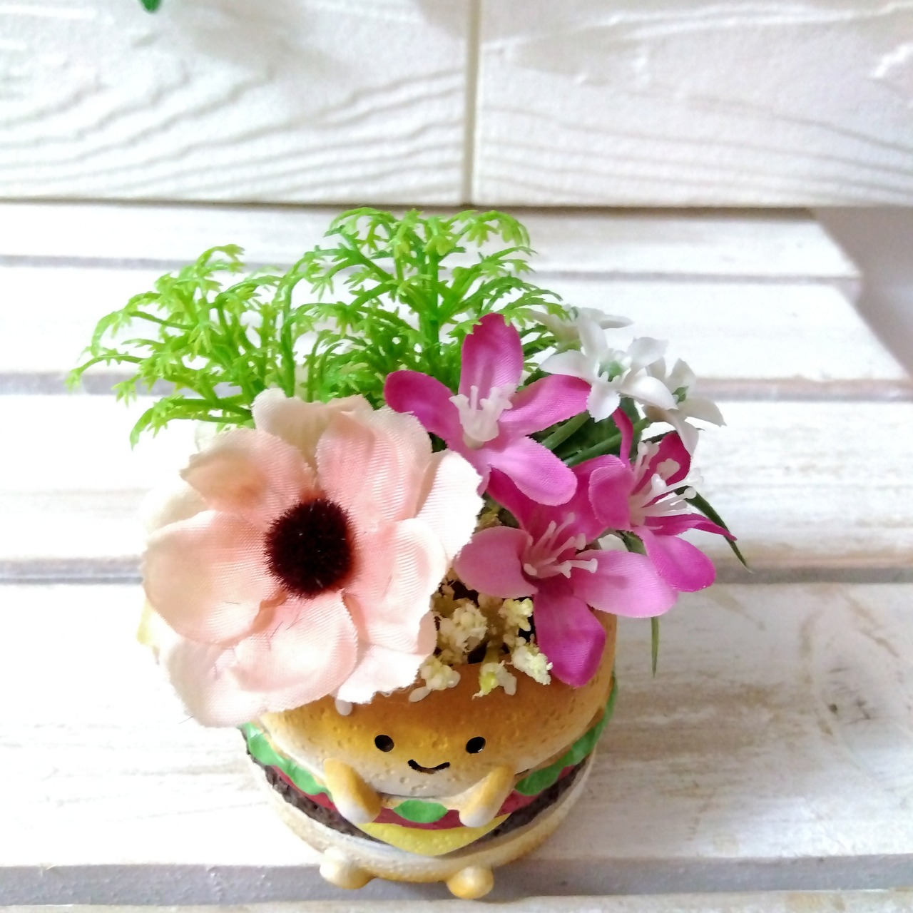 母の日 父の日 プレゼント ギフト 送別品 贈呈品 結婚式 フラワーアレンジ スマイル 退職 敬老の日 インテリア アーティフィシャルフラワー 誕生日 新築祝い 開店祝い 癒し 結婚祝い 送別品 春色 アニマル 春 置物 ハンバーガー カフェ