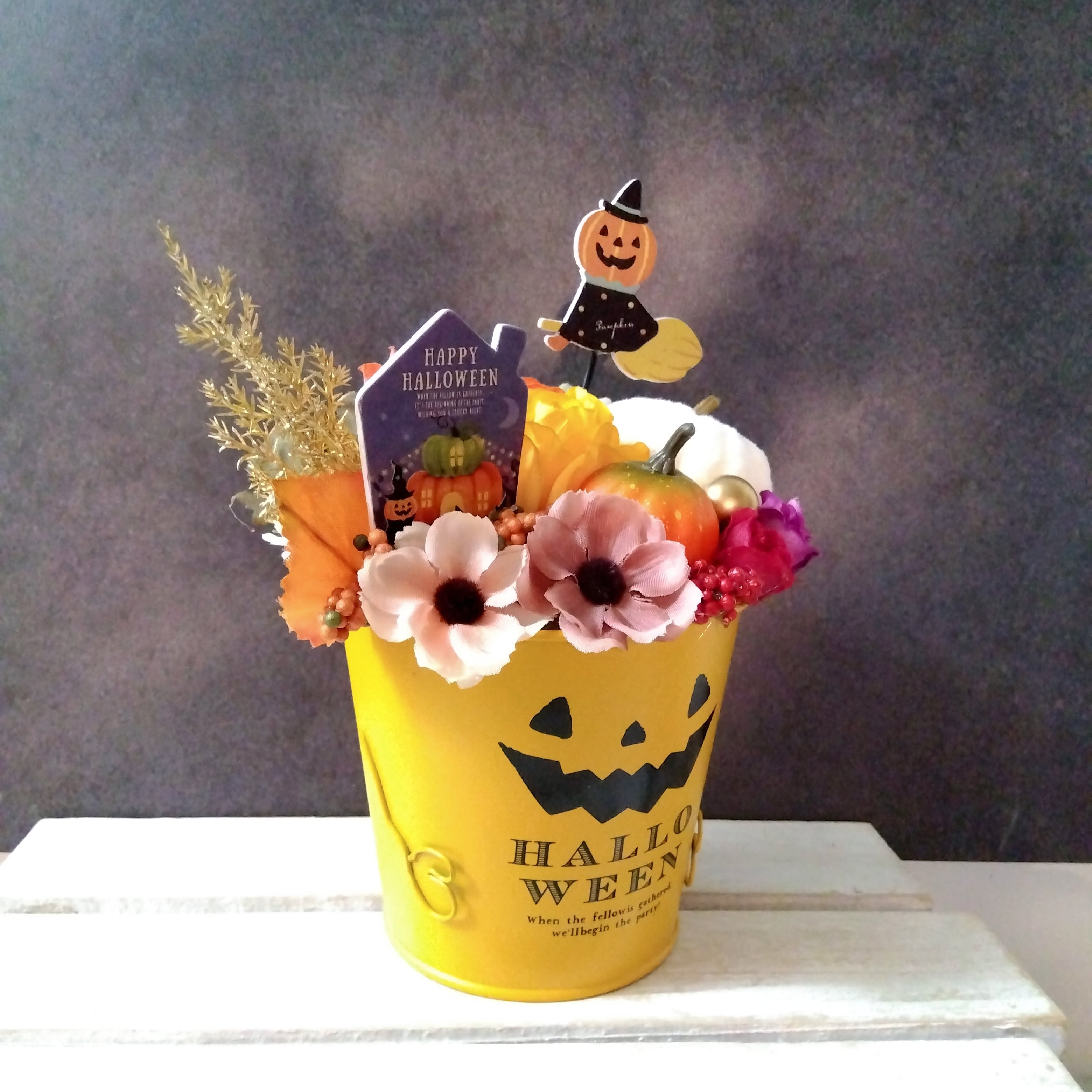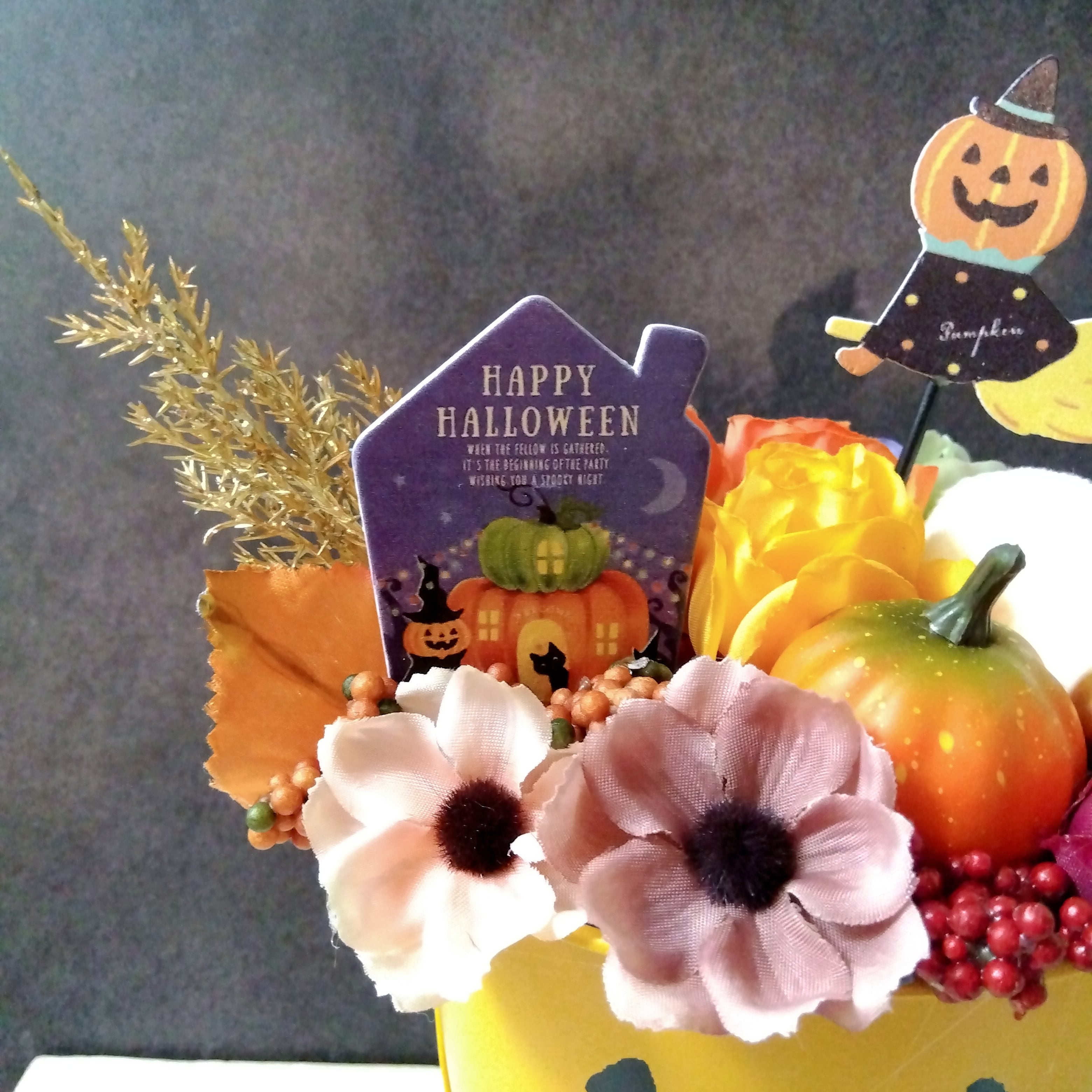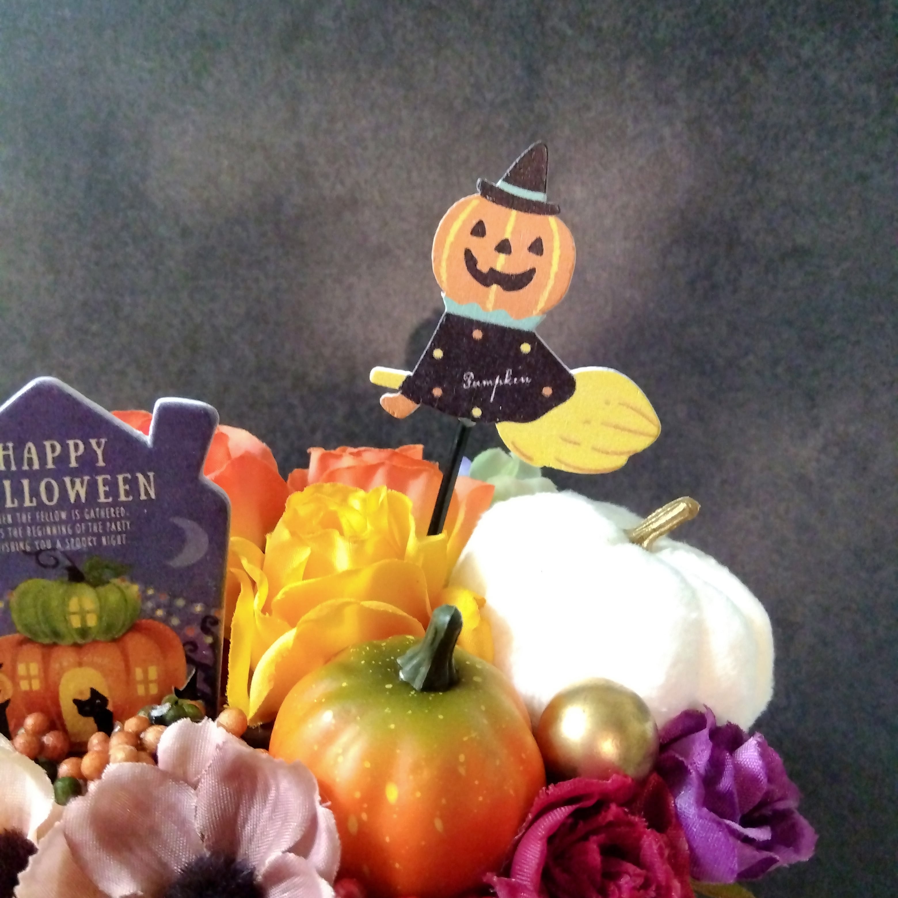 造花(アーティフィシャルフラワー)でできたハロウィンのフラワーアレンジです!
