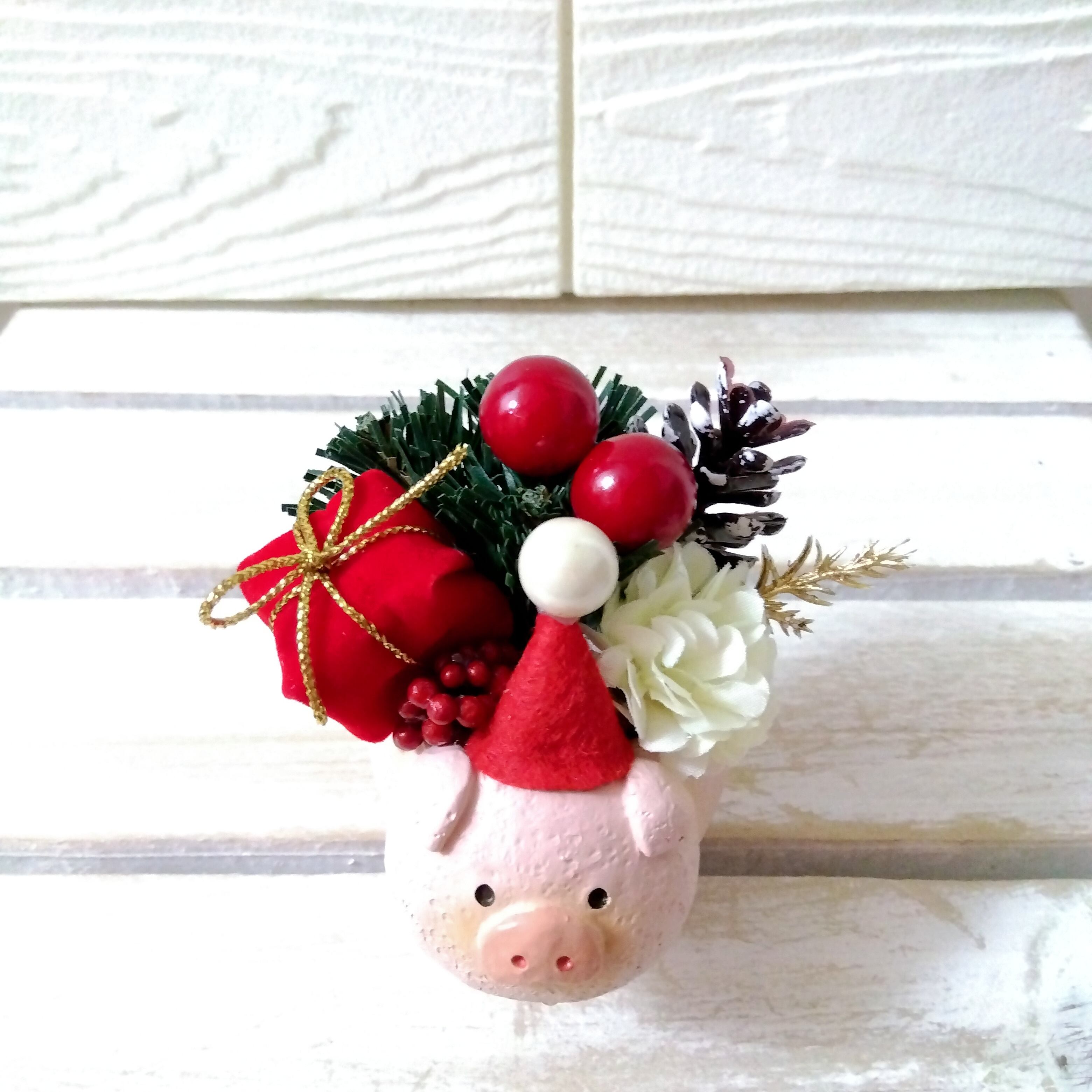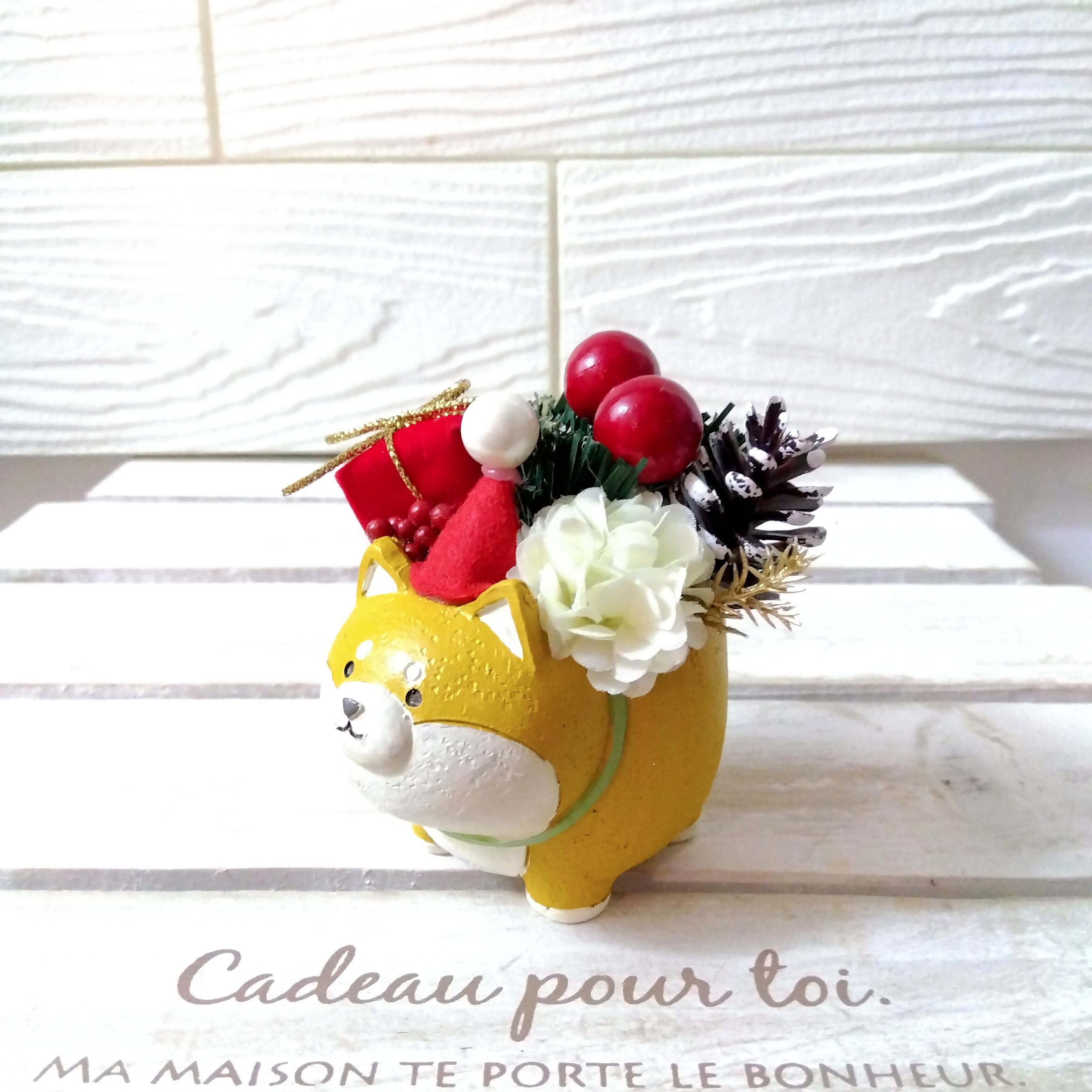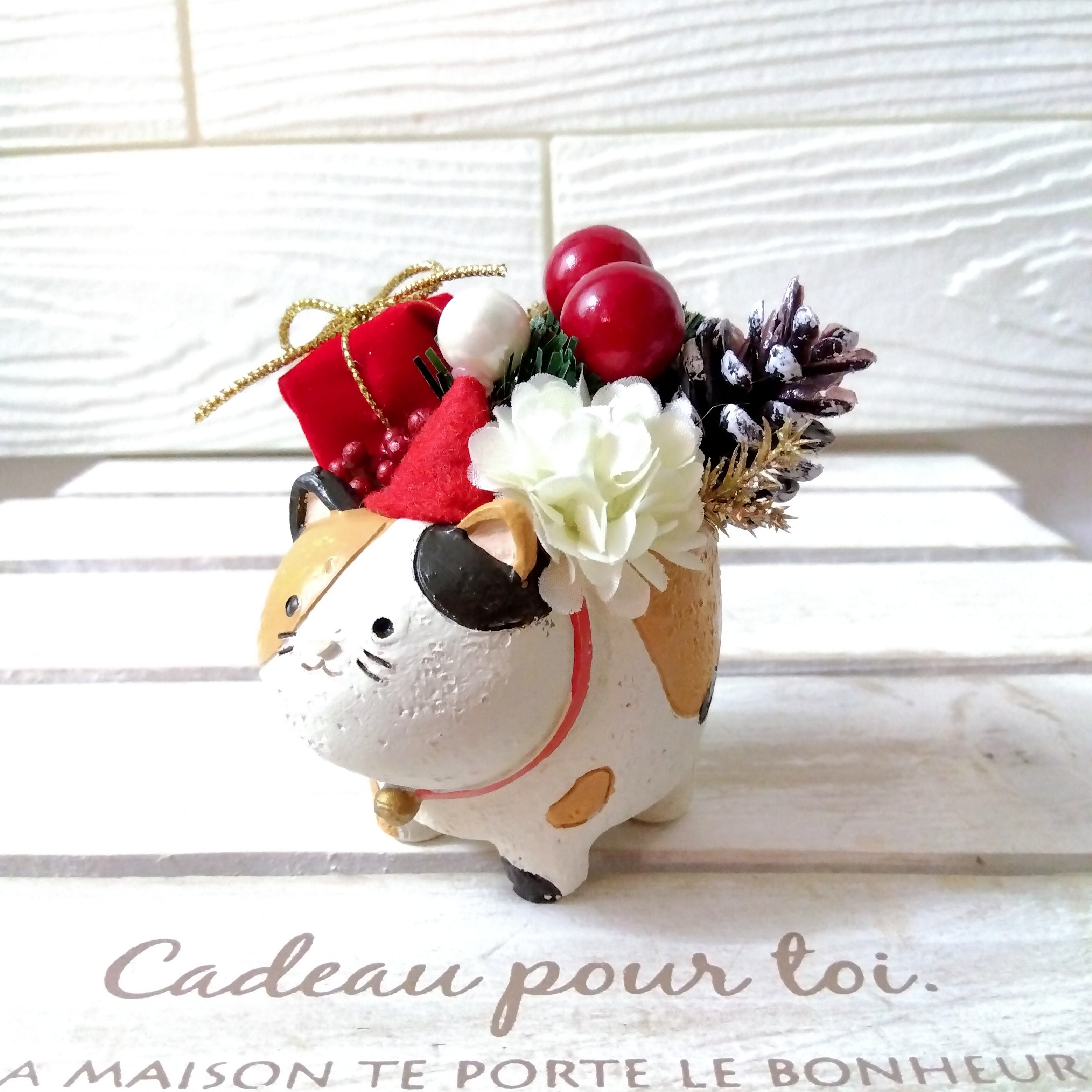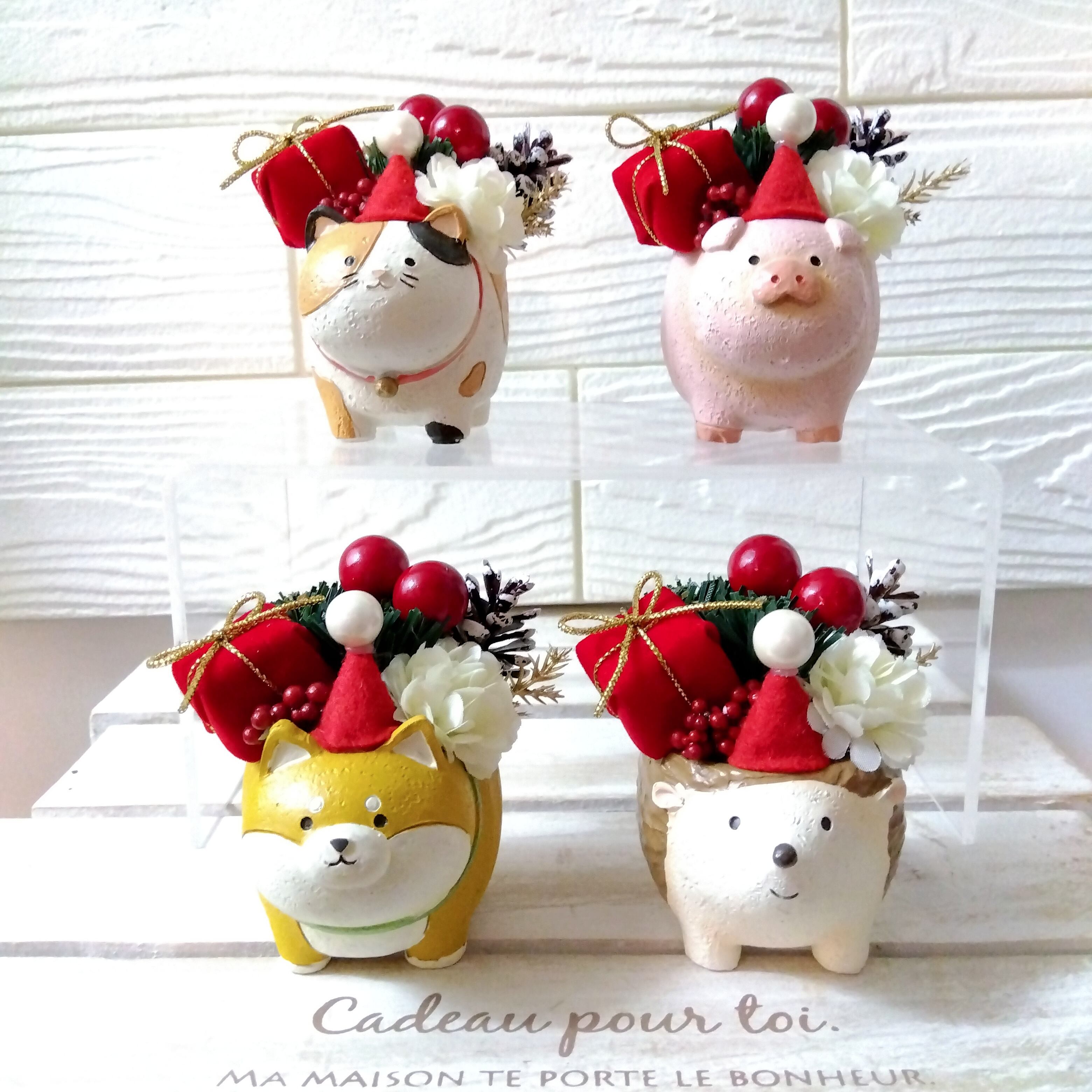 xmas クリスマスフラワーアレンジ インテリア 北欧 プレゼント (柴犬 ハリネズミ 三毛猫 ブタ)