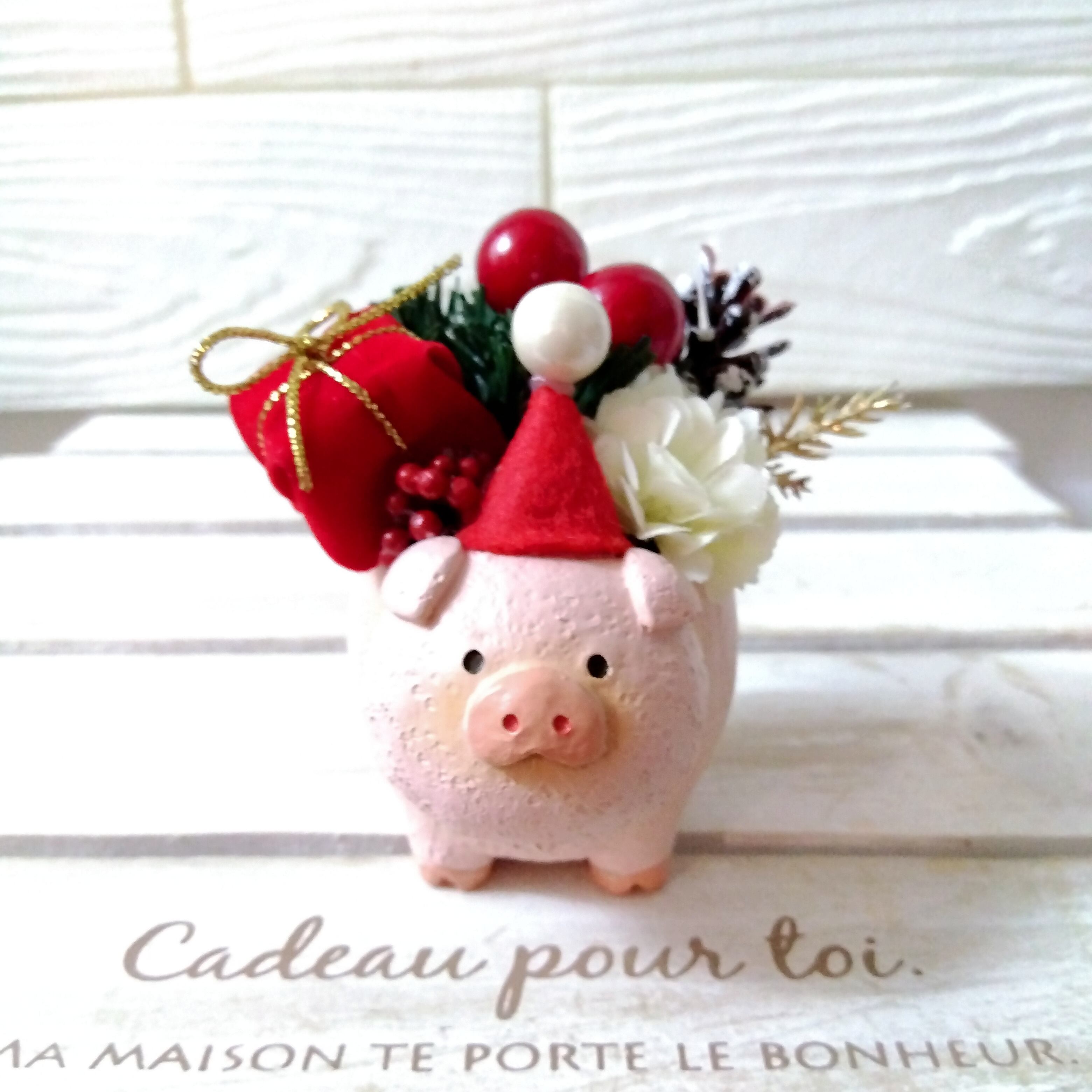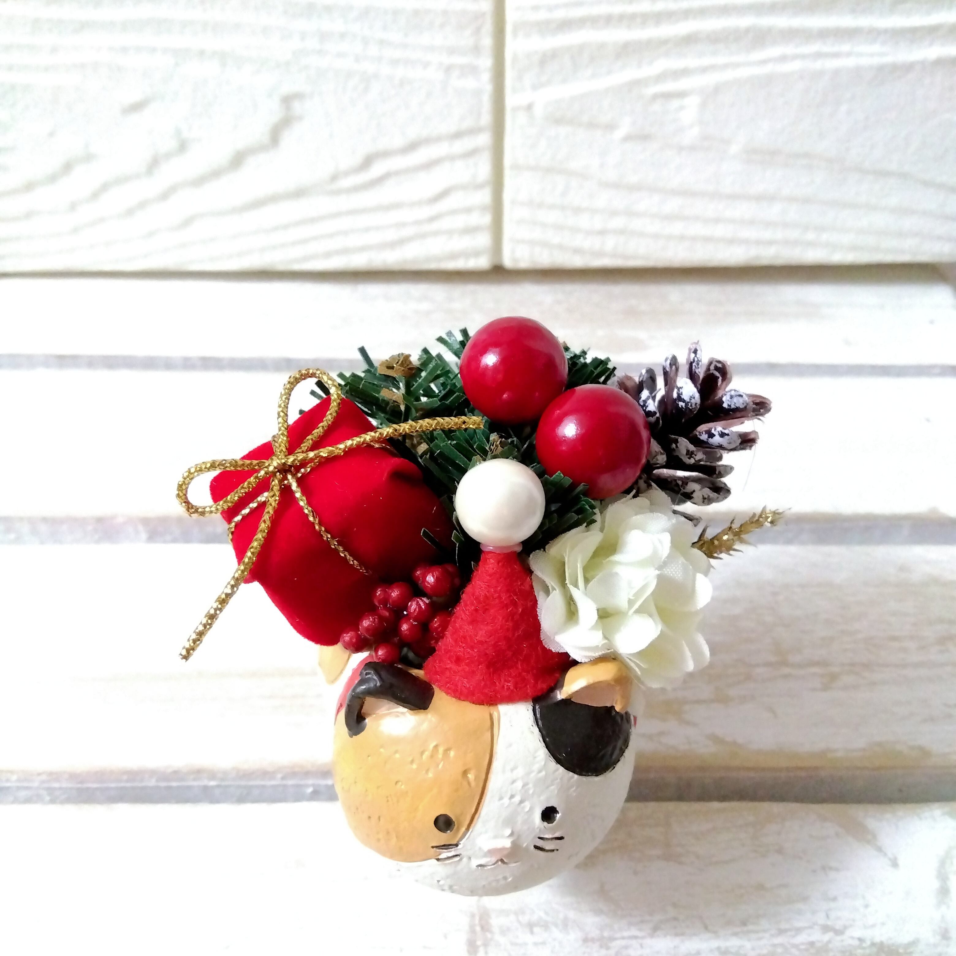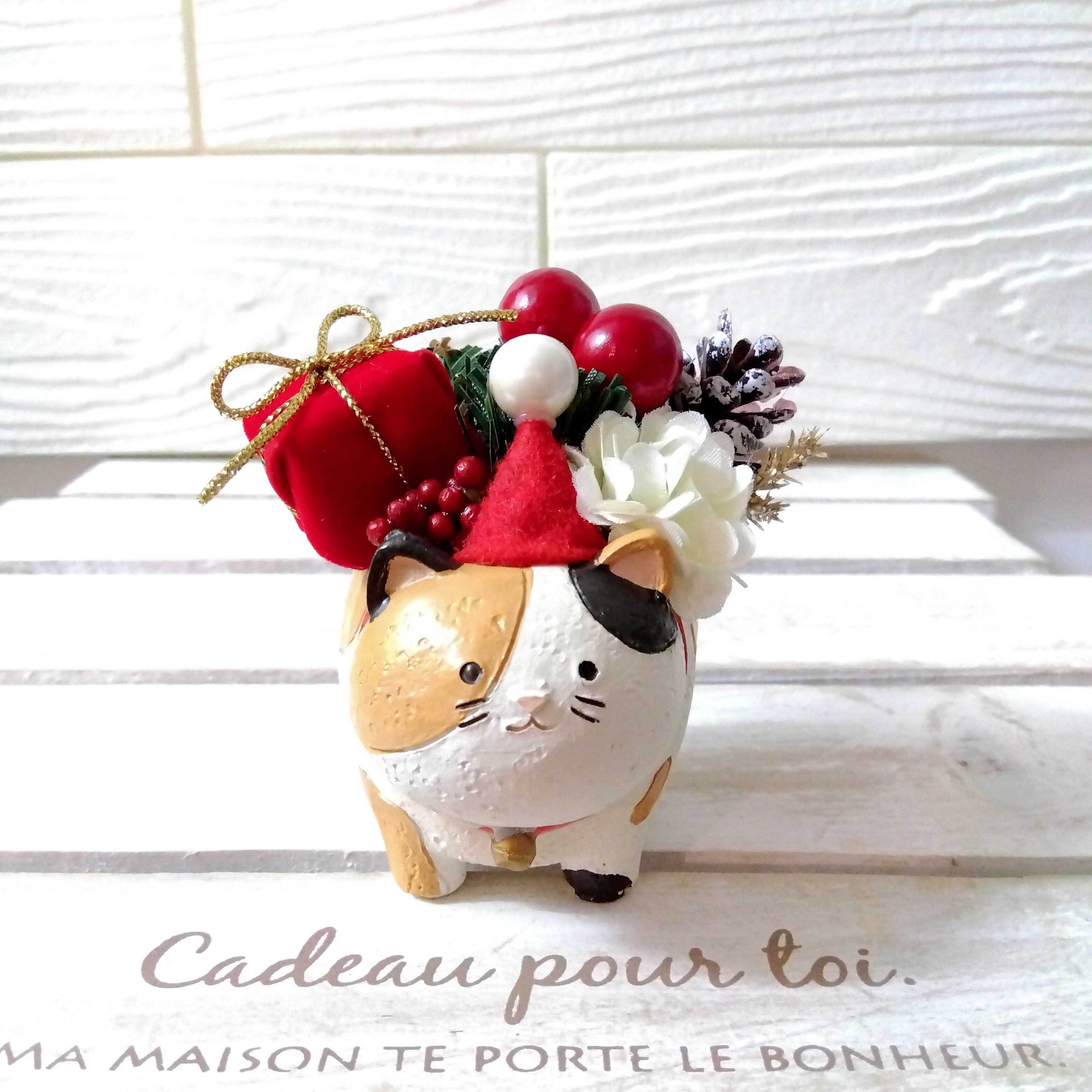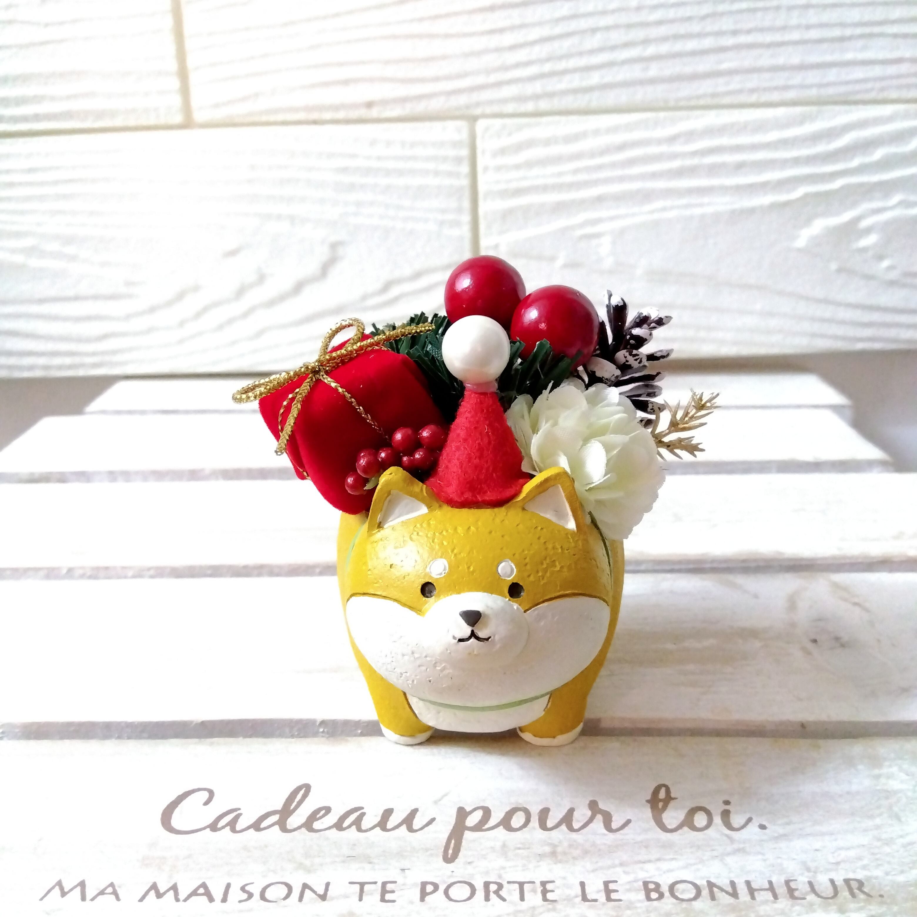 xmas クリスマスフラワーアレンジ インテリア 北欧 プレゼント (柴犬 ハリネズミ 三毛猫 ブタ)