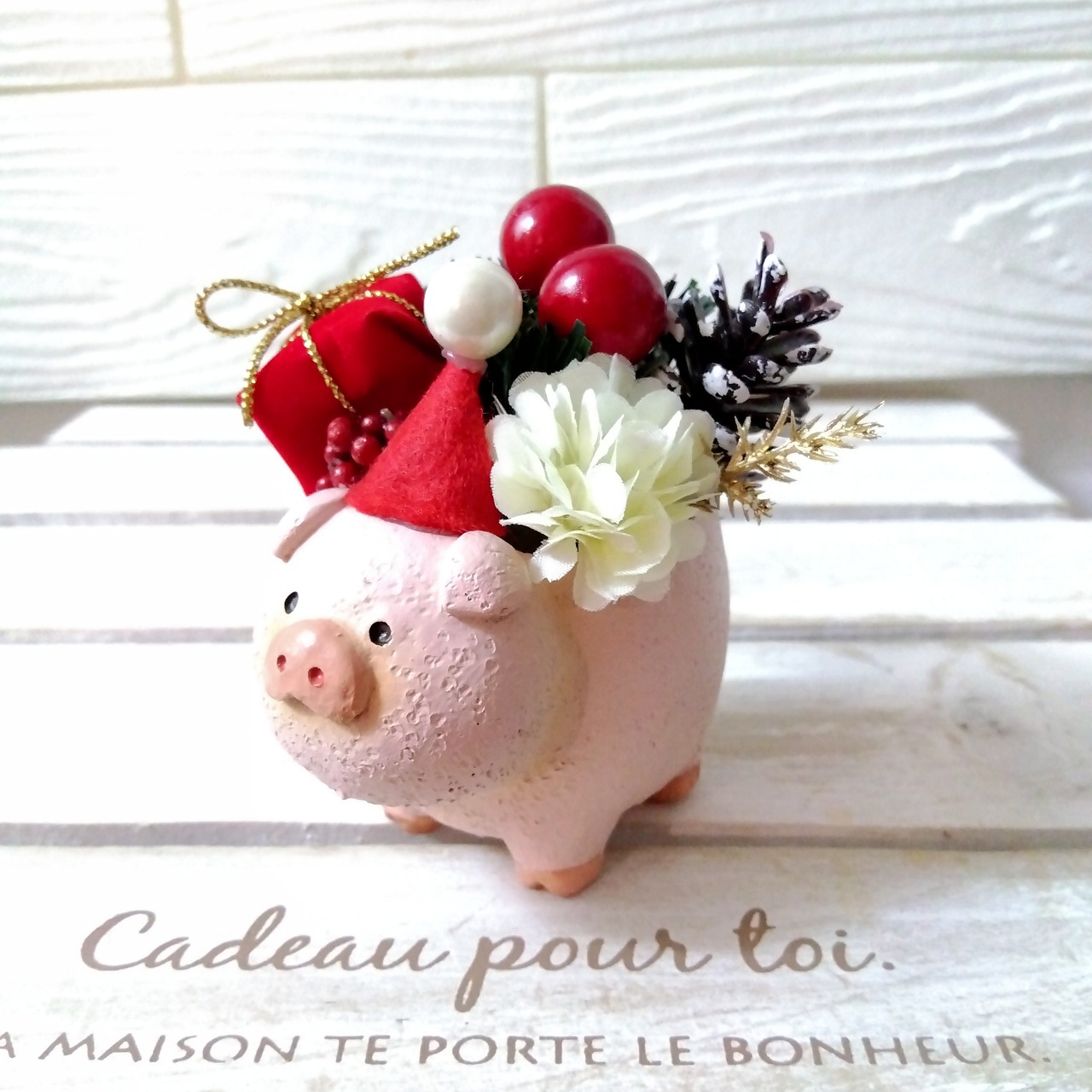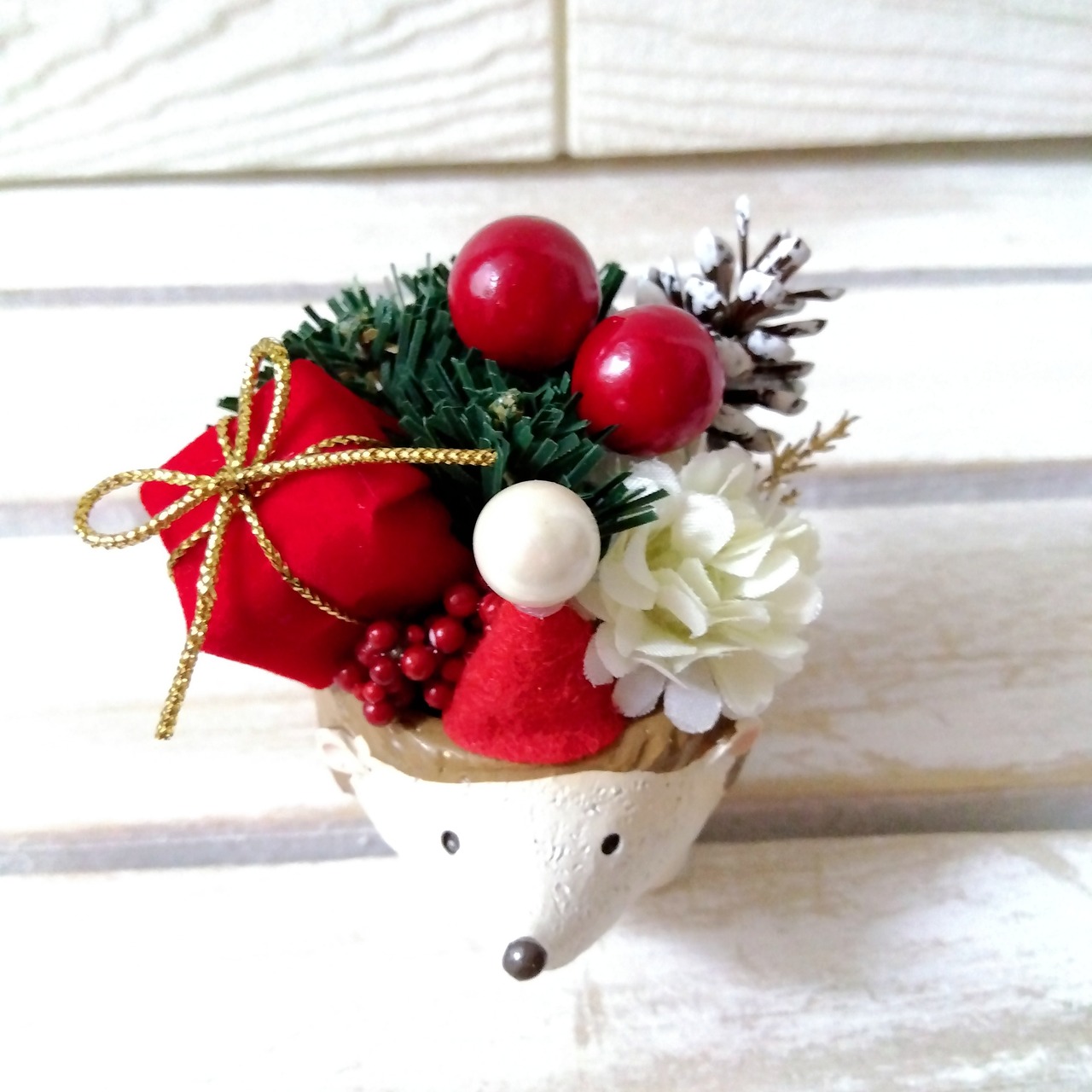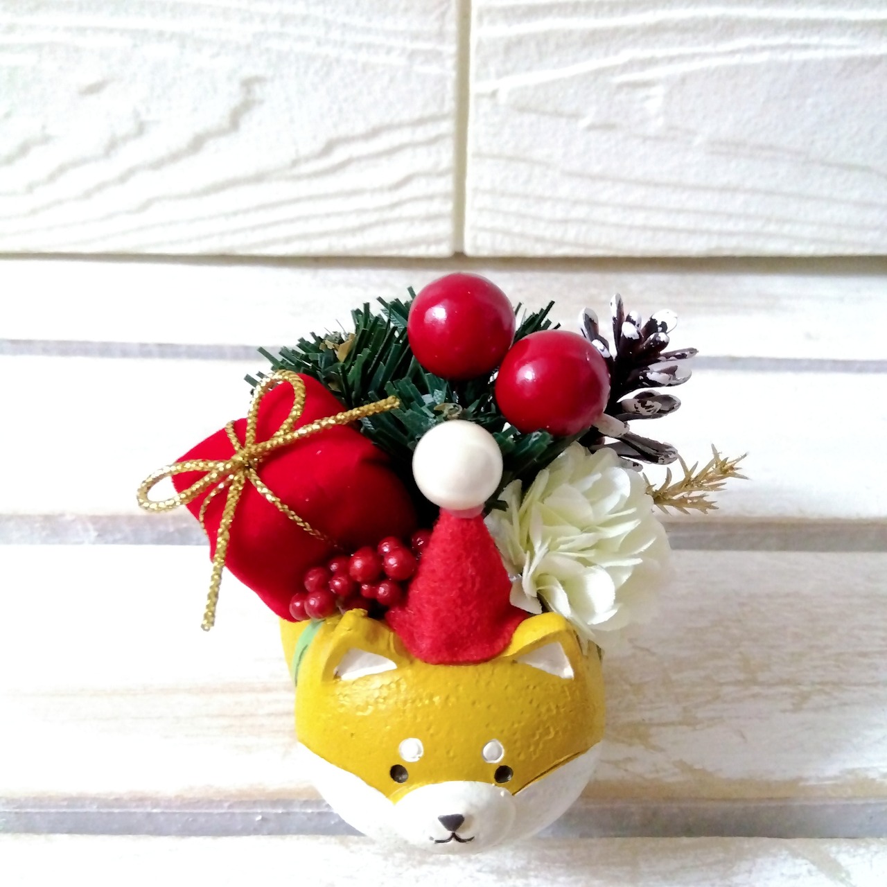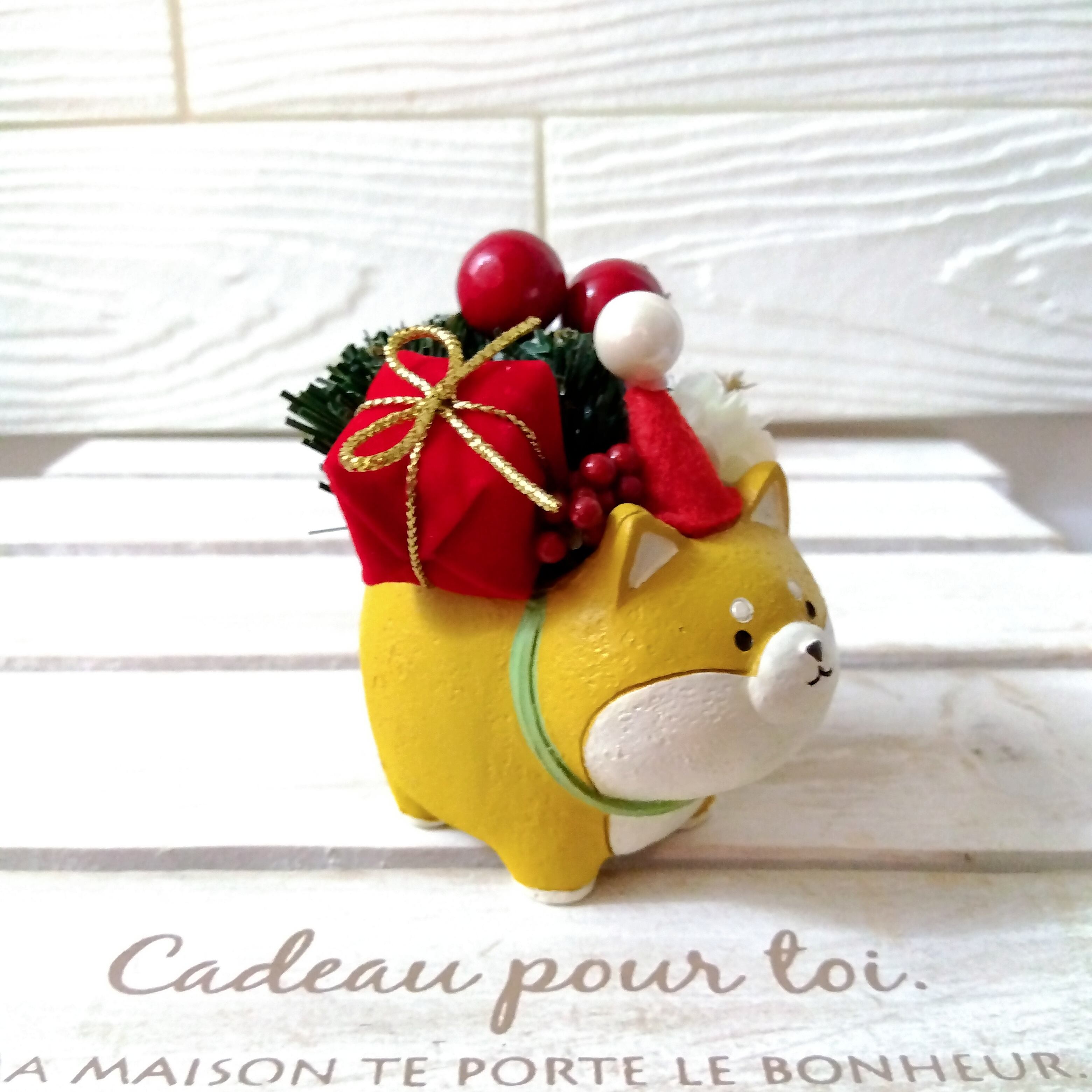 xmas クリスマスフラワーアレンジ インテリア 北欧 プレゼント (柴犬 ハリネズミ 三毛猫 ブタ)