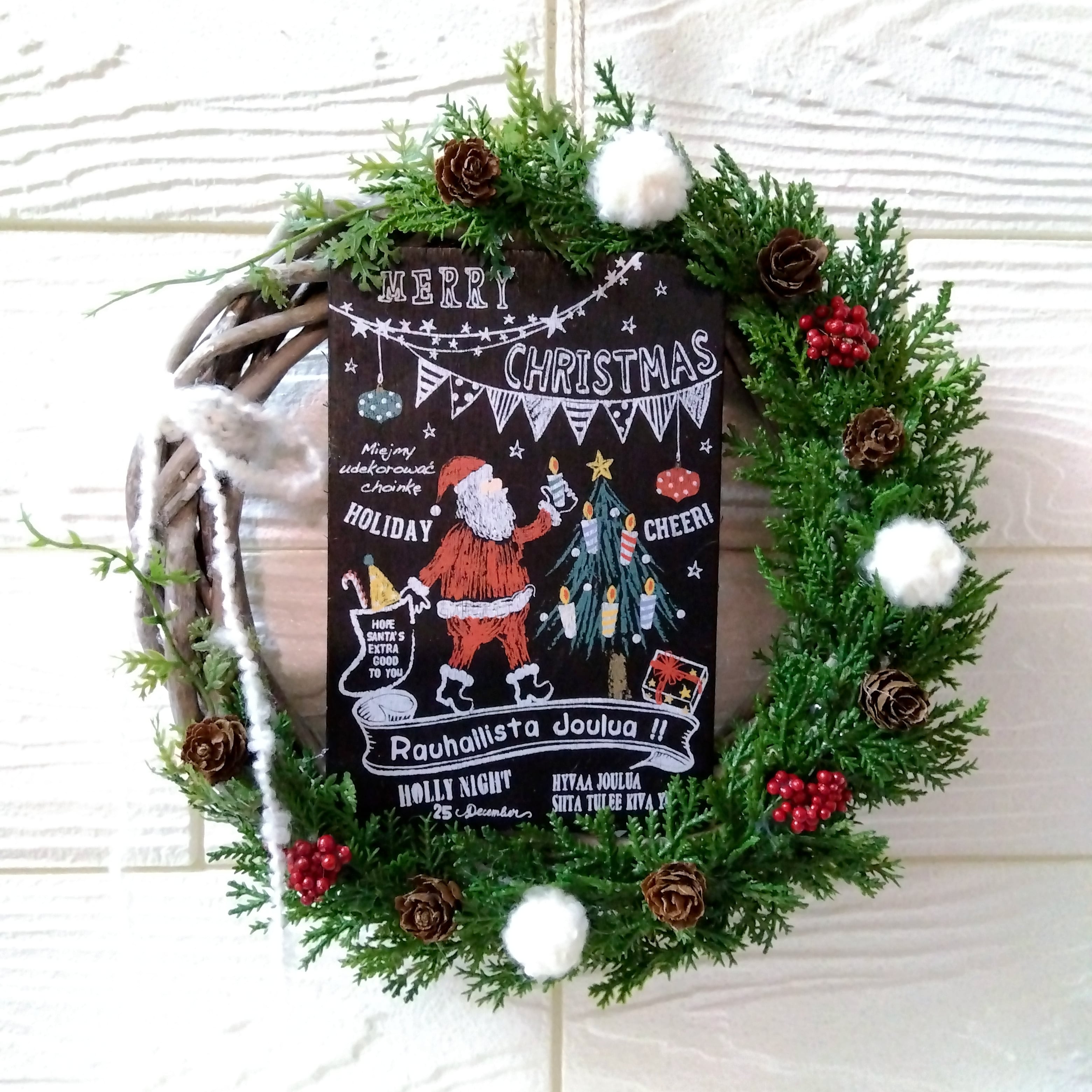 xmas クリスマスリース サンタプレート付き クレッセント 北欧