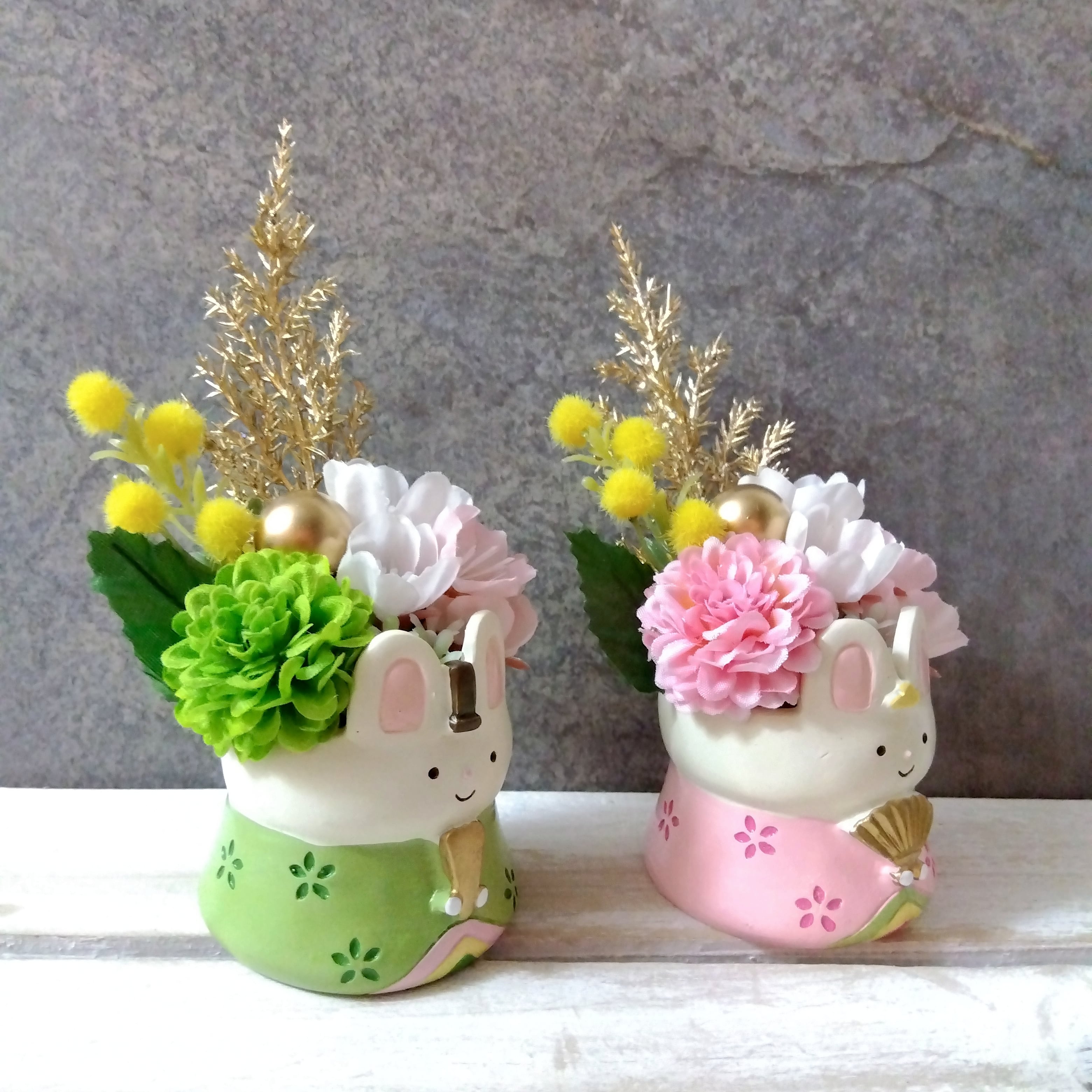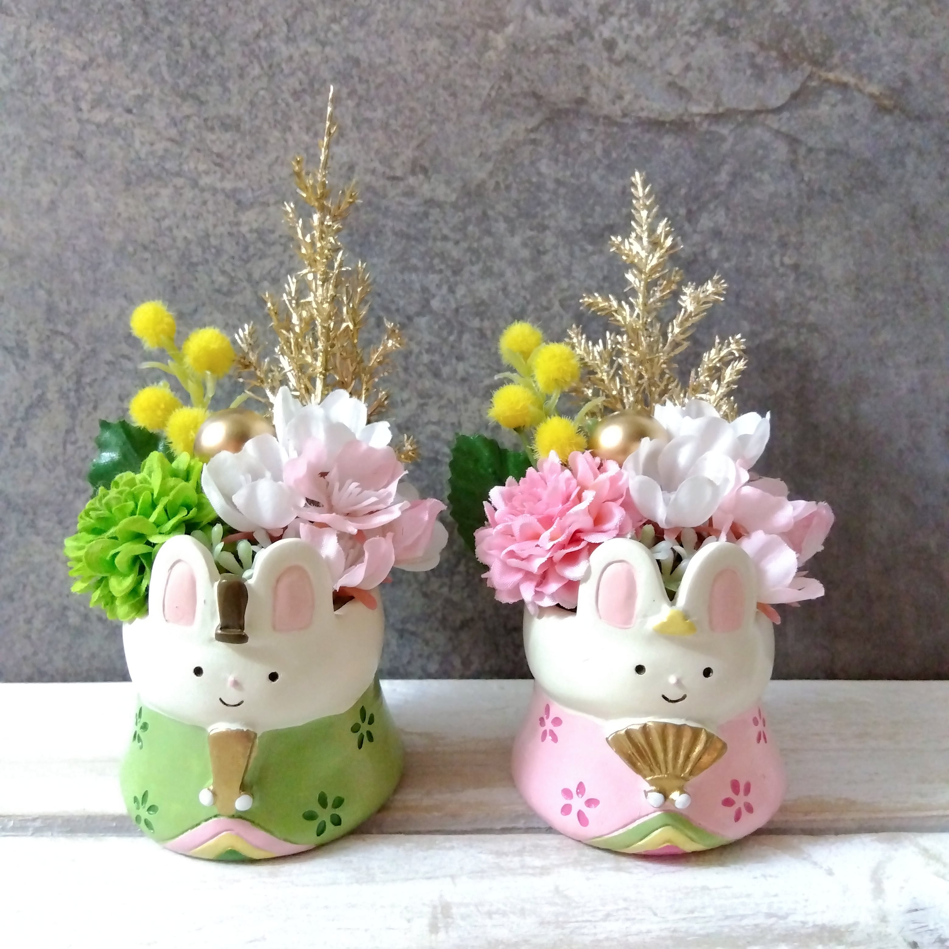 桃の節句 ひなまつり フラワーアレンジ お雛様 うさぎ 桜 ミモザ