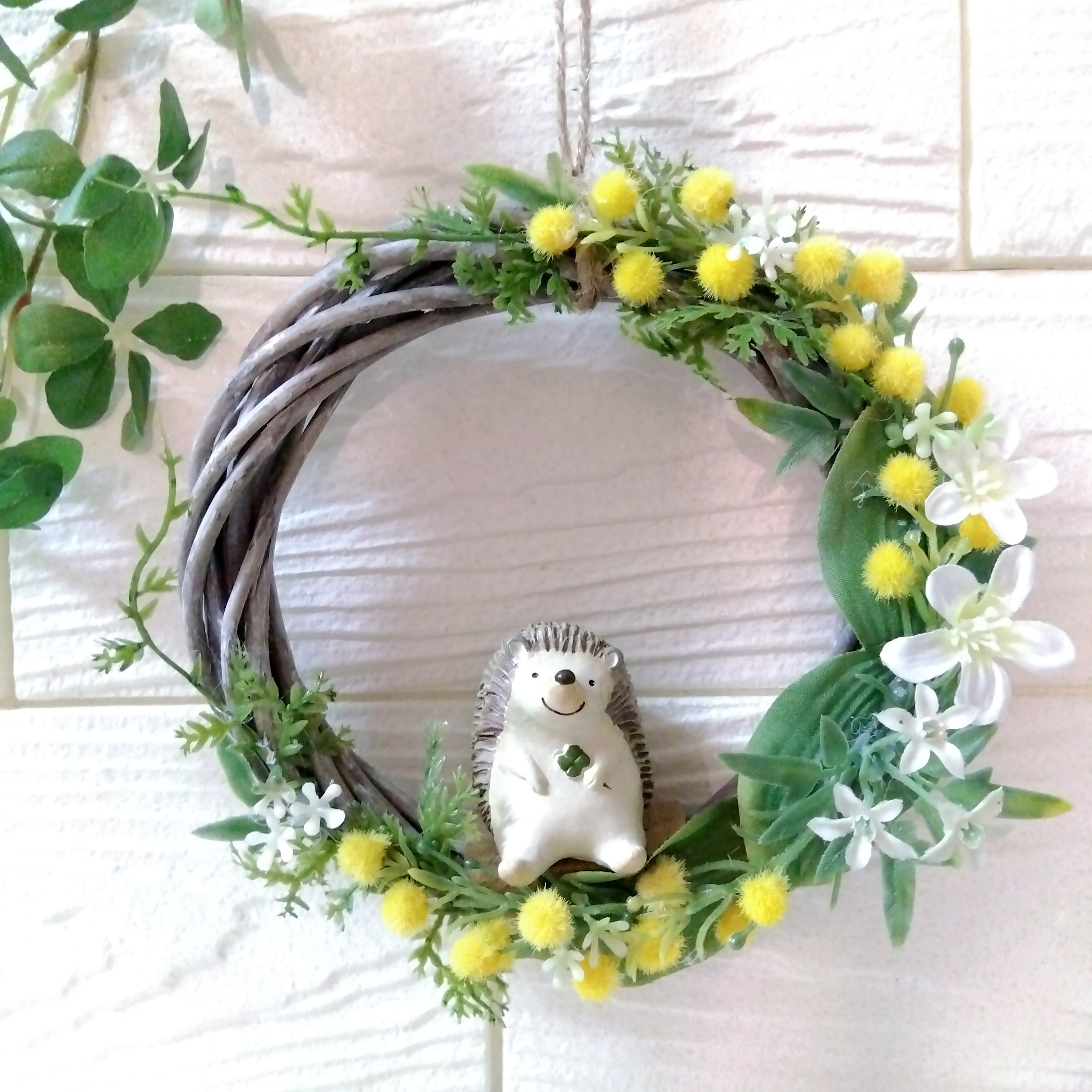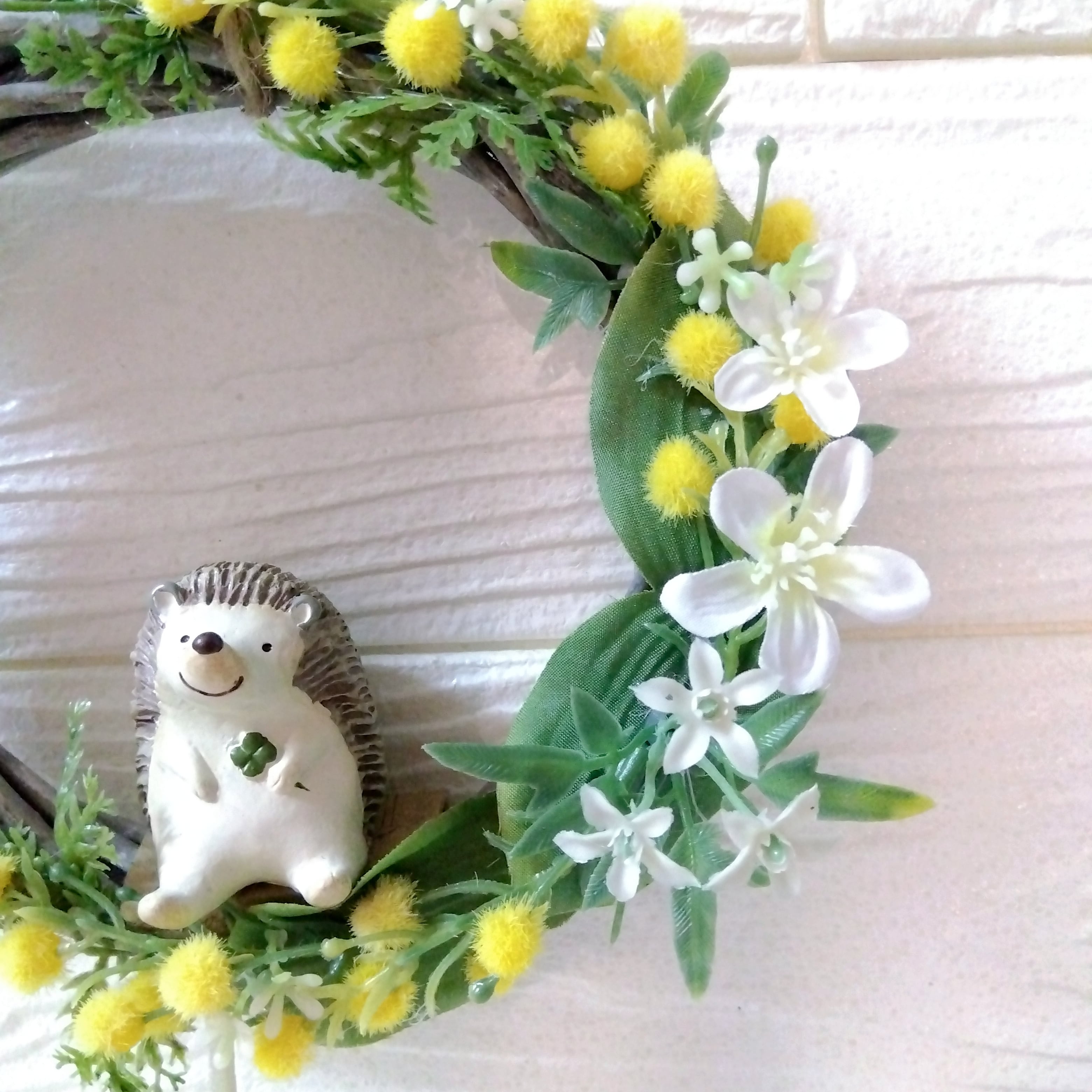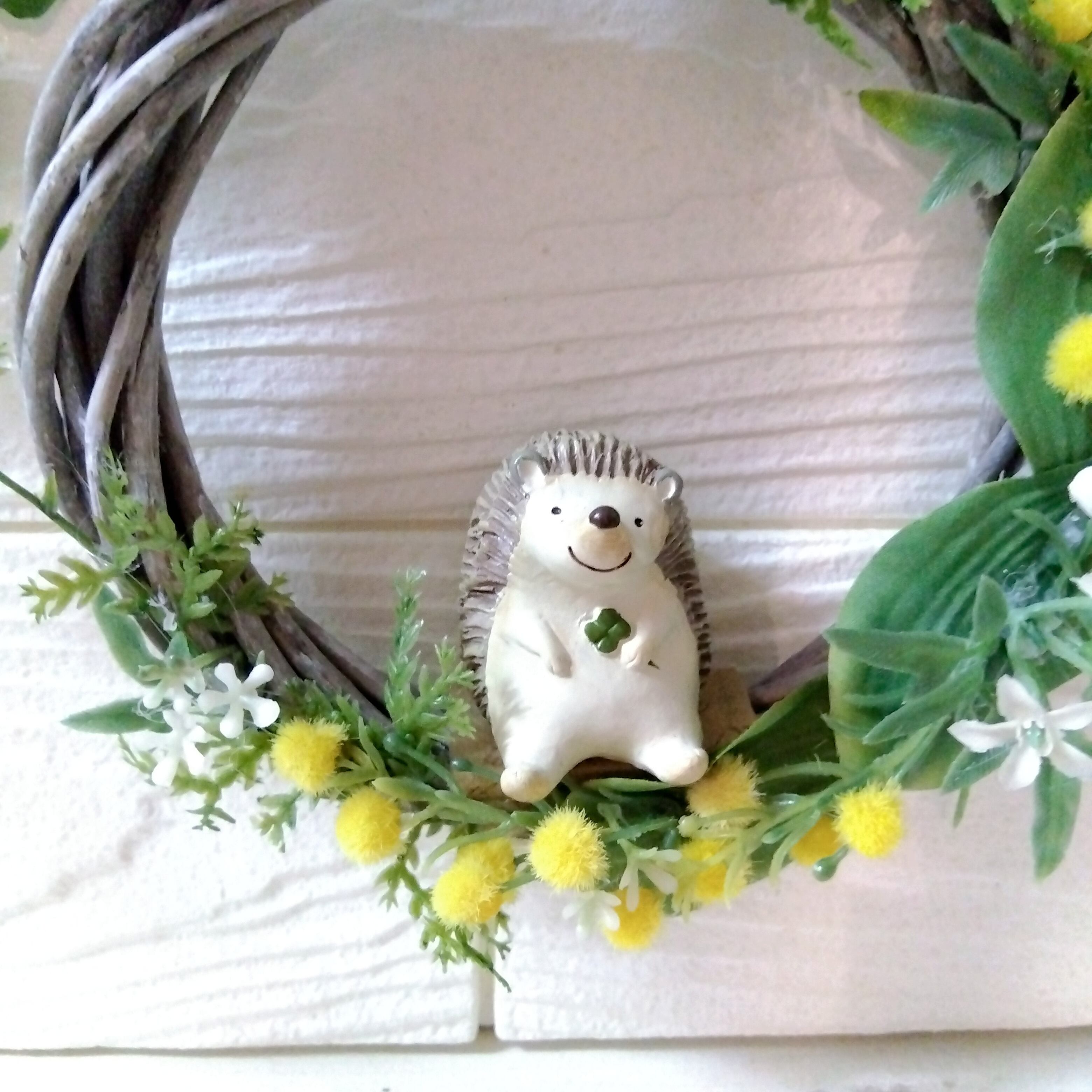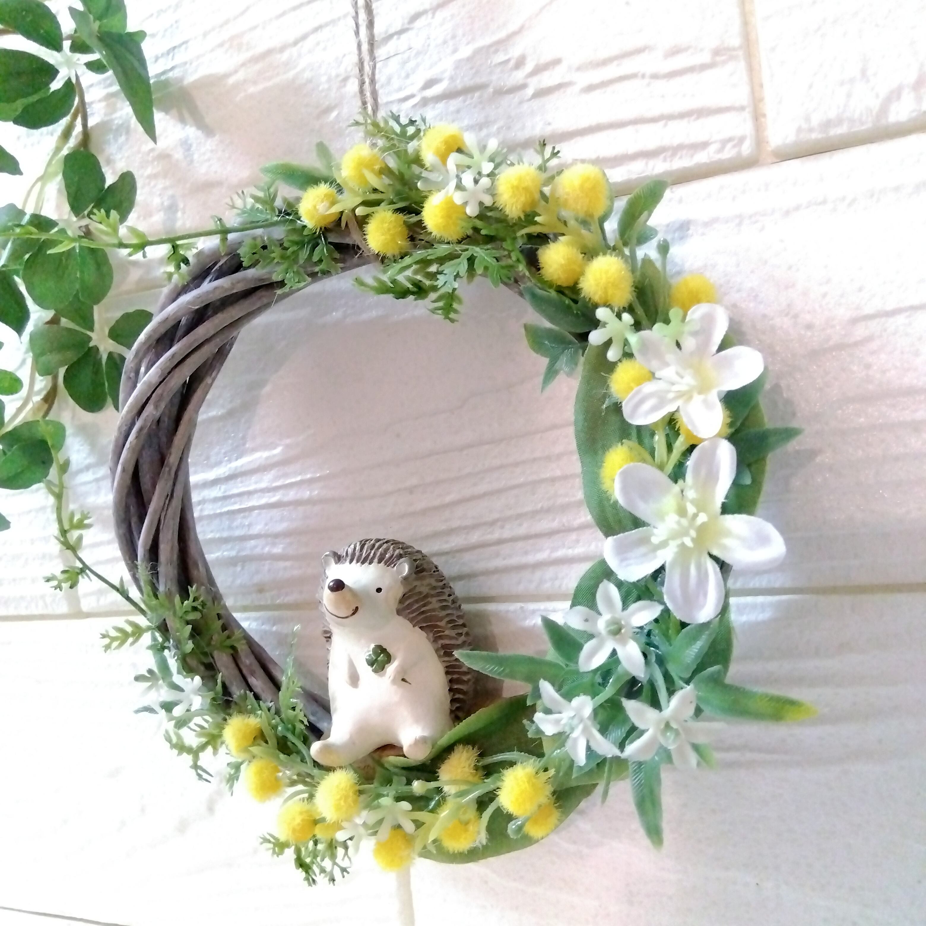 リース アーティフィシャルフラワー 壁かけ インテリア ギフト プレゼント 母の日 誕生日 送別品 結婚式 結婚祝い 出産祝い 開店祝い 祝い 敬老の日 ミモザ 春 ハリネズミ