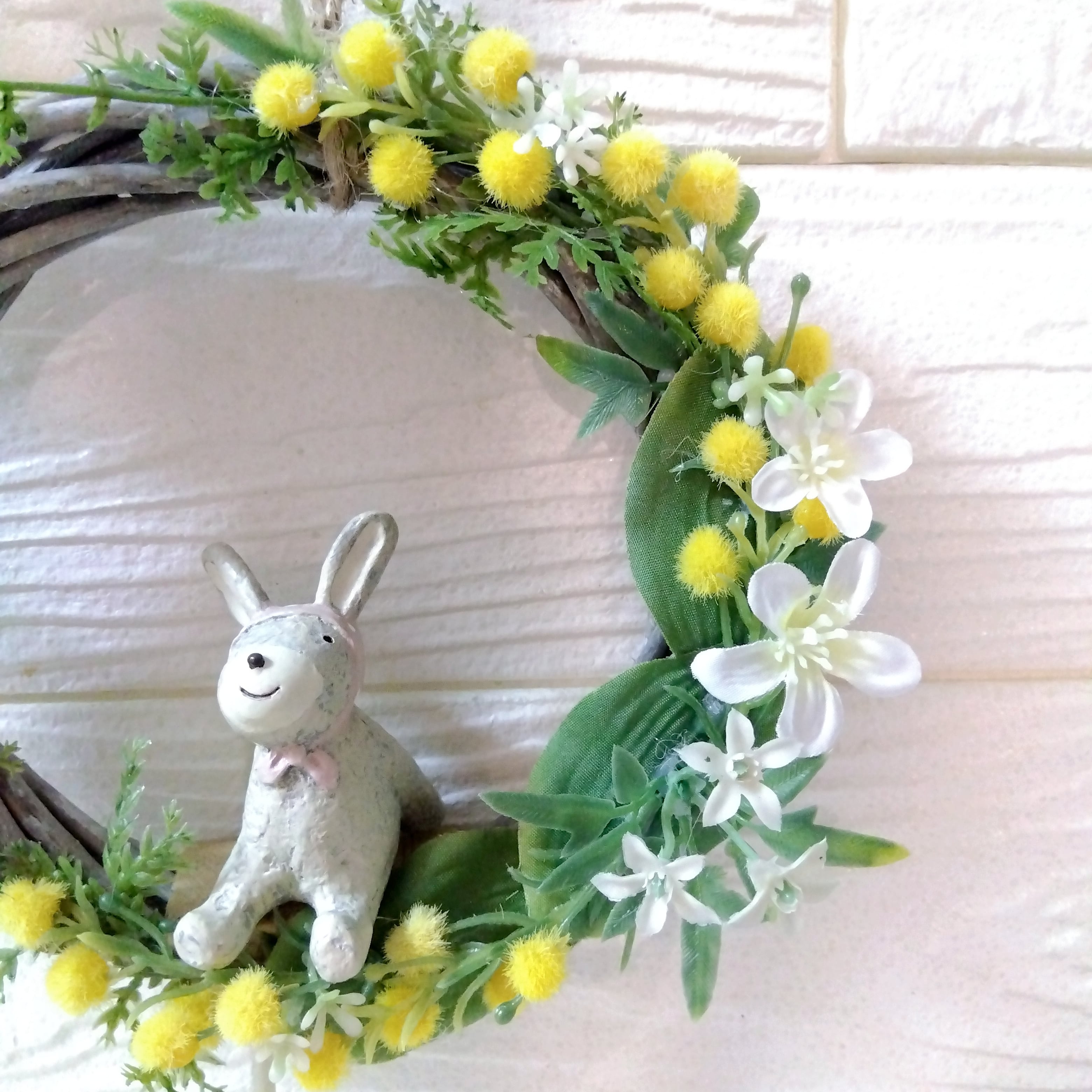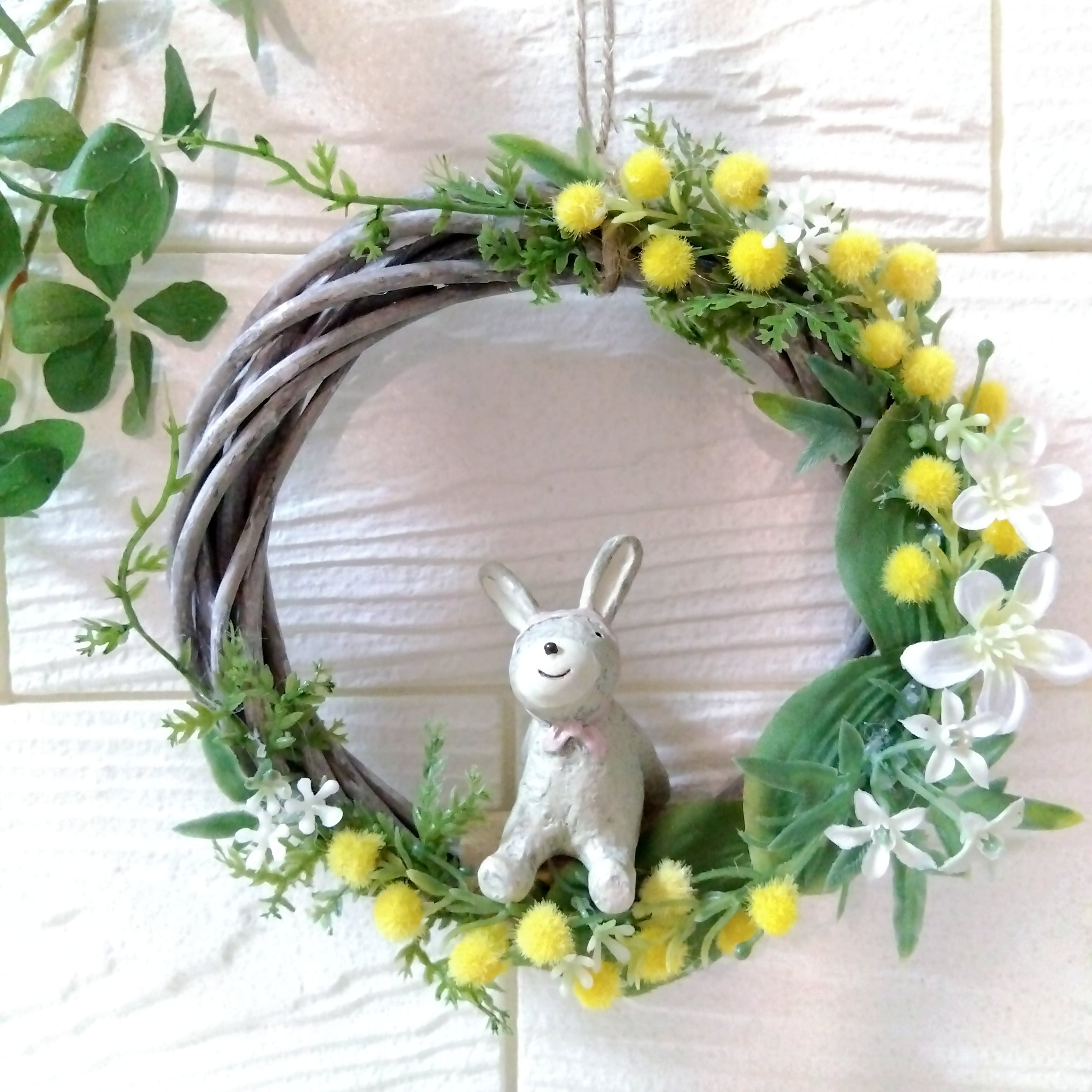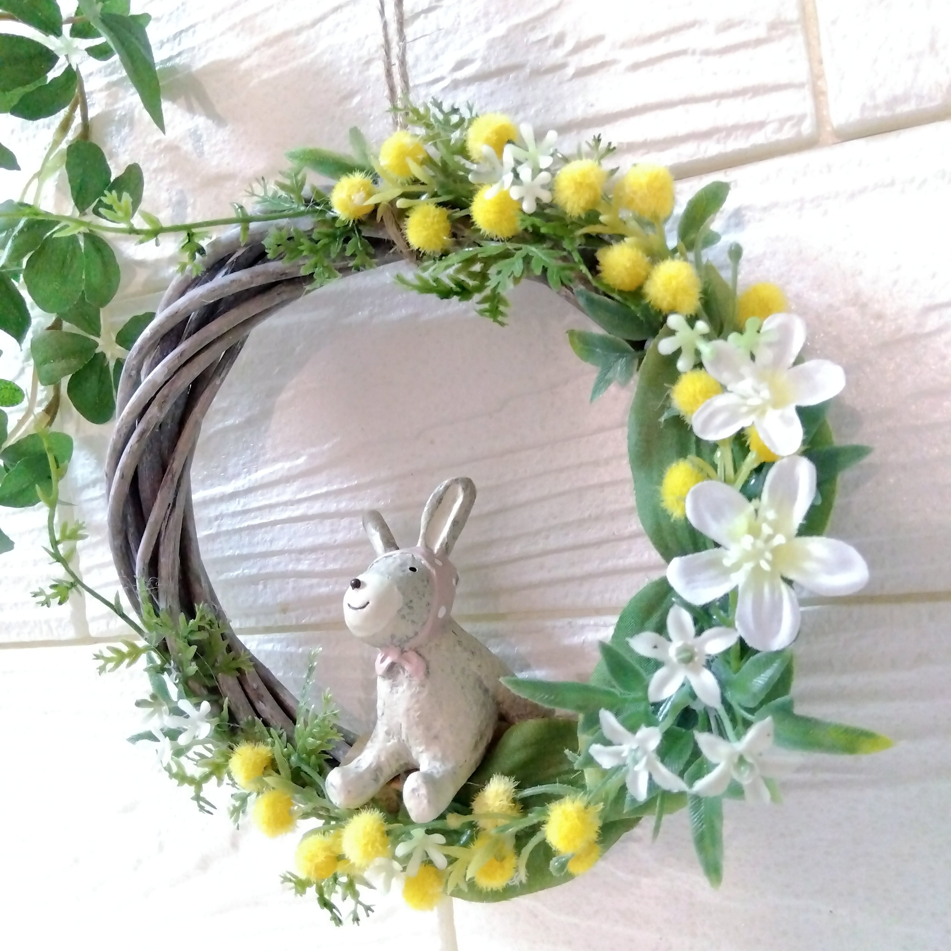リース アーティフィシャルフラワー 壁かけ インテリア ギフト プレゼント 母の日 誕生日 送別品 結婚式 結婚祝い 出産祝い 開店祝い 祝い 敬老の日 ミモザ 春 ウサギ うさぎ