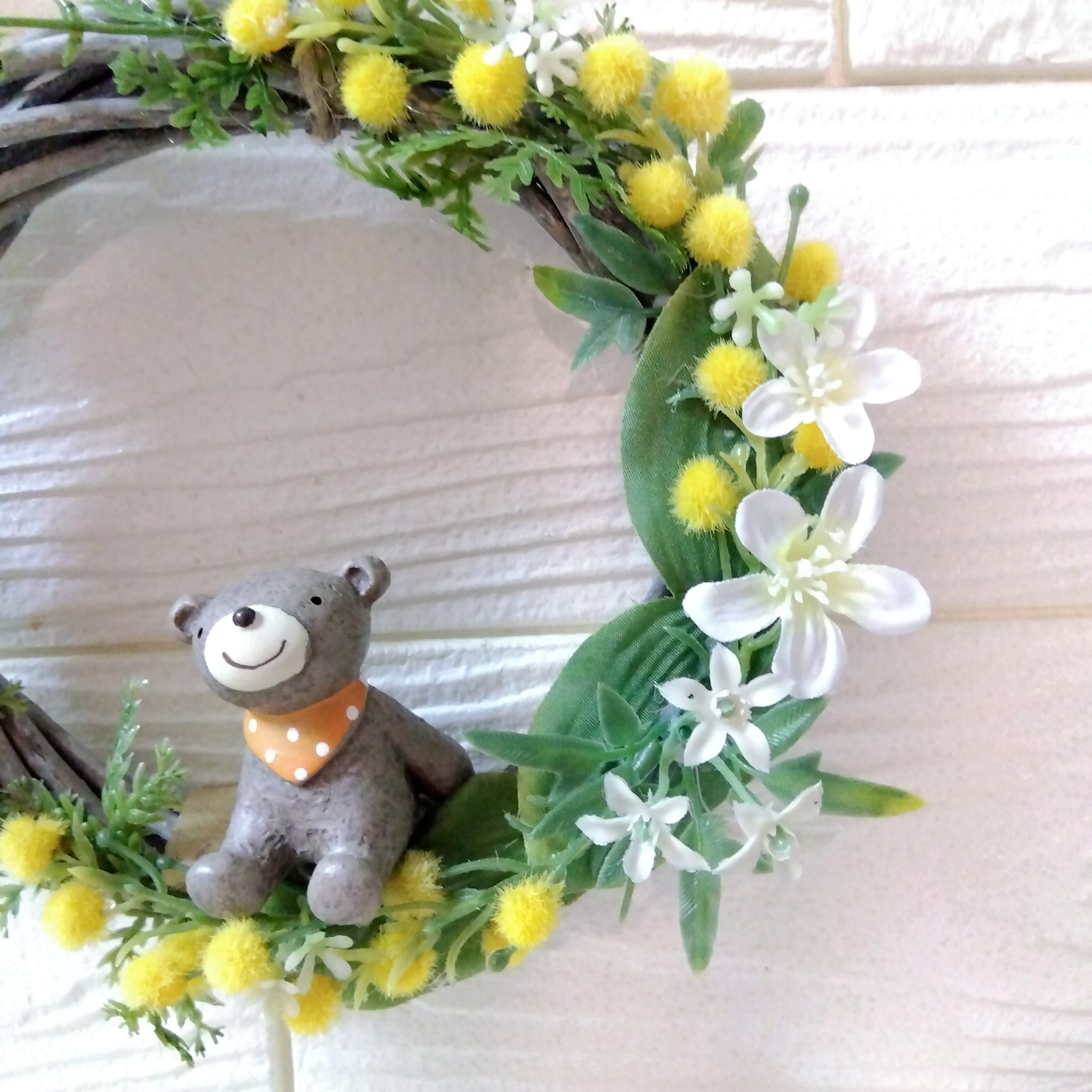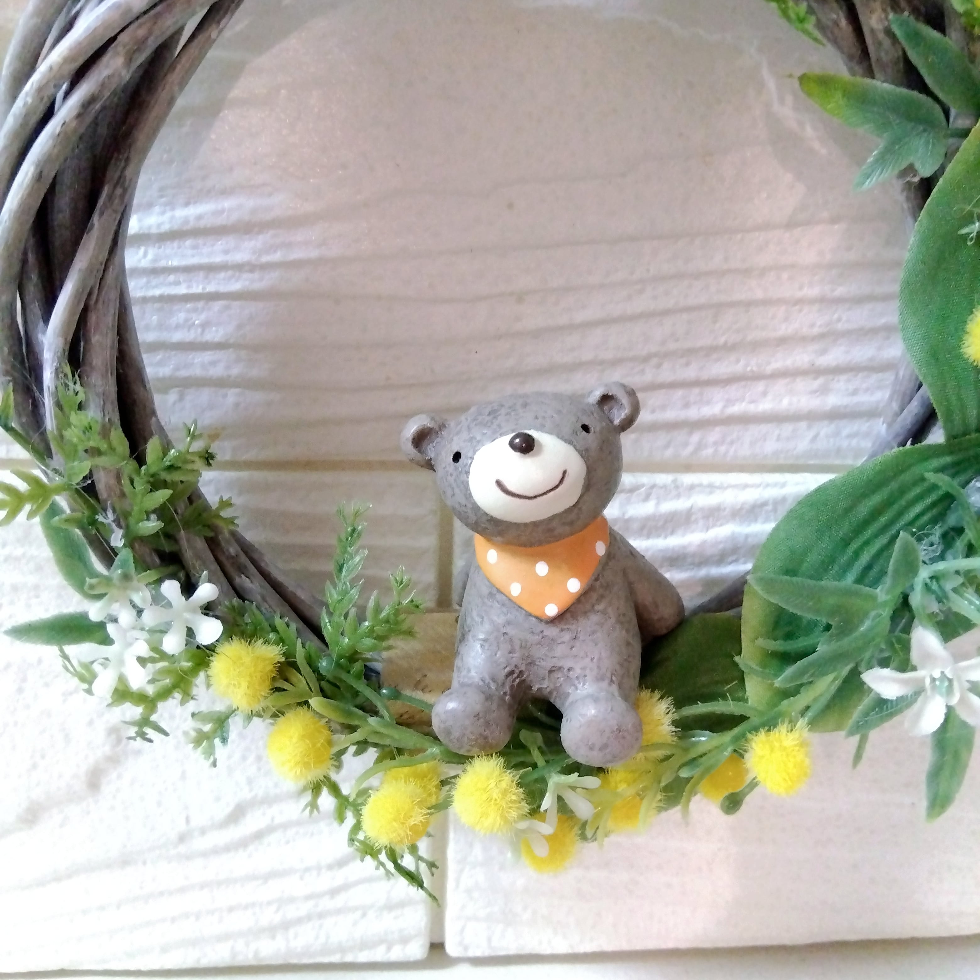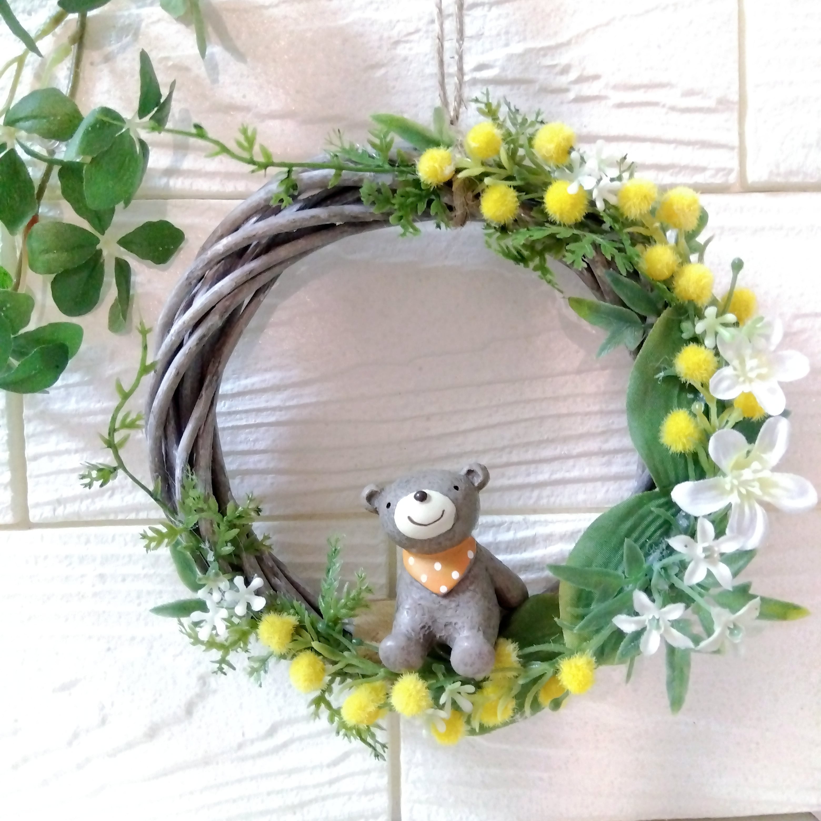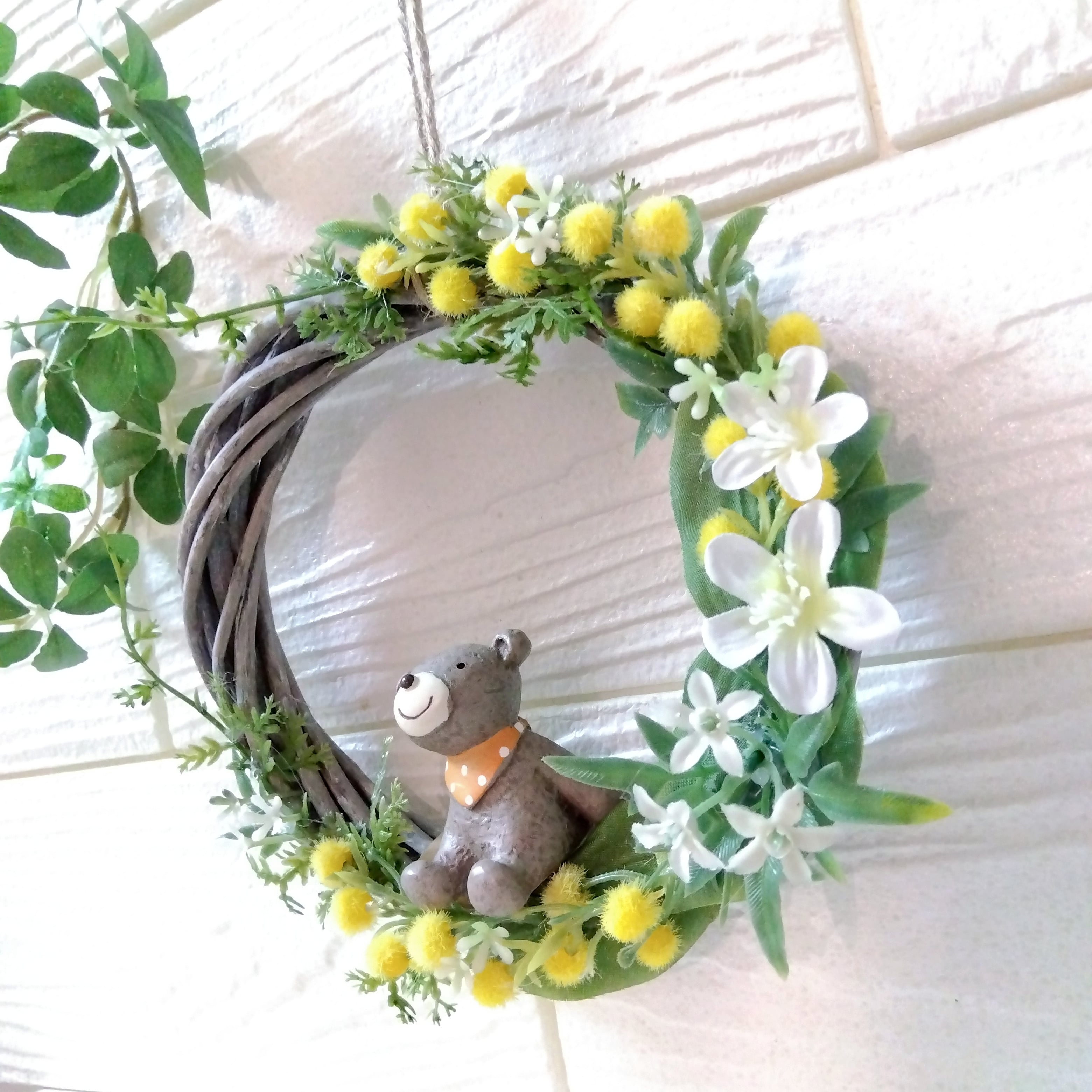 リース アーティフィシャルフラワー 壁かけ インテリア ギフト プレゼント 母の日 誕生日 送別品 結婚式 結婚祝い 出産祝い 開店祝い 祝い 敬老の日 ミモザ 春 クマ くま 熊