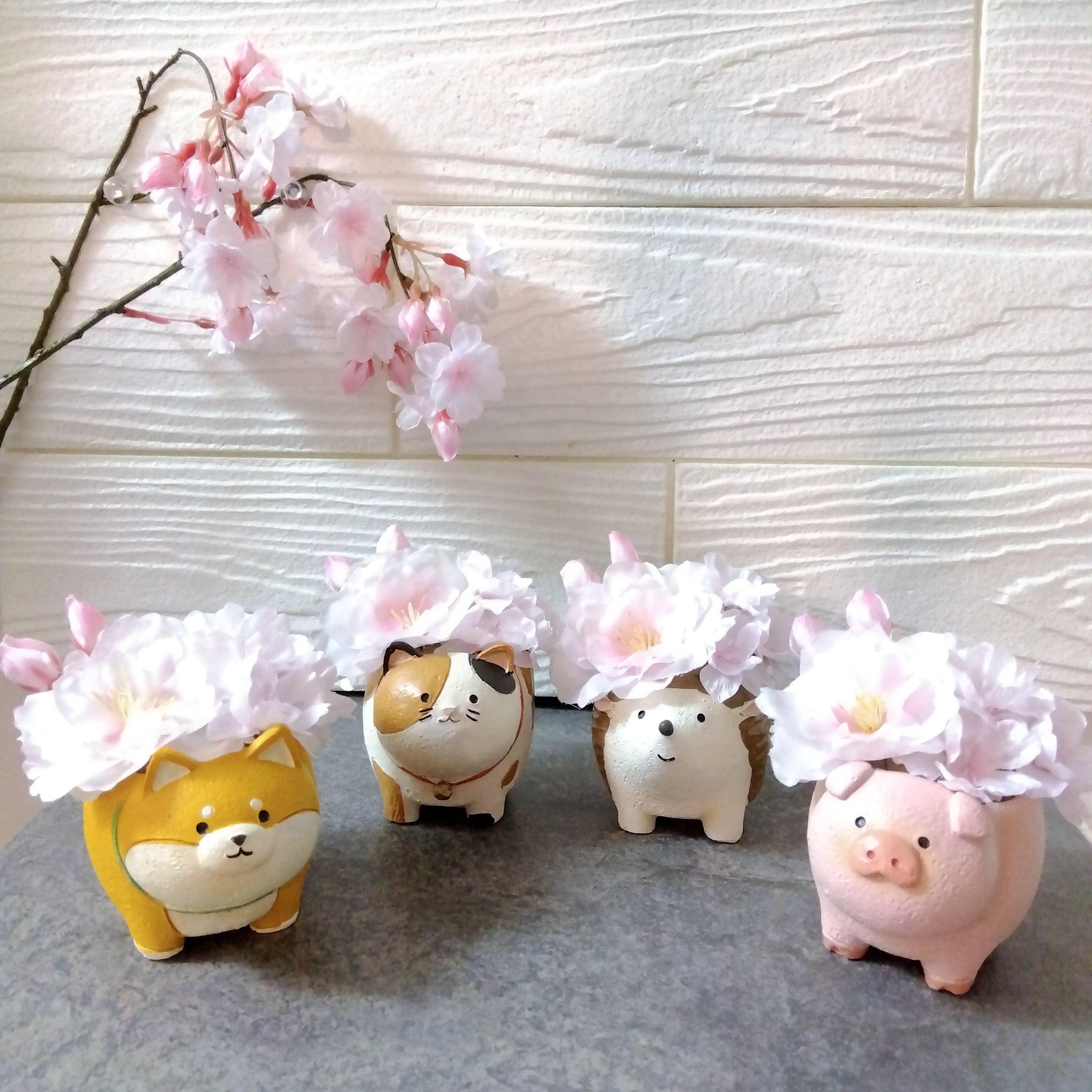 フラワーアレンジ ギフト インテリア アニマル 桜(ハリネズミ ブタ 柴犬 三毛猫)