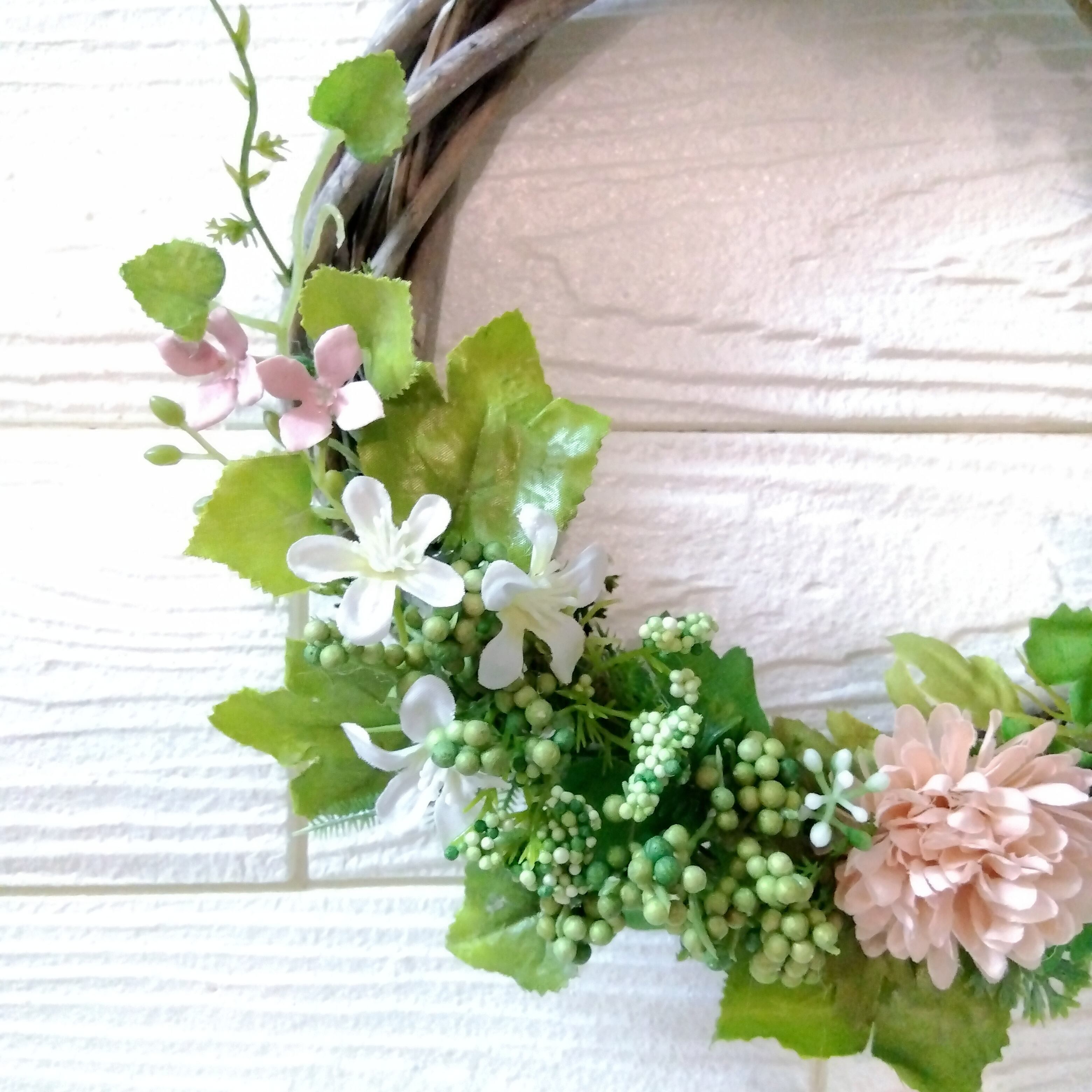 造花(アーティフィシャルフラワー)でできたリースです!