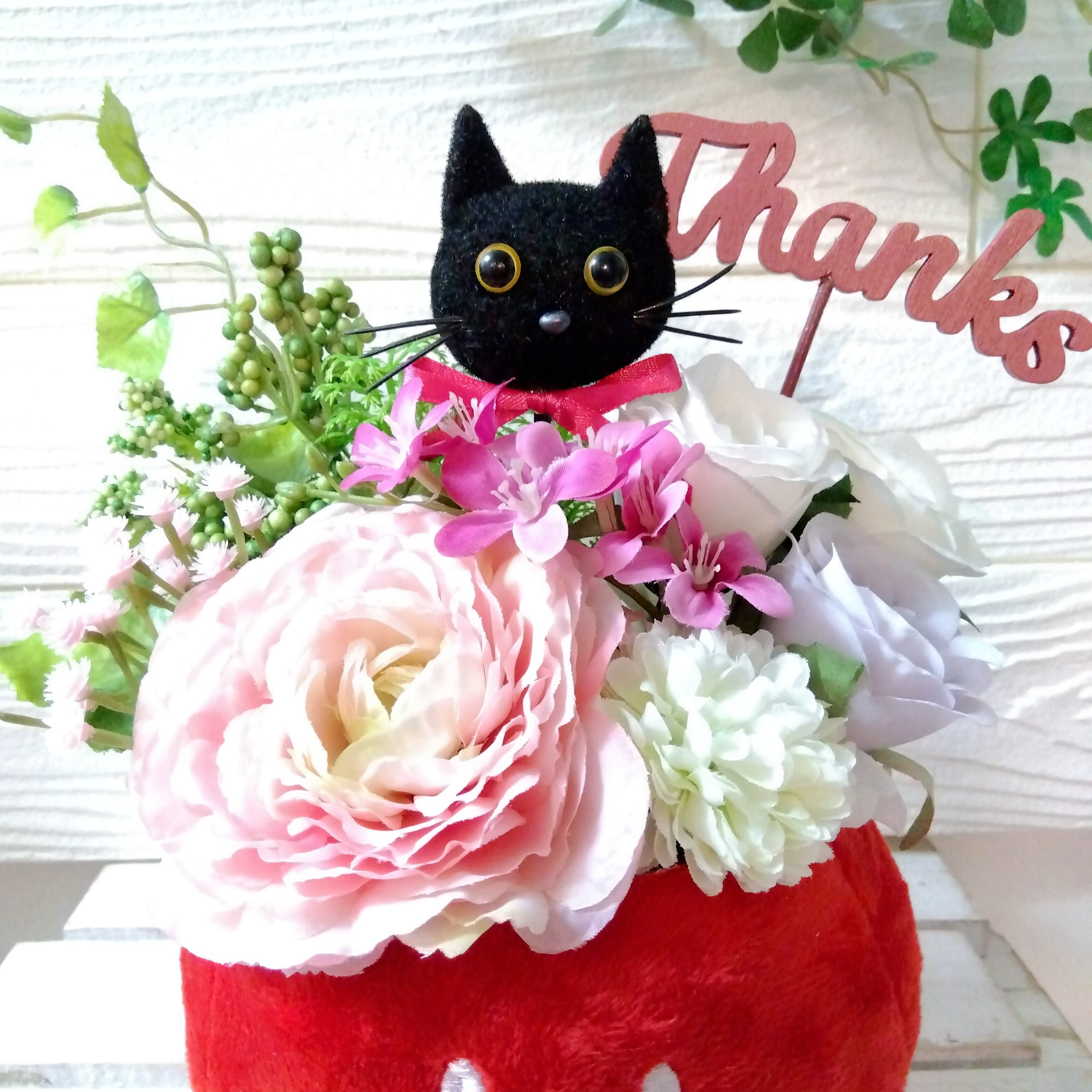 フラワーギフト 置物 インテリア 花 猫 ネコ 黒猫
