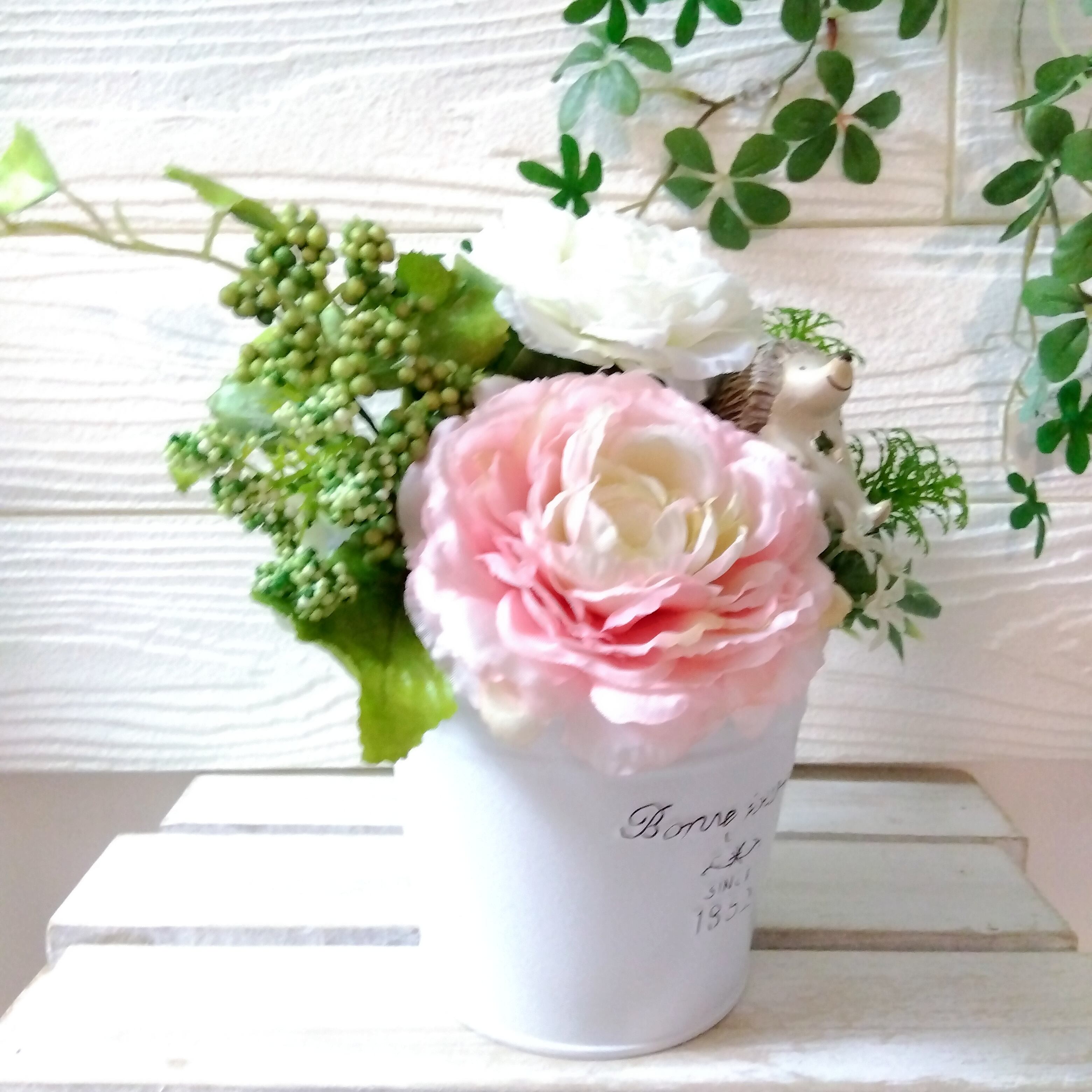 フラワーアレンジ ミルキー ラナンキュラス ハリネズミ(母の日 結婚式 誕生日 ギフト プレゼント 送別品)