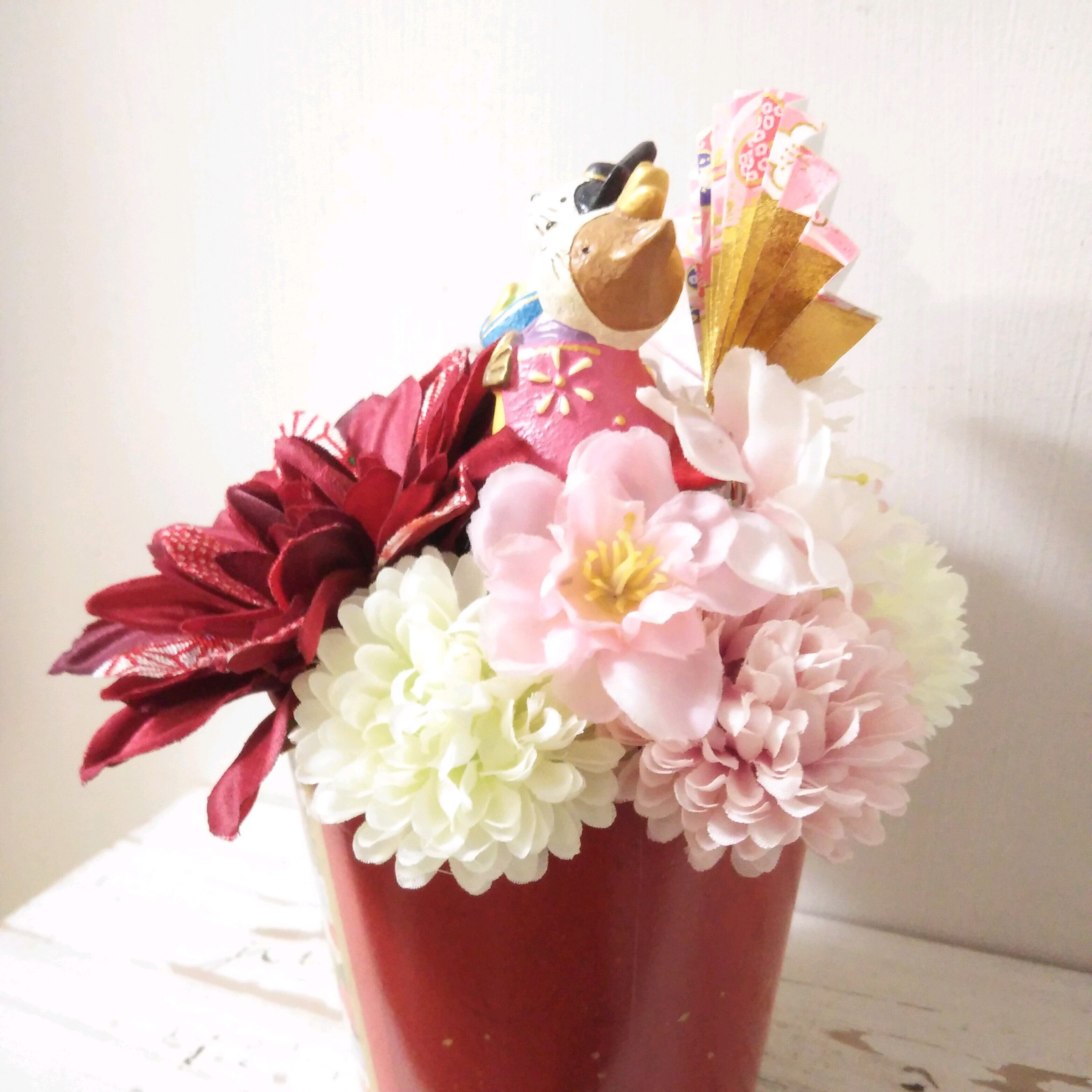 かわいいマスコット付きのお雛さまの造花のアレンジです!