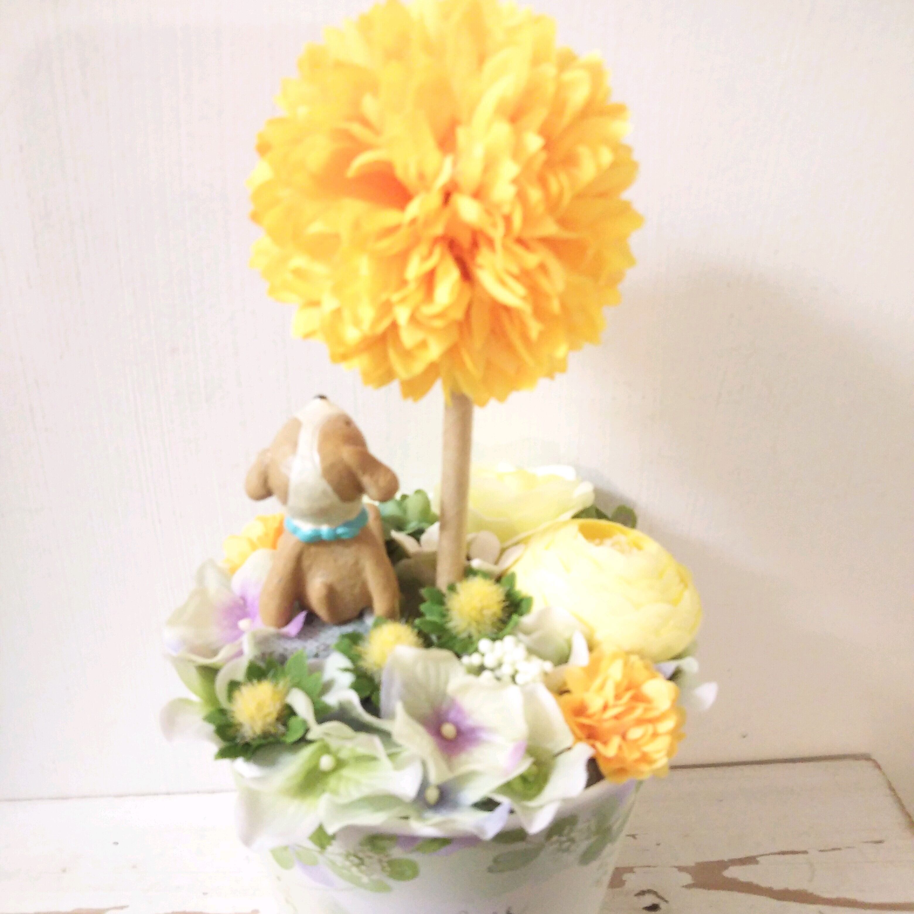 フラワーアレンジ スマイルトピアリー イエロー イヌ