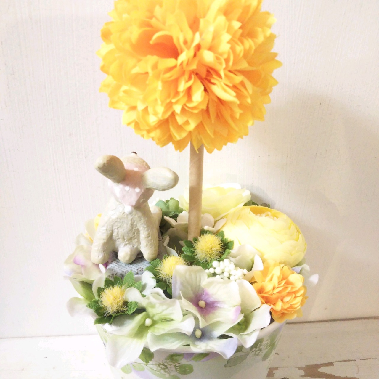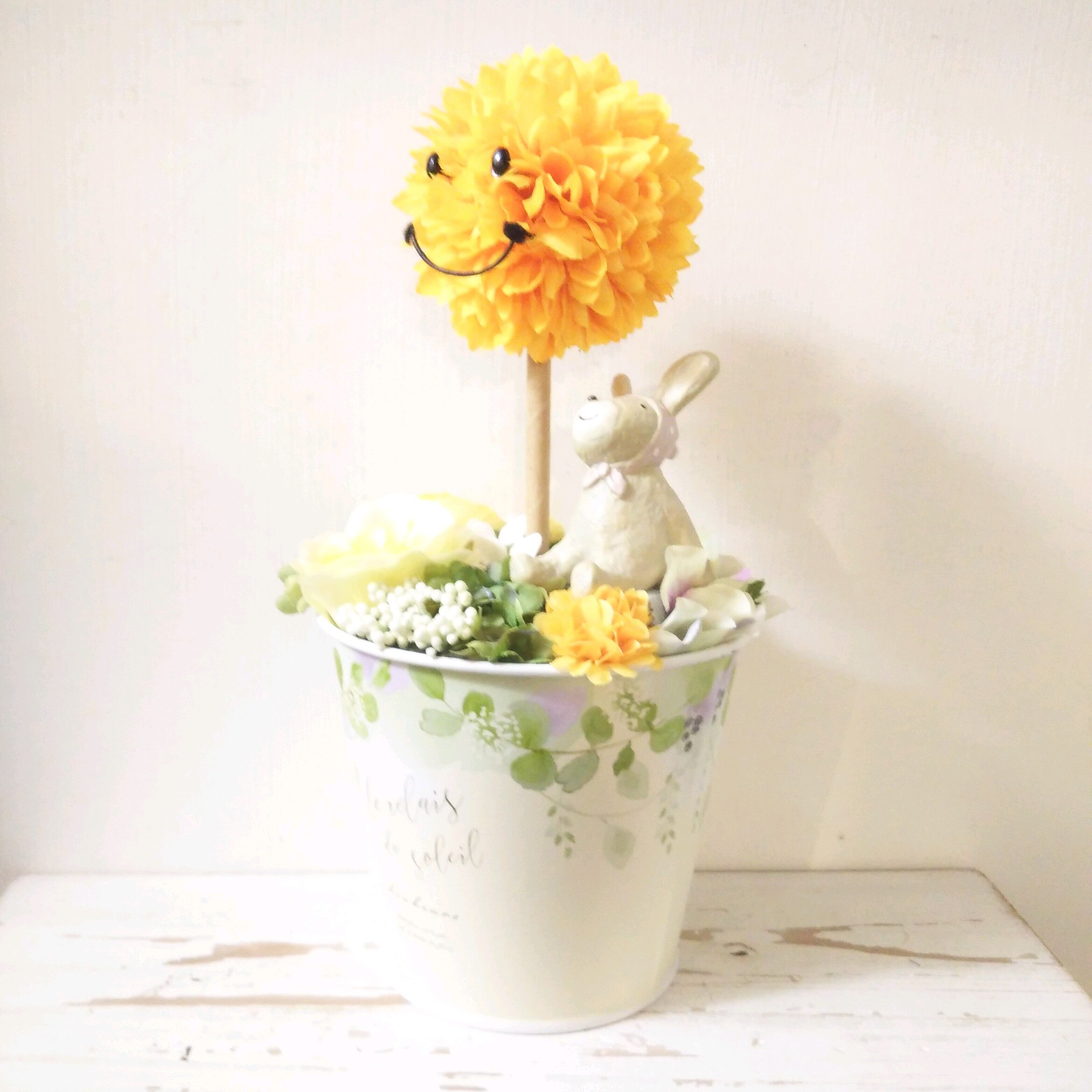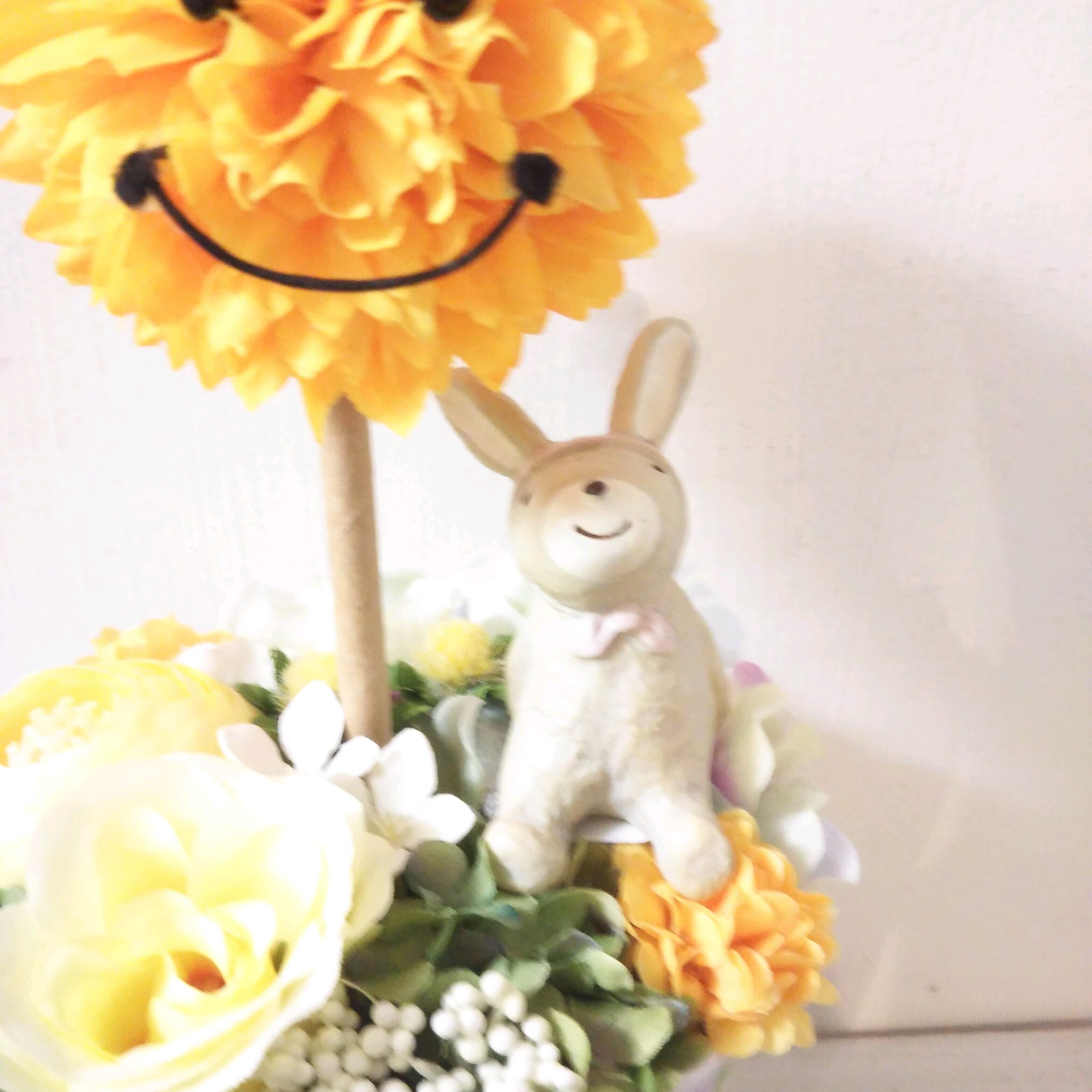 フラワーアレンジ スマイルトピアリー イエロー ウサギ