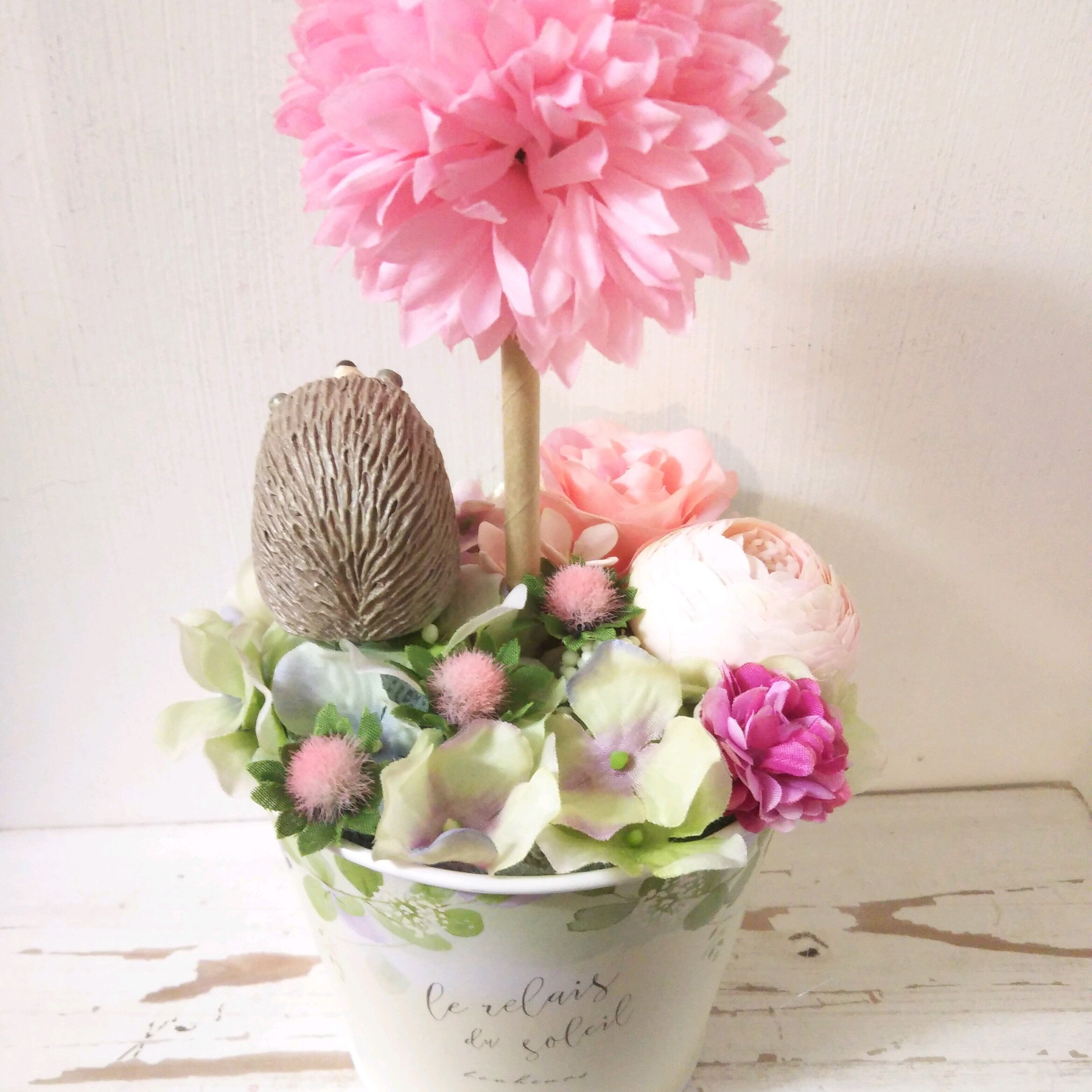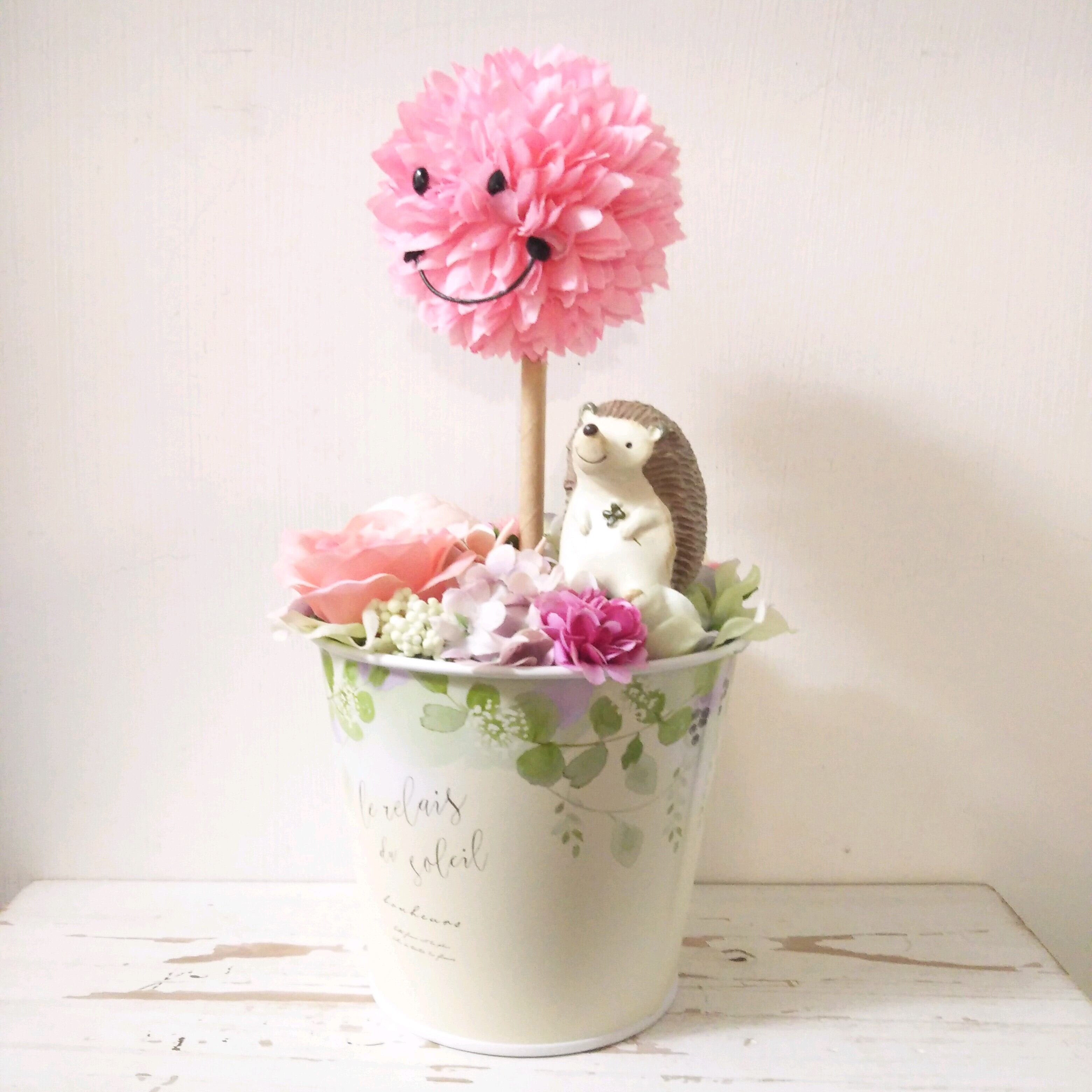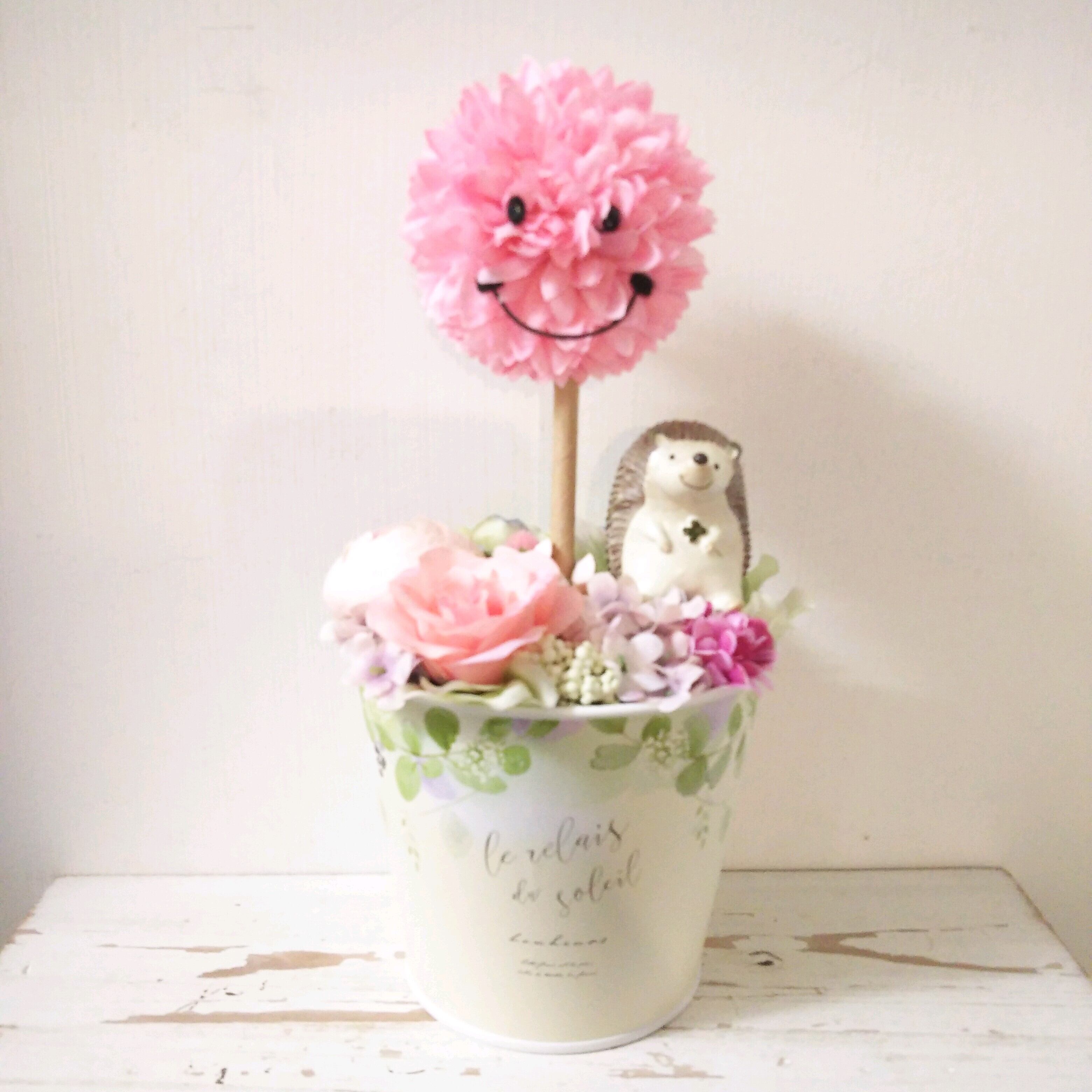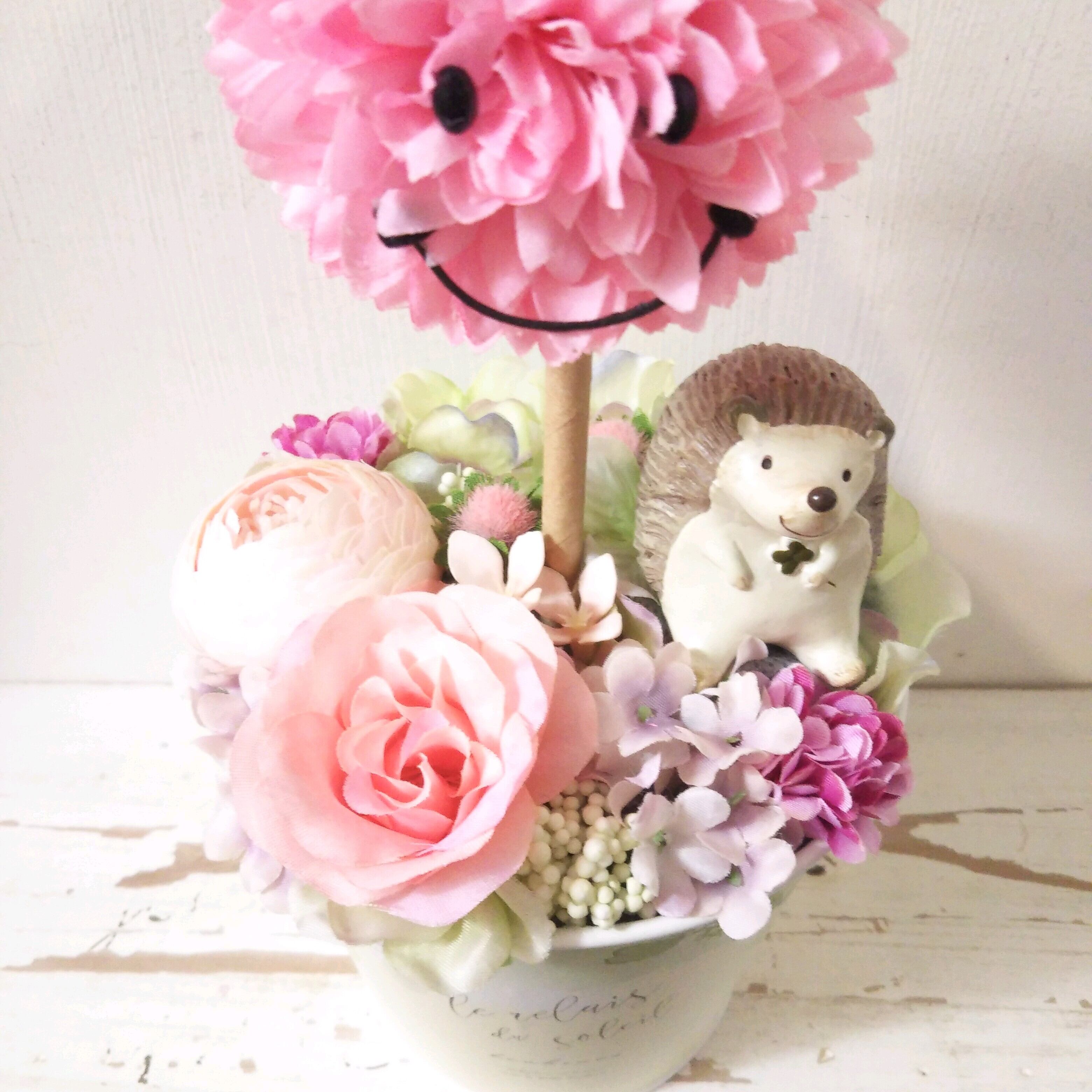 フラワーアレンジ スマイルトピアリー ピンク ハリネズミ
