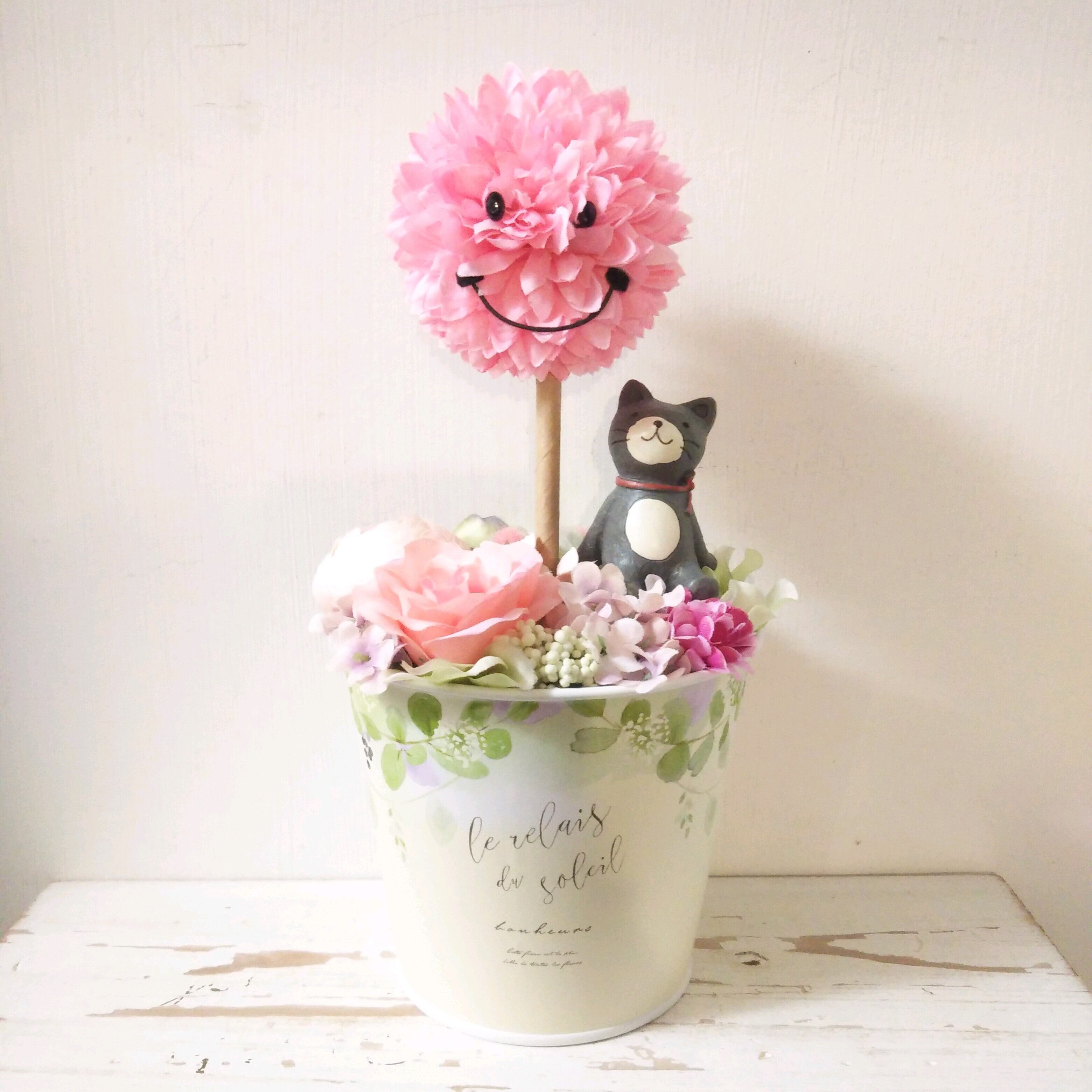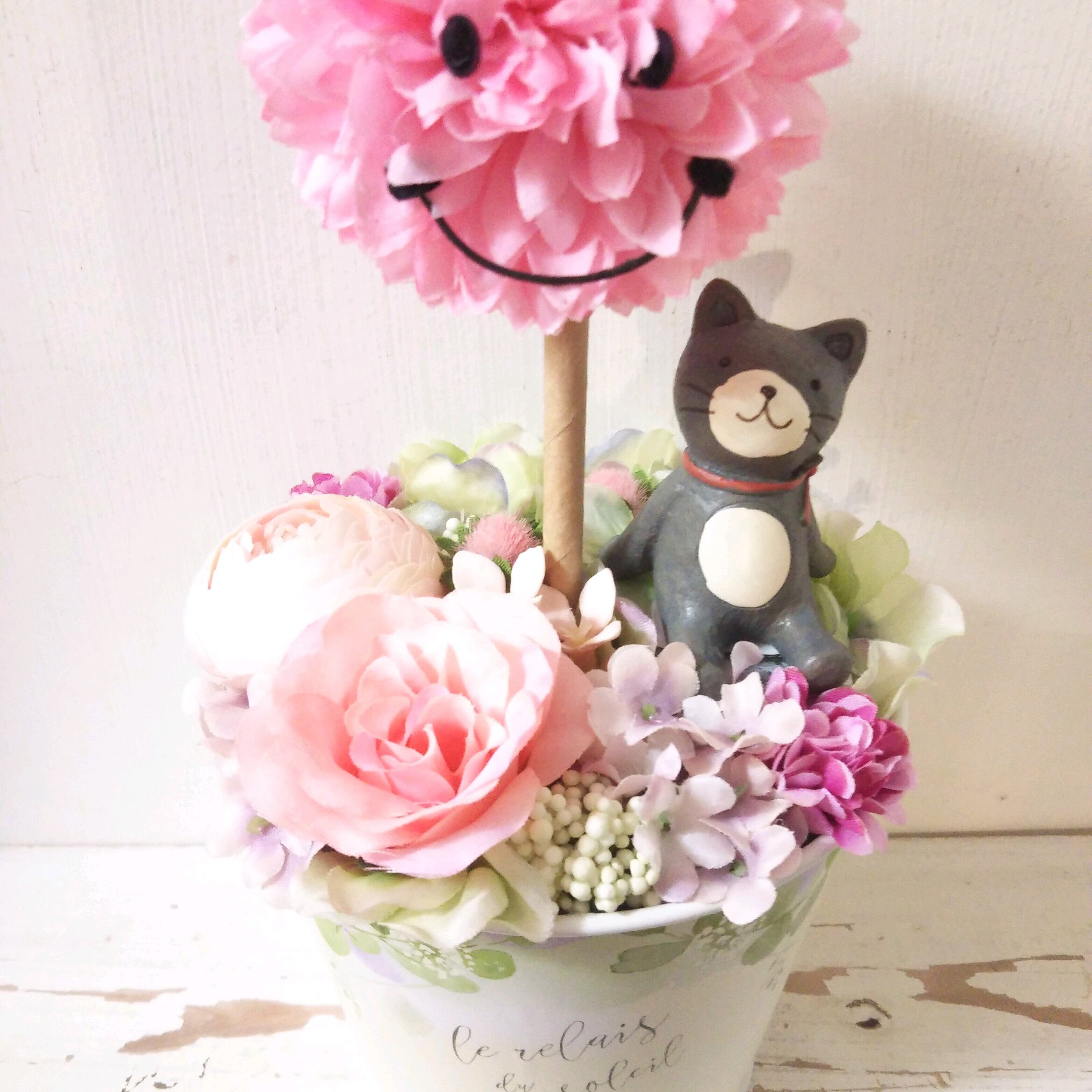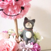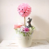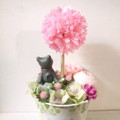 フラワーアレンジ スマイルトピアリー ピンク ネコ