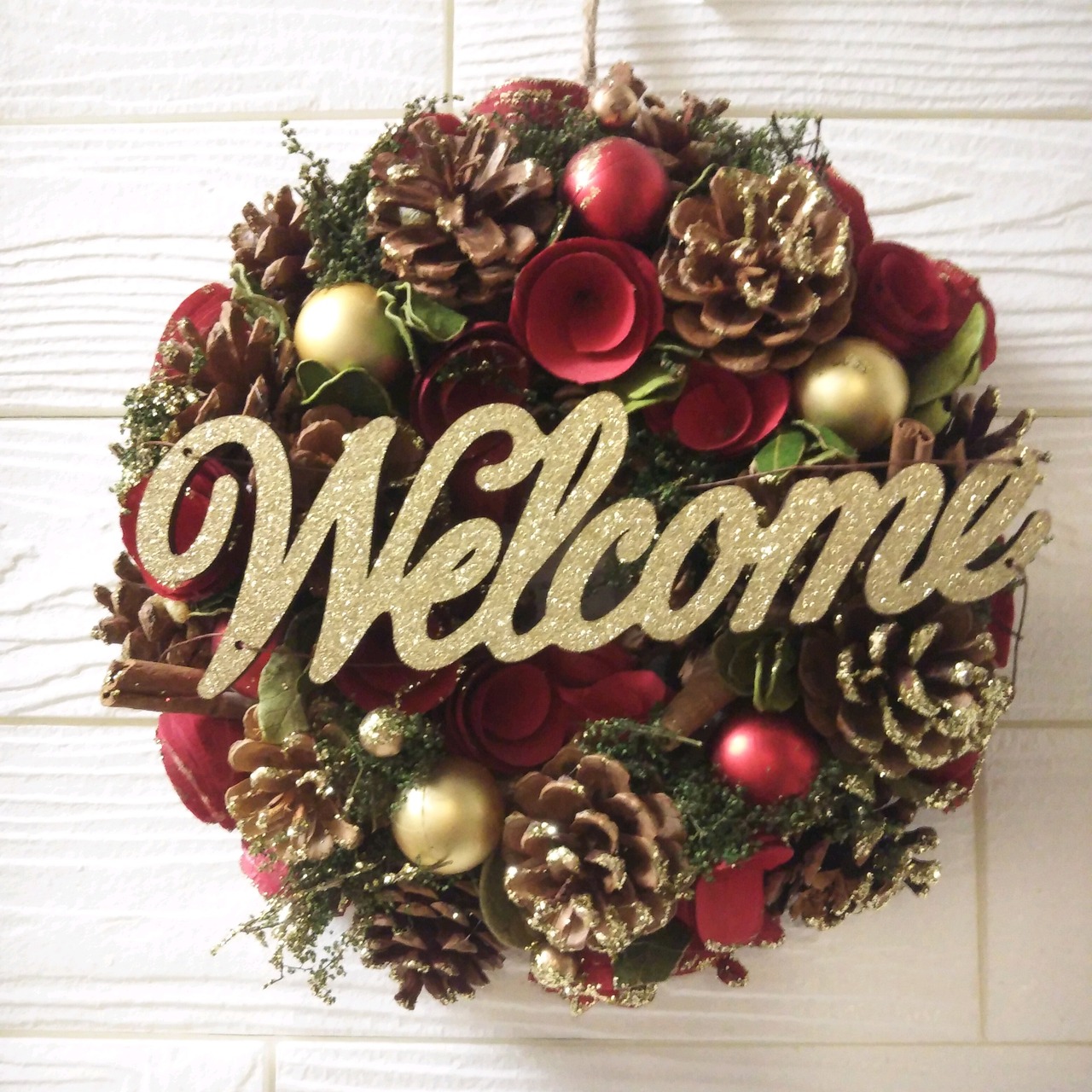 xmas クリスマスリース ナチュラル ウエルカム レッド Lサイズ(1039-B)