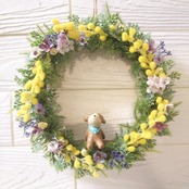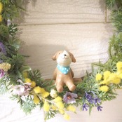 スプリングリース ミモザ と 小花 の草原リース イヌ