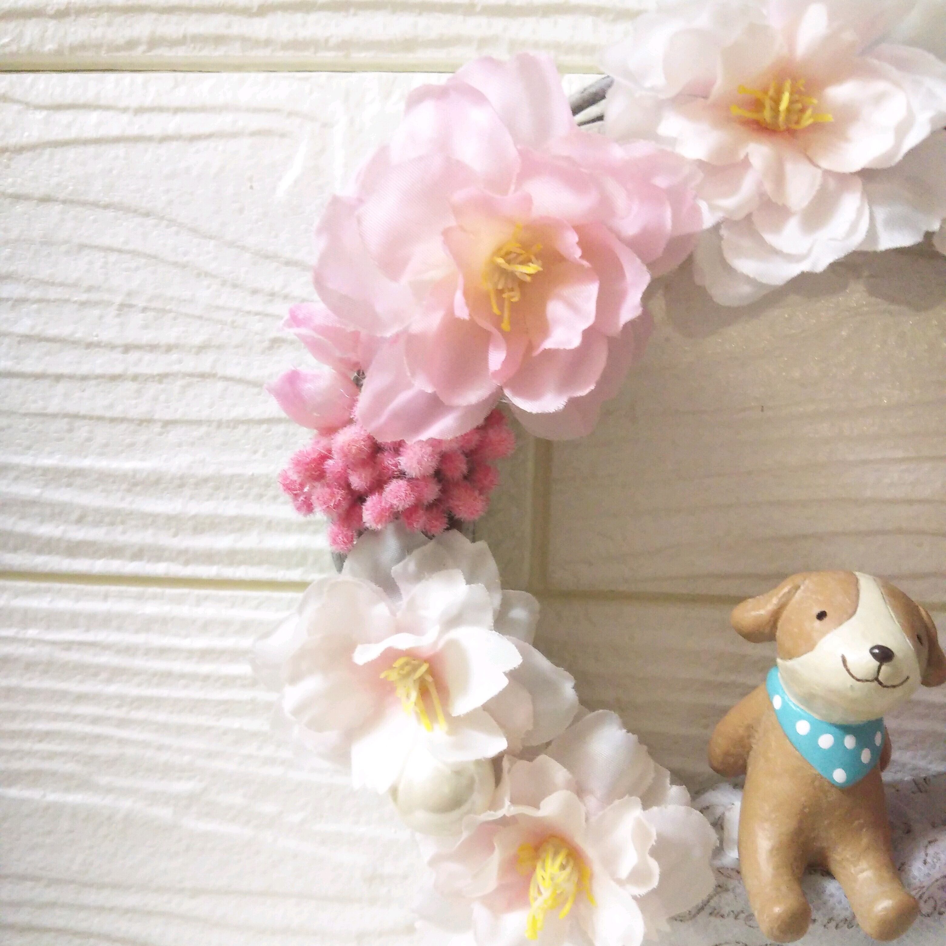 マスコット付きの造花でできた小さめのリースです!