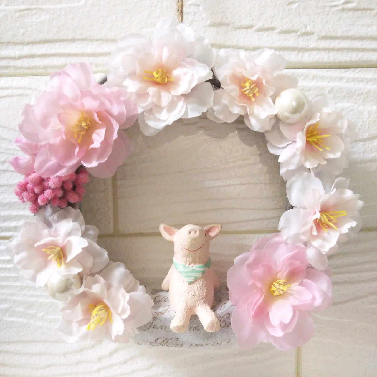 マスコット付きリース サクラ ぶた
