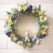 スプリングリース パンジー と 小花 の グリーンリース ウサギ