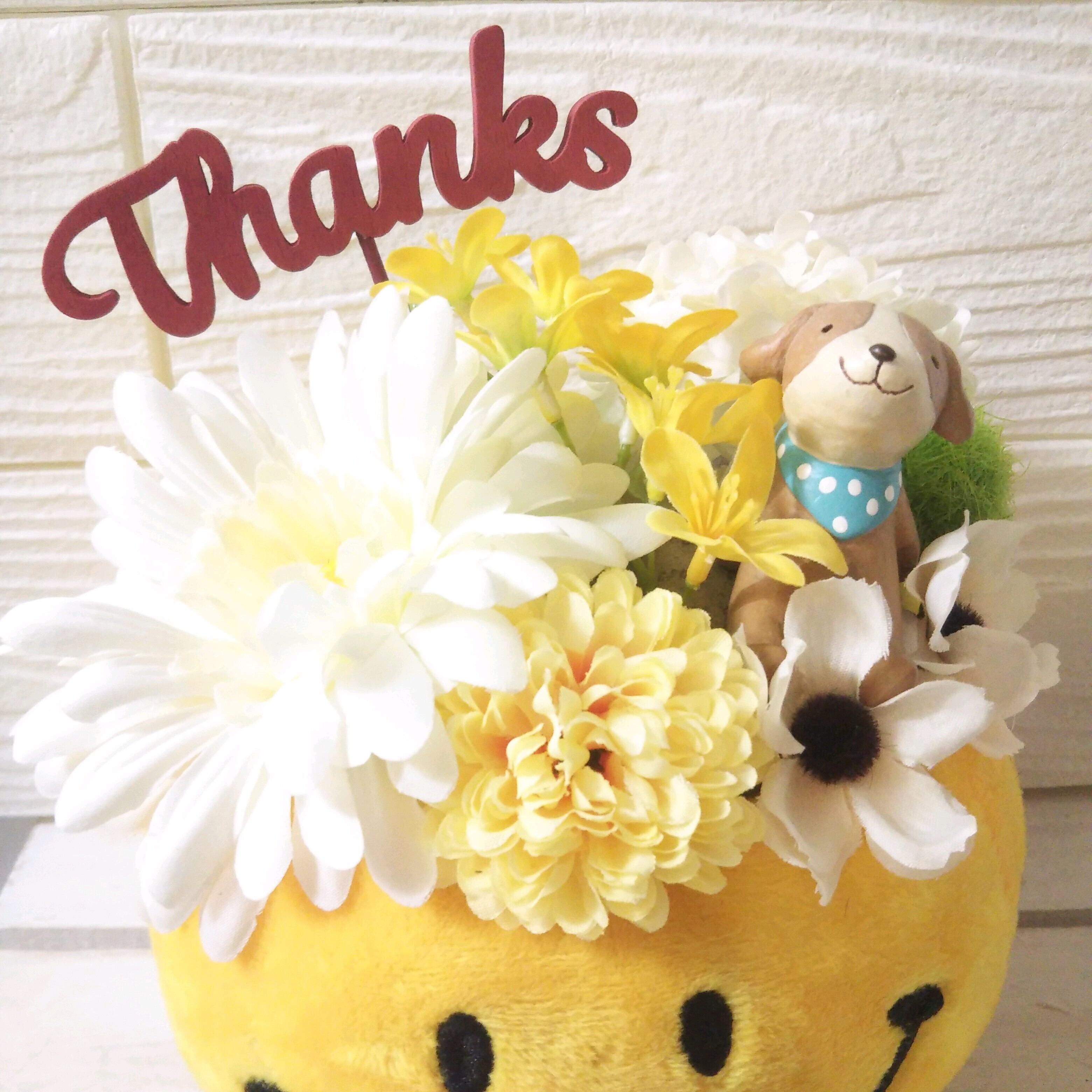 『フラワーギフト』フラワーアレンジ スマイル イエロー イヌ
