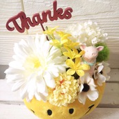 『フラワーギフト』フラワーアレンジ スマイル イエロー ブタ