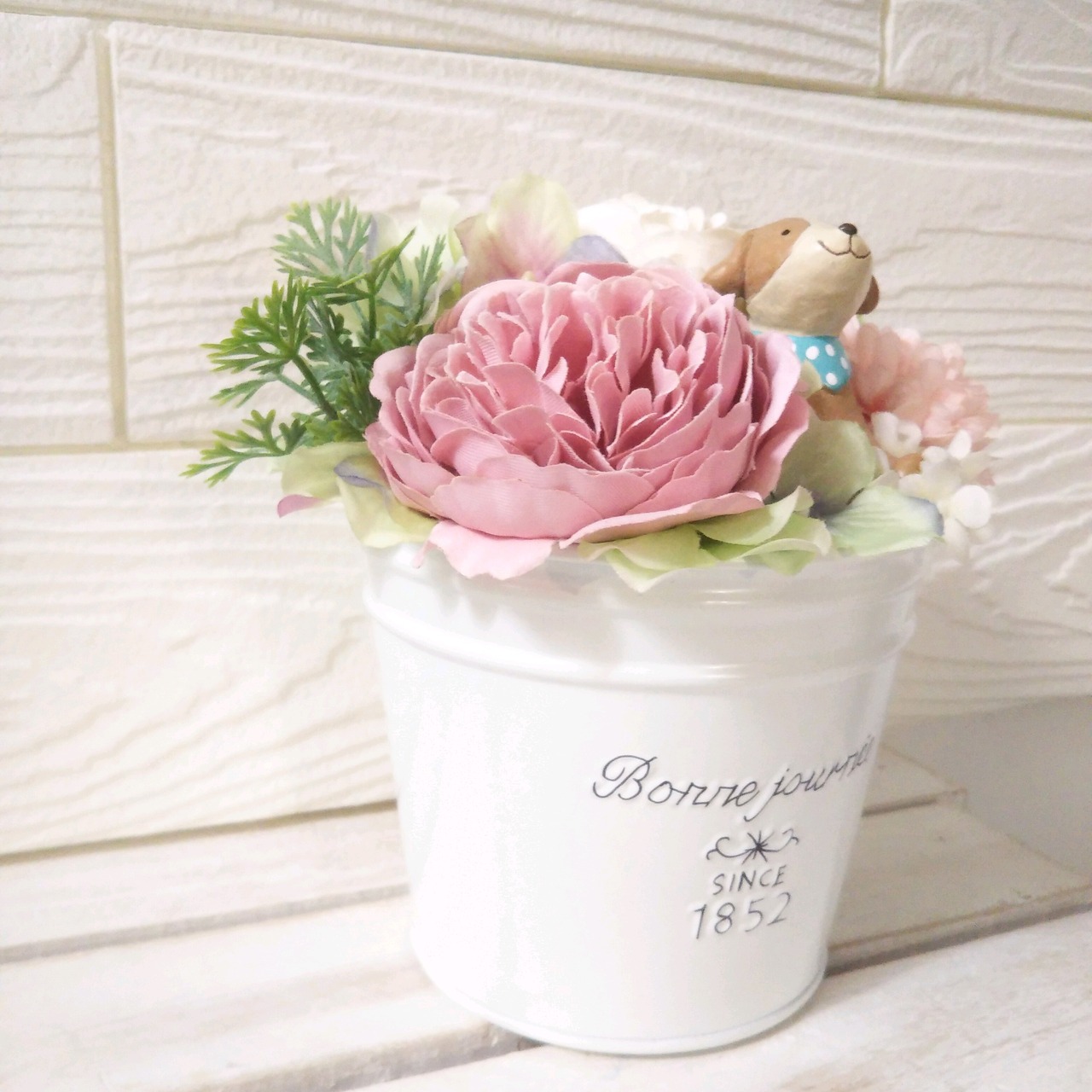 フラワーアレンジ ミルキー ピンク ホワイト イヌ
