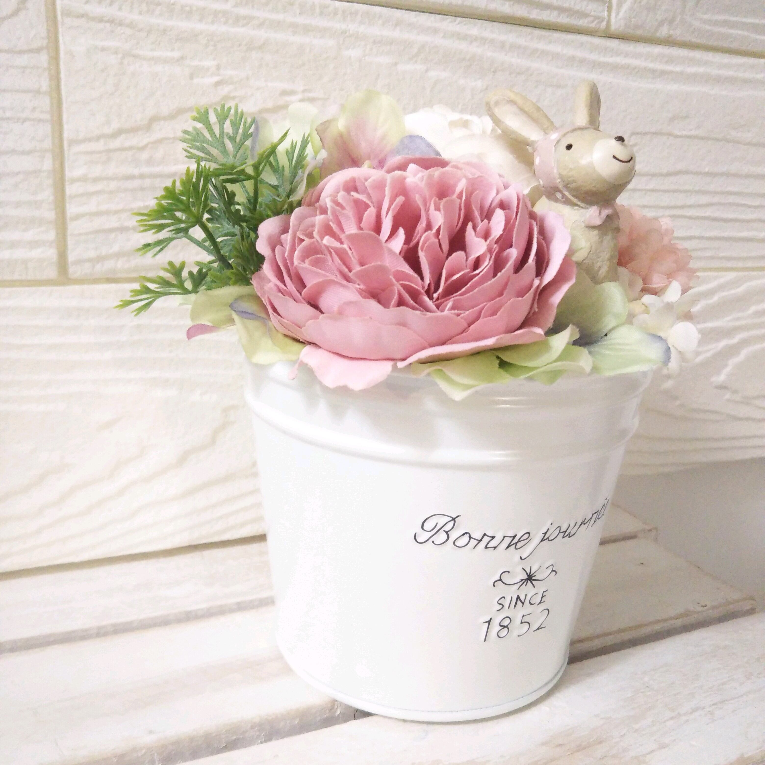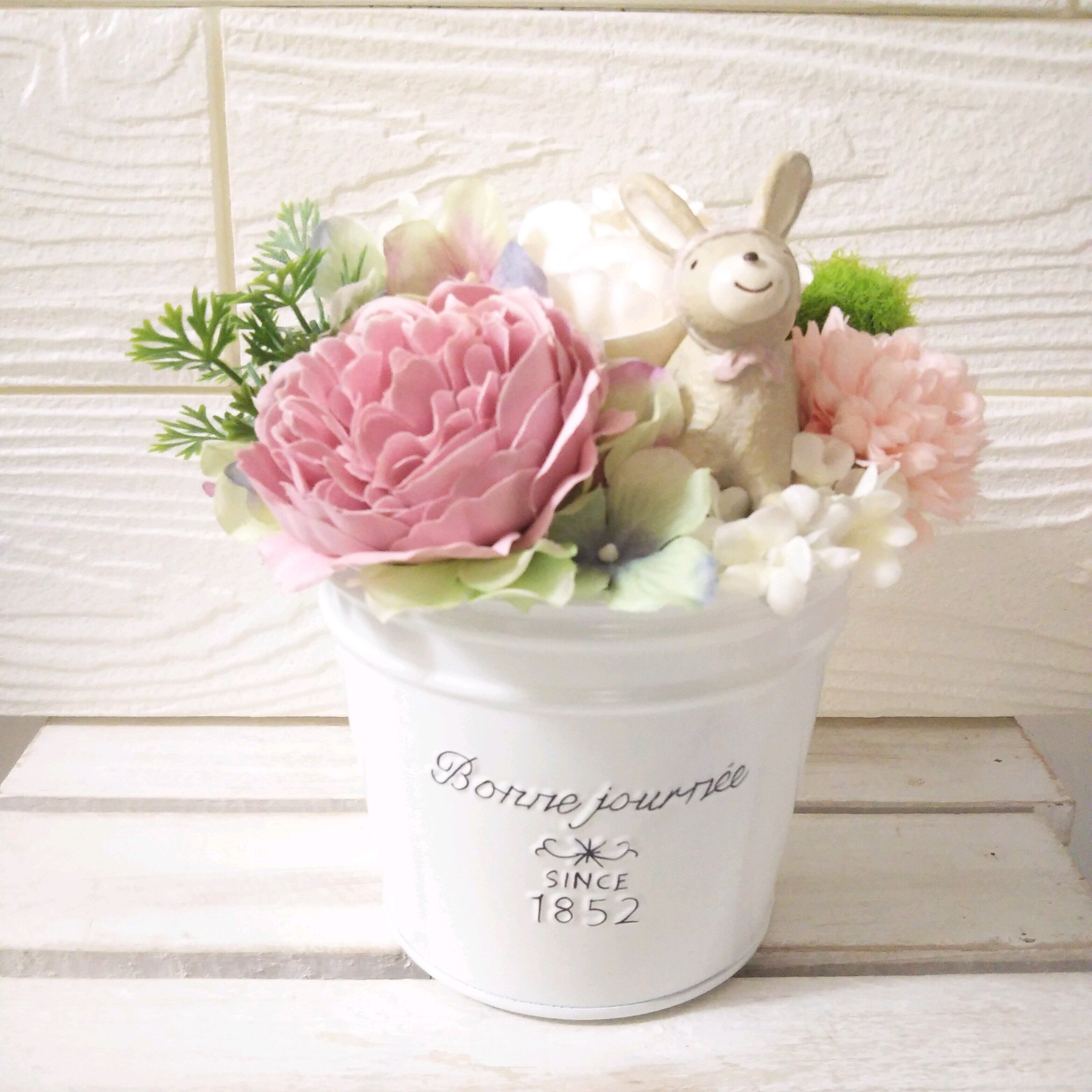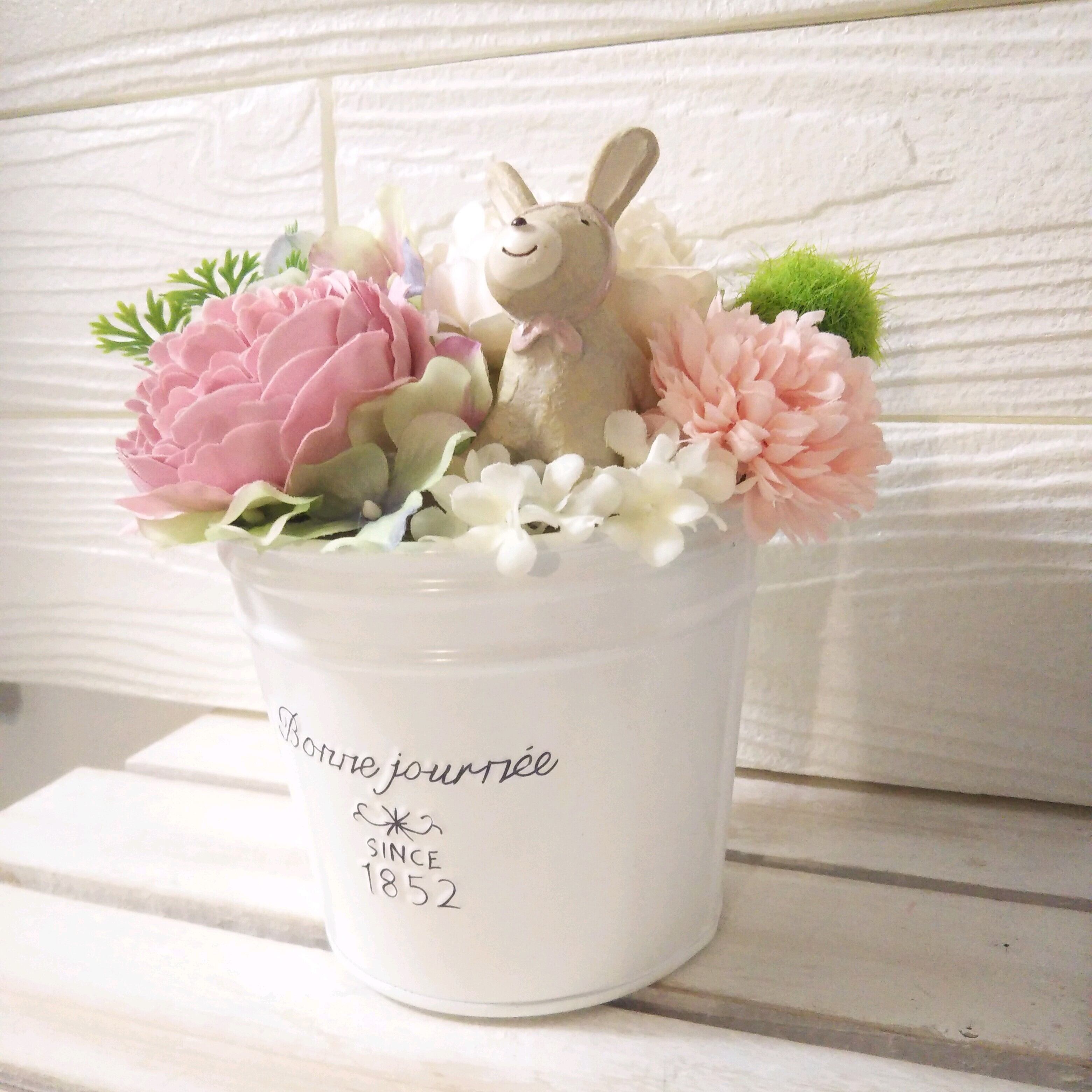 フラワーアレンジ ミルキー ピンク ホワイト ウサギ