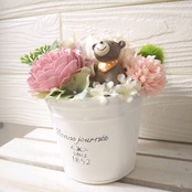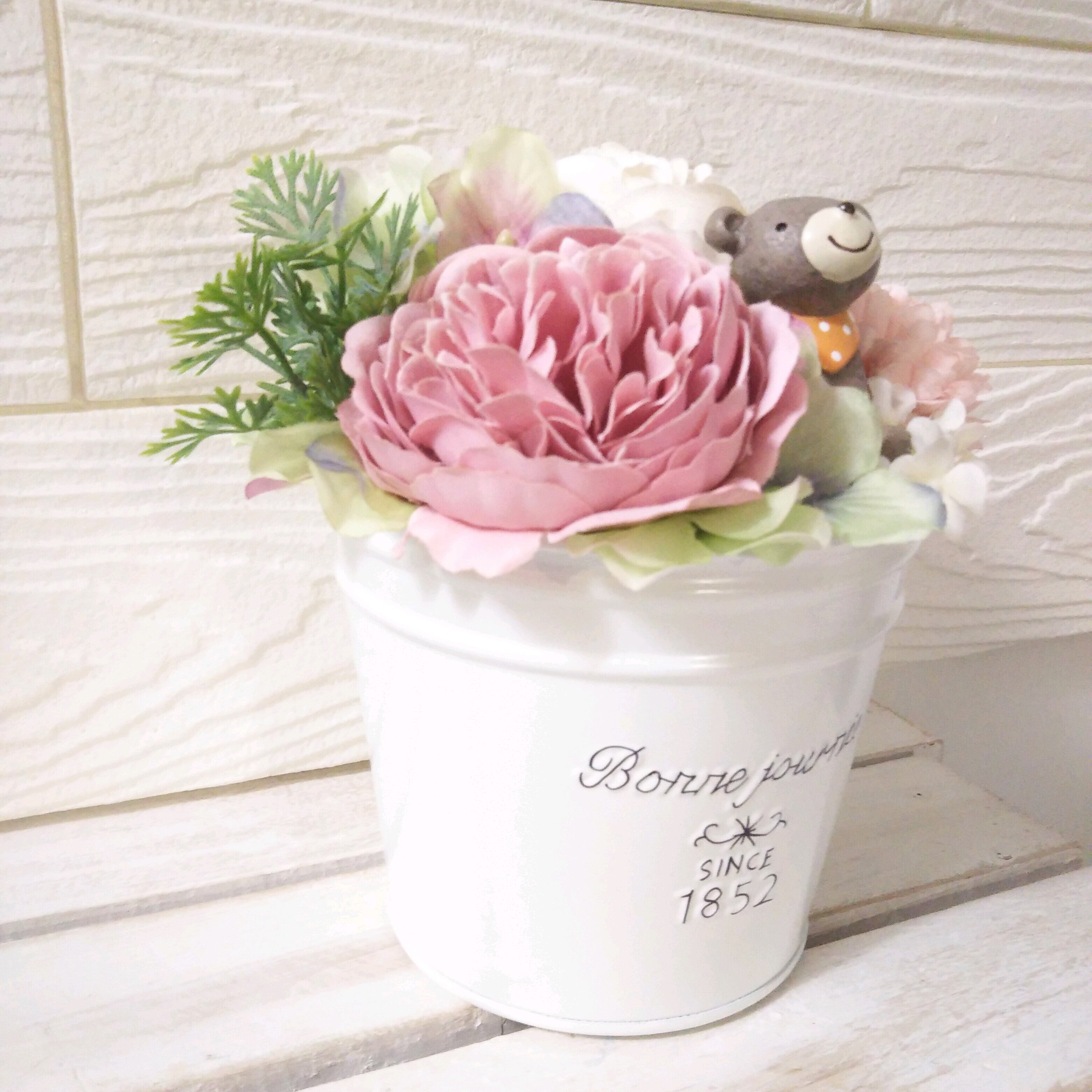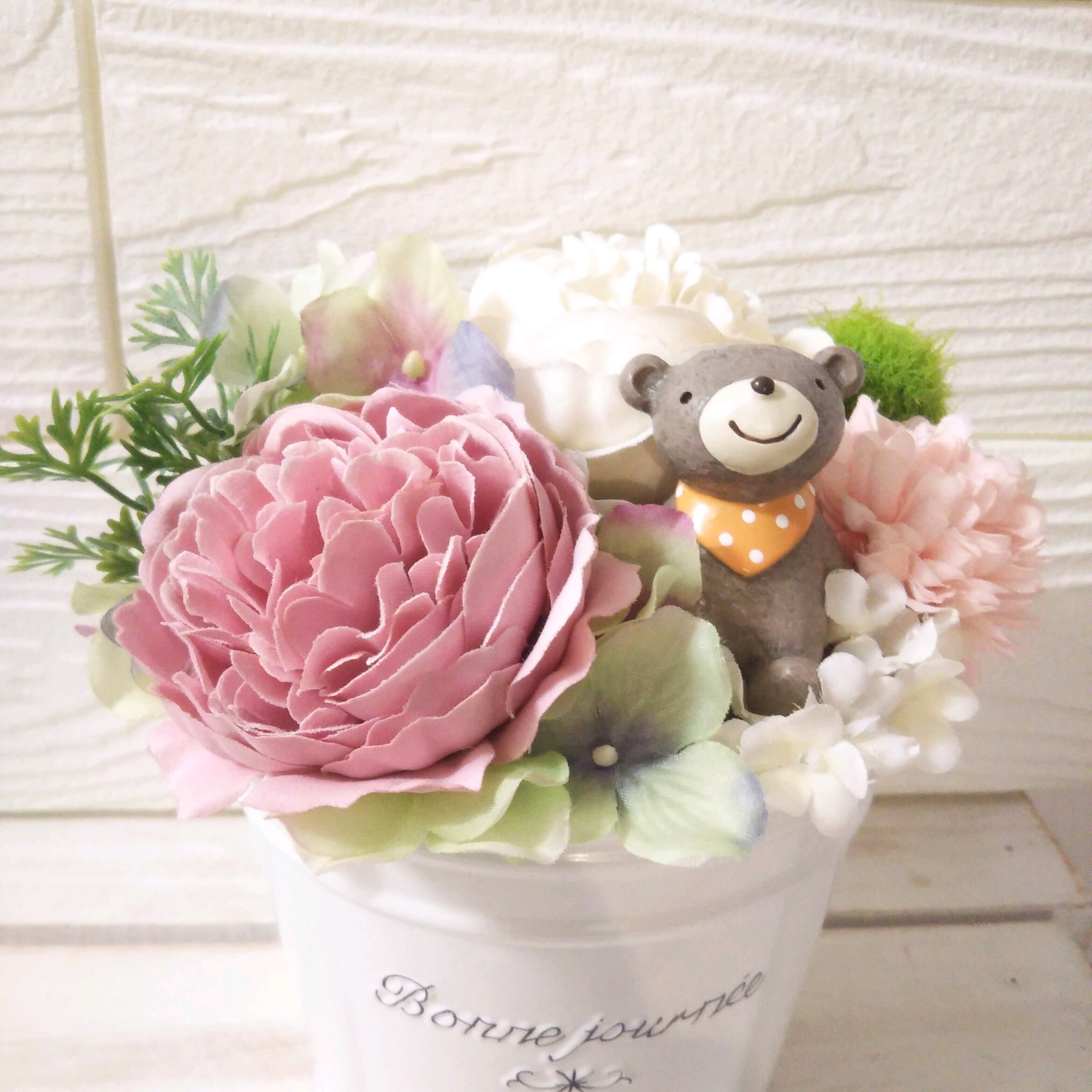 フラワーアレンジ ミルキー ピンク ホワイト クマ