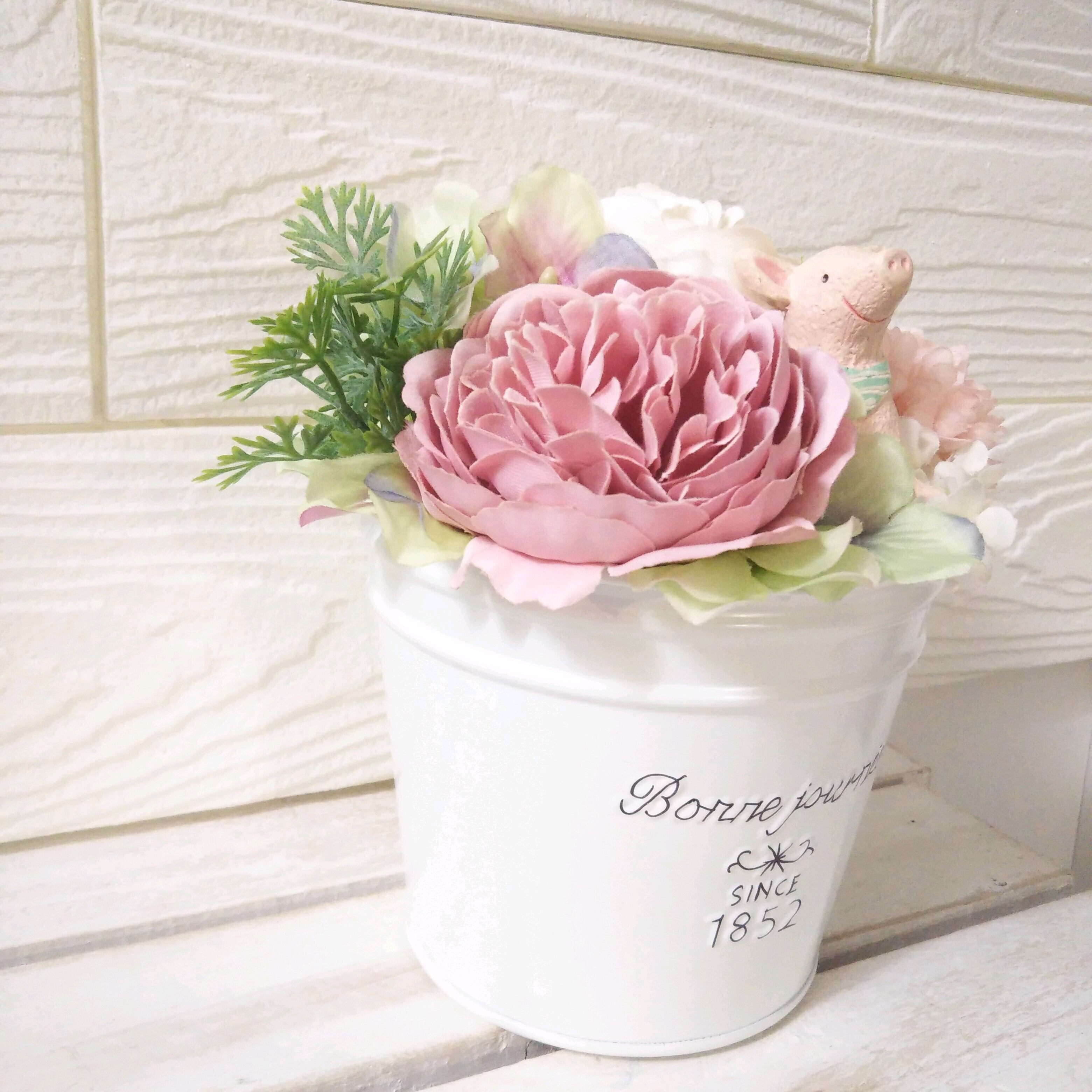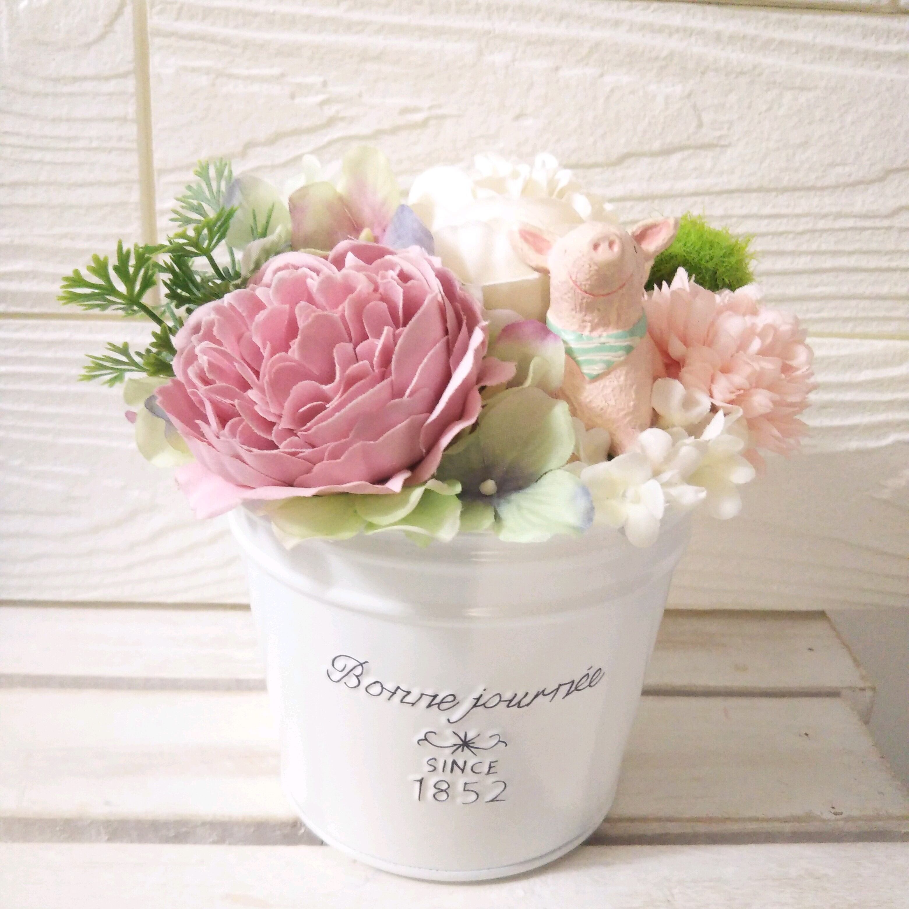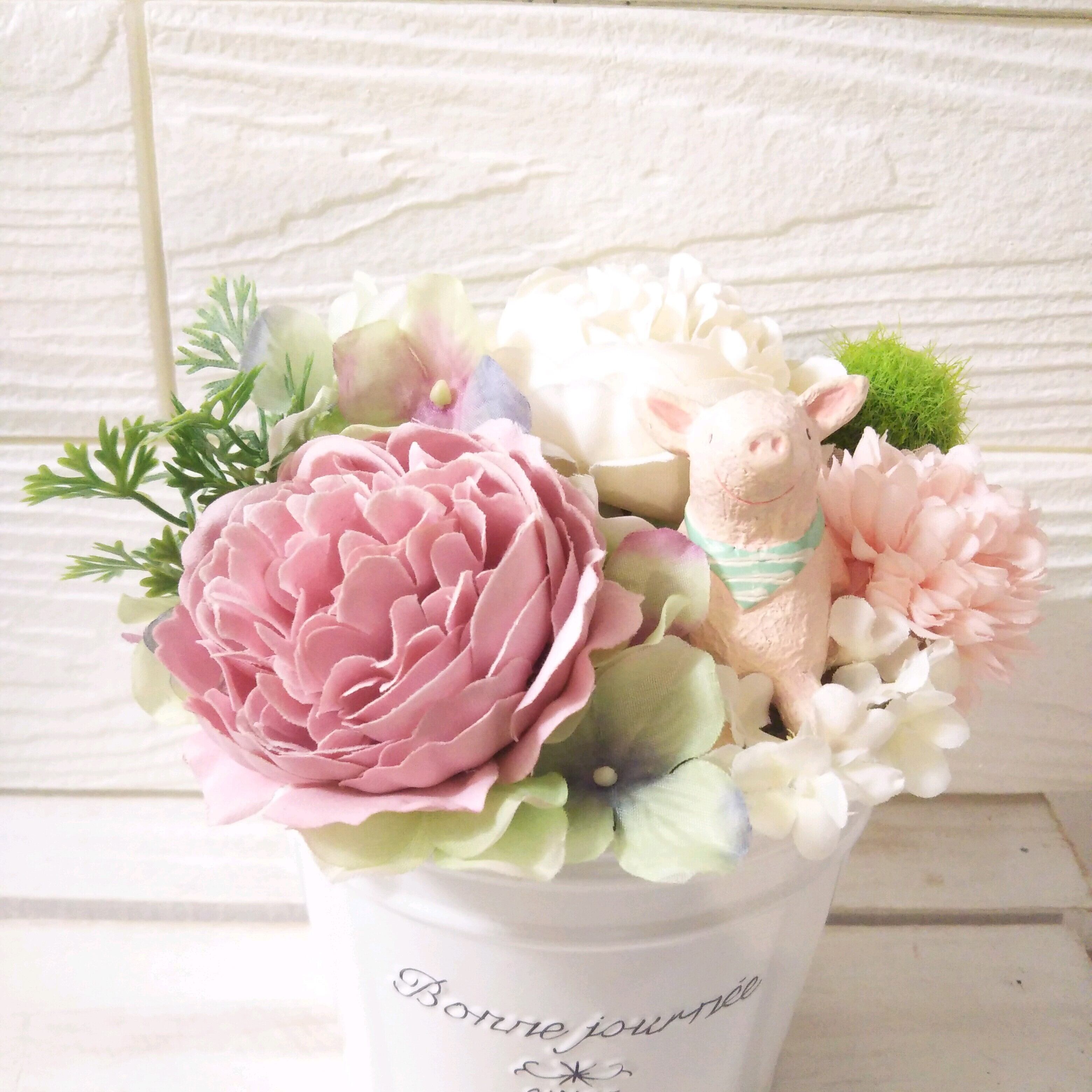 フラワーアレンジ ミルキー ピンク ホワイト ブタ
