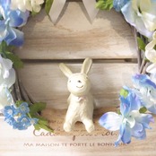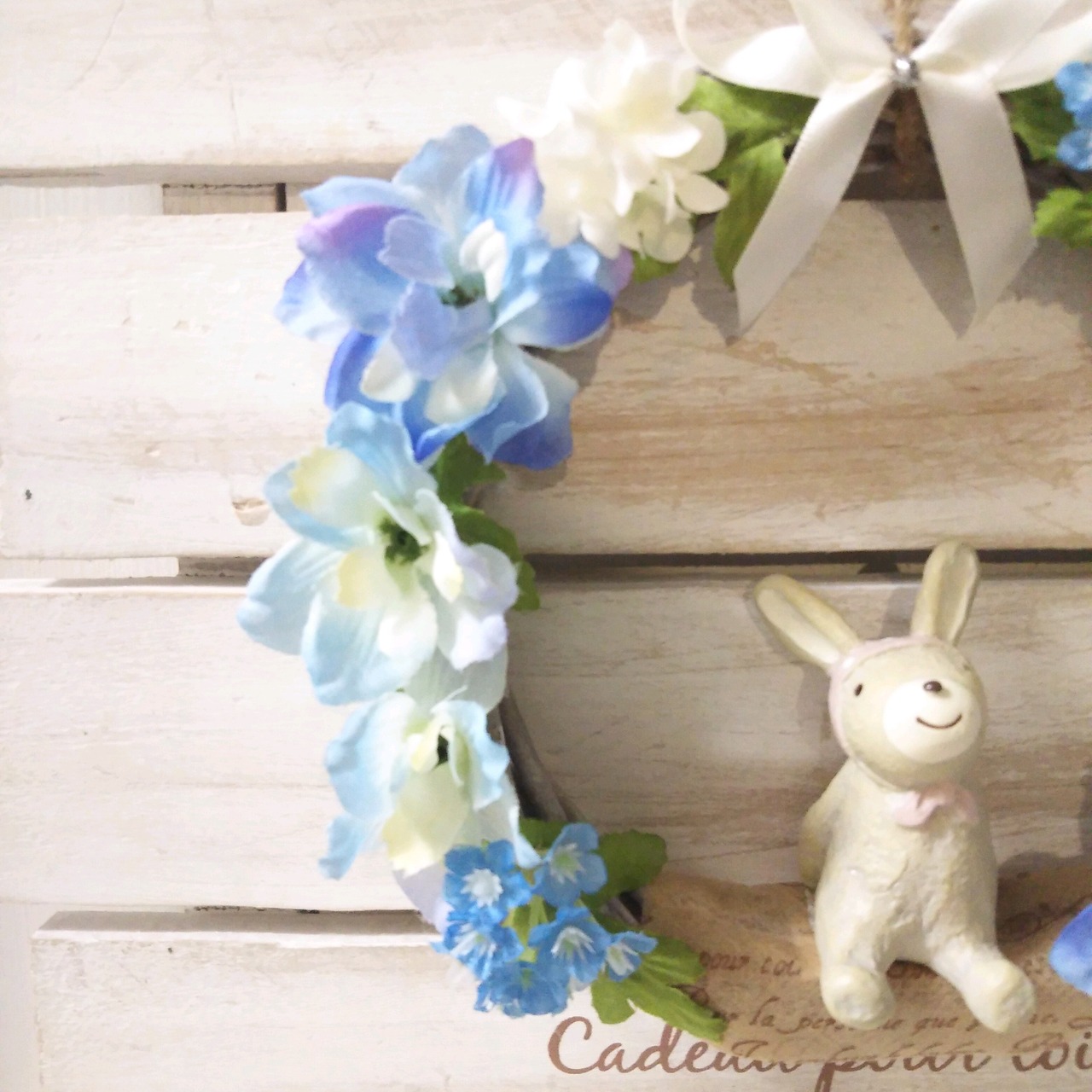 マスコット付きリース ブルー ホワイト ウサギ