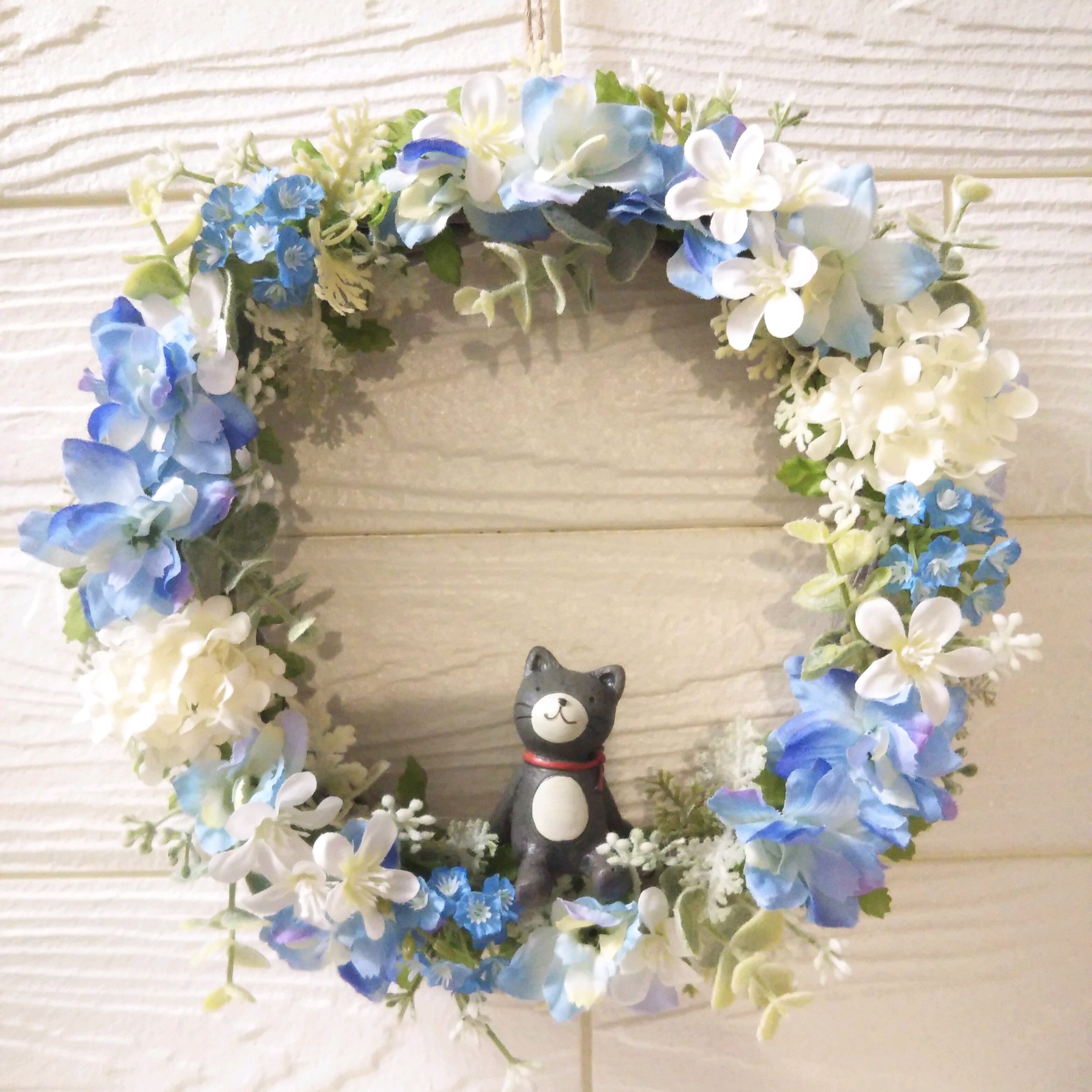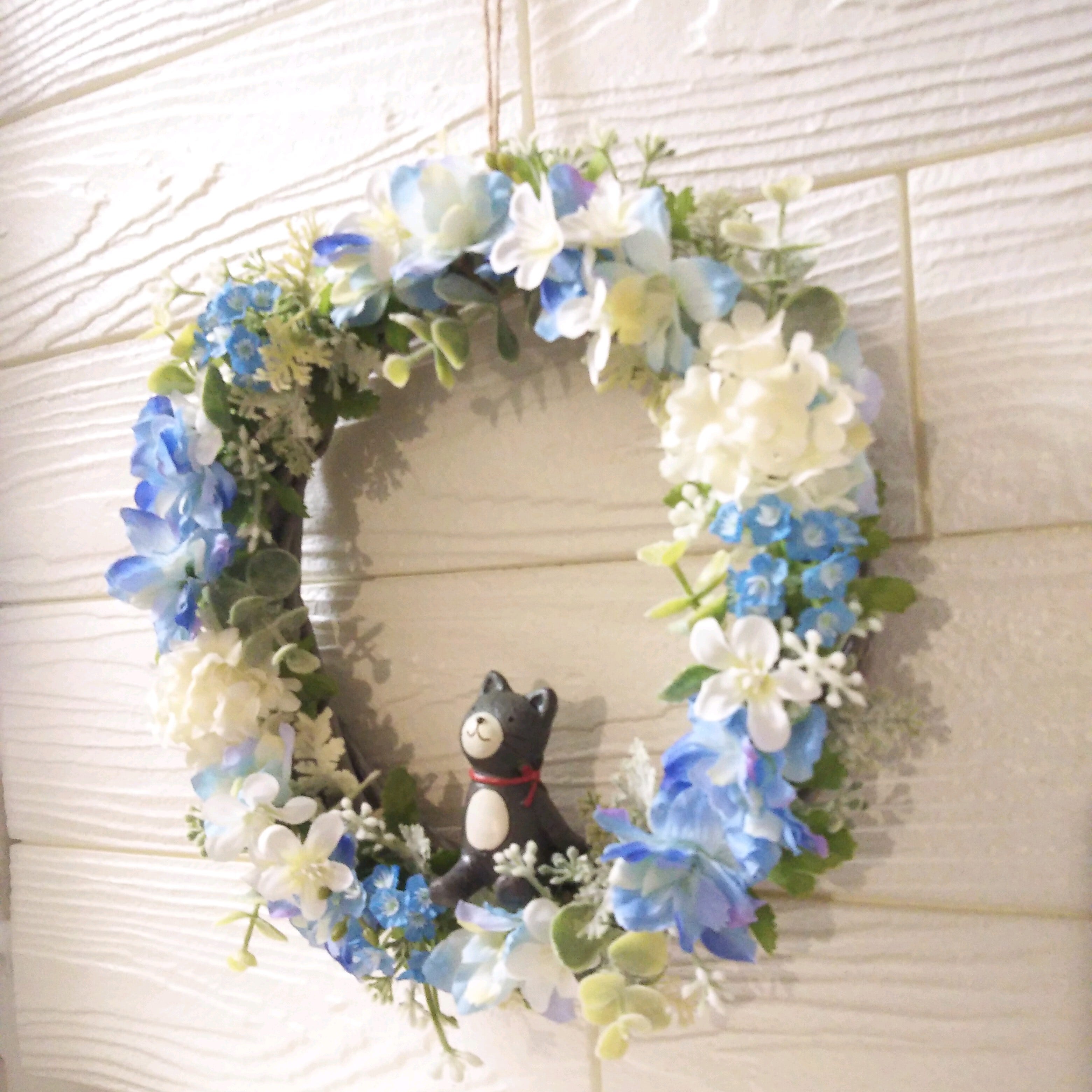 インテリア リース フラワーリース グリーン ブルー プレゼント ドアリース 引っ越し祝い 開店祝い 誕生日 夏 ウエディング ギフト 結婚 結婚祝い